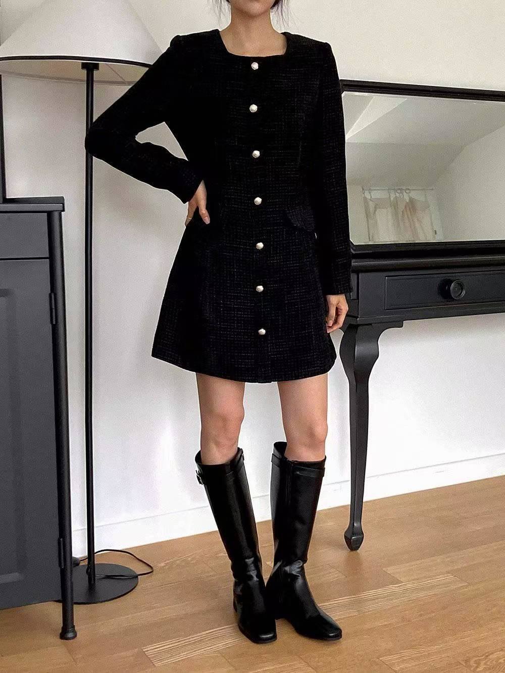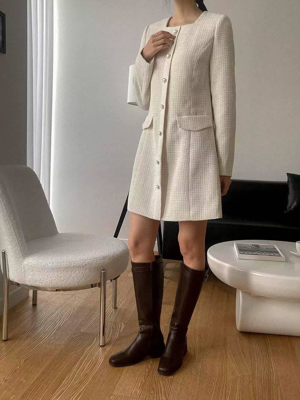 拼接皮革口袋磨毛外套+壓摺短褲裙SET(可拆買)