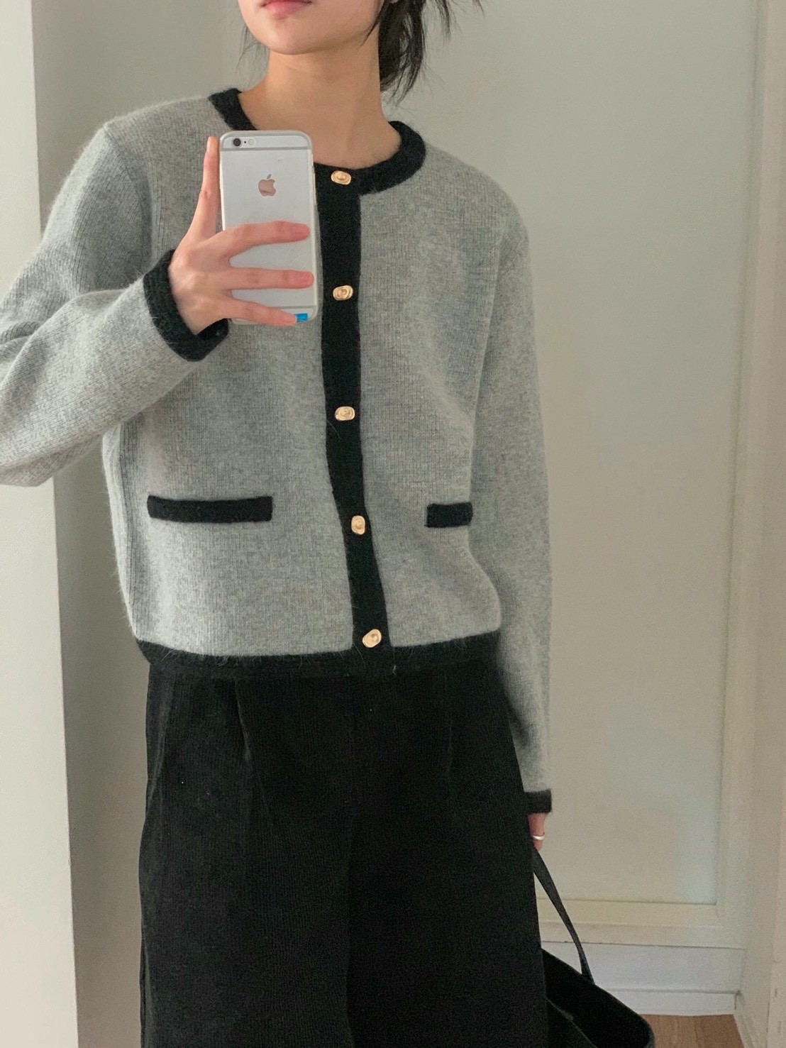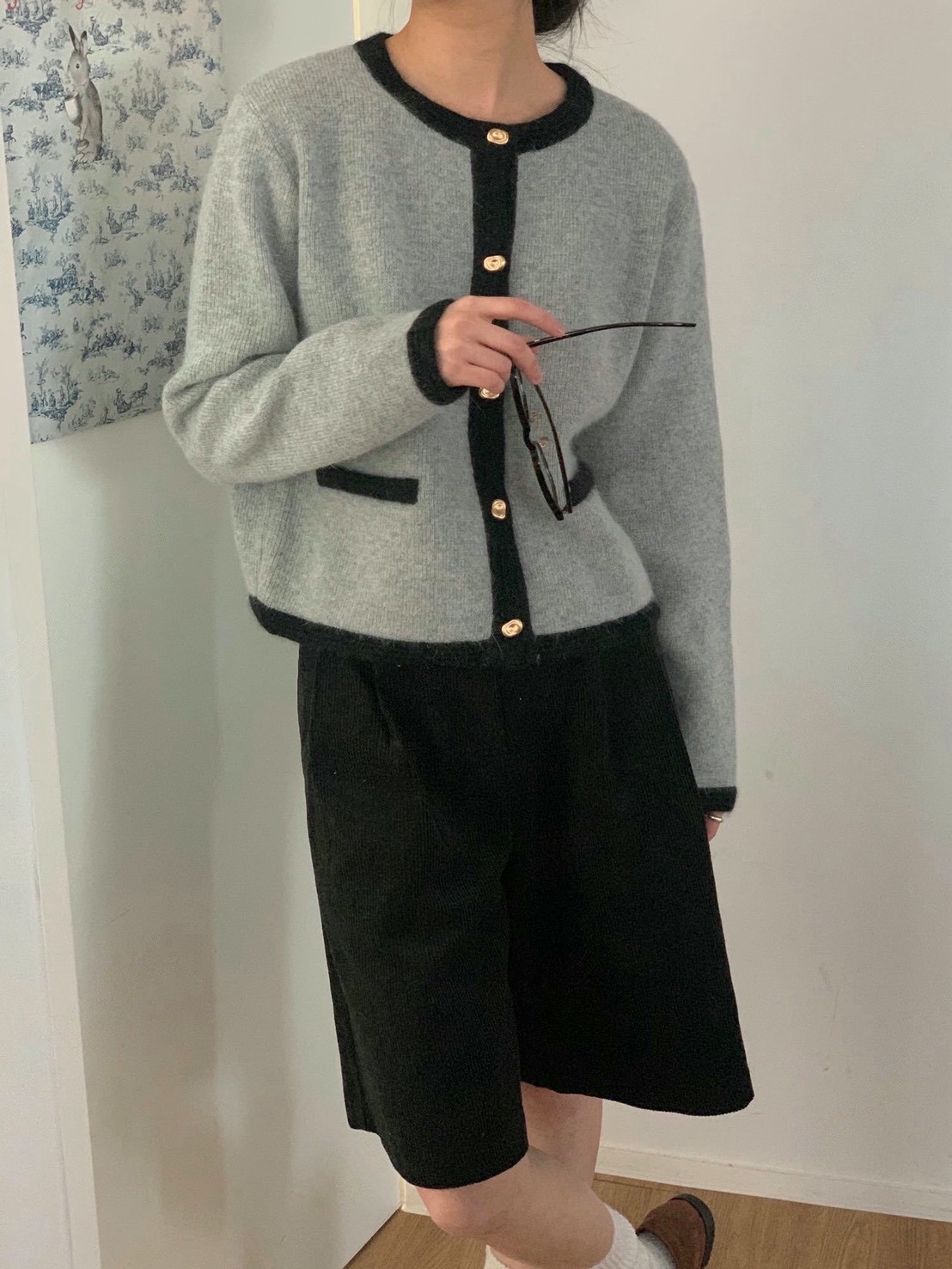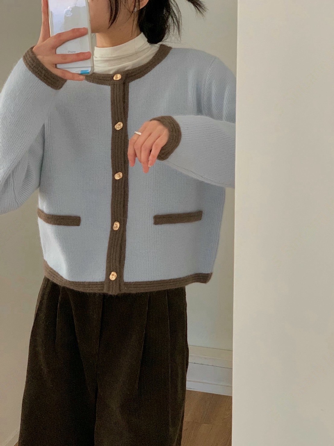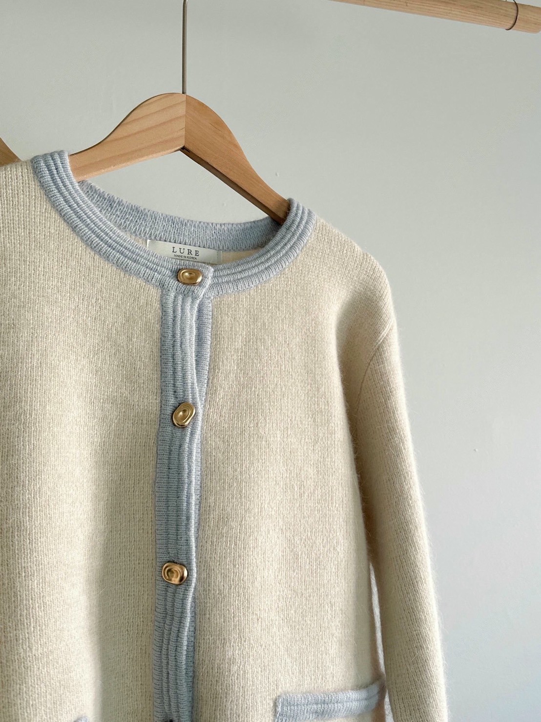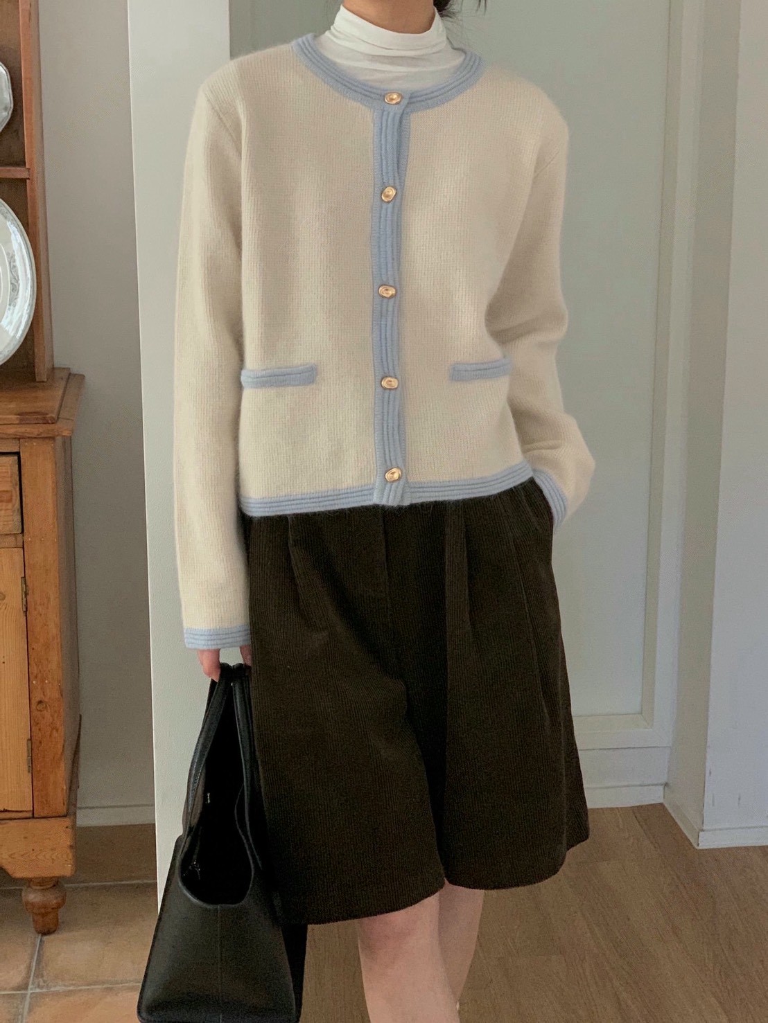 圓領撞色滾邊金釦毛款針織衣