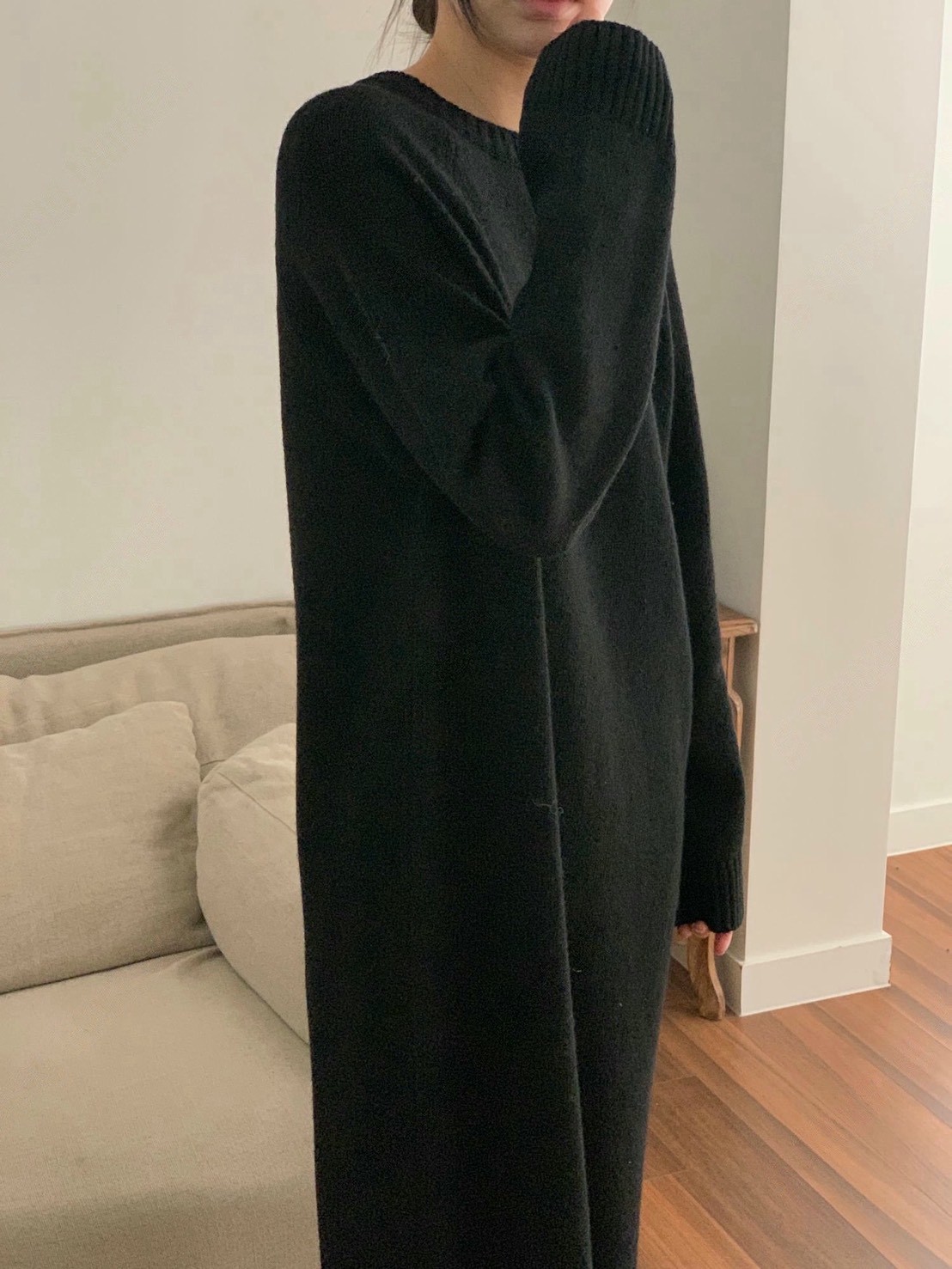 落肩鏤空羊毛長版針織衫+針織帽SET(30%)
