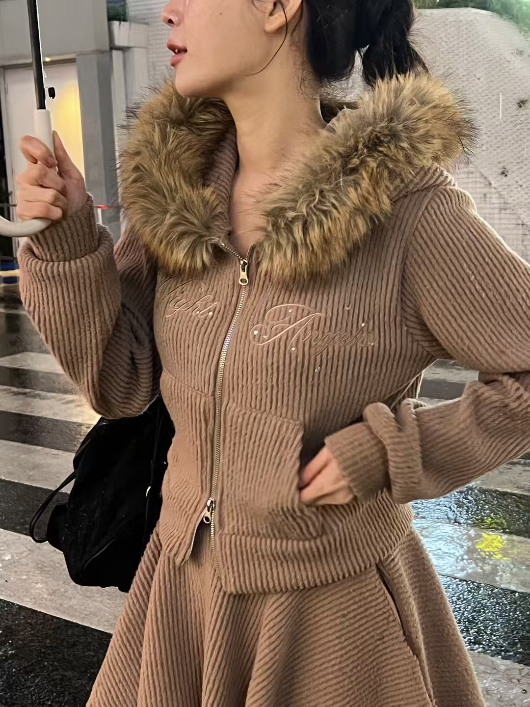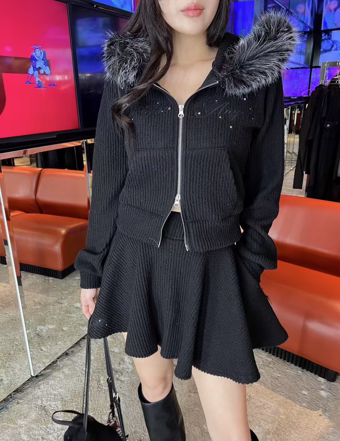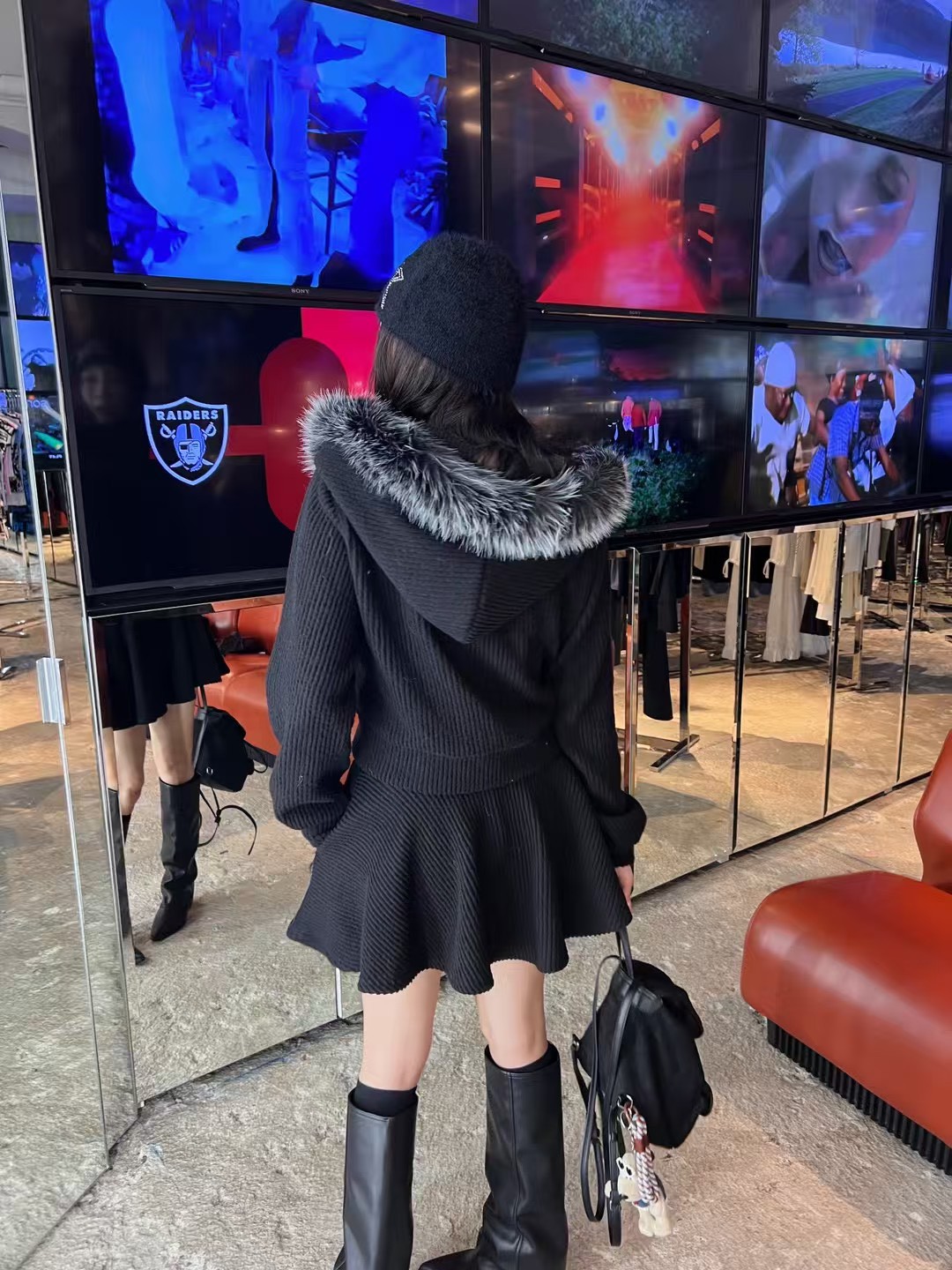 拼接皮革口袋磨毛外套+壓摺短褲裙SET(可拆買)
