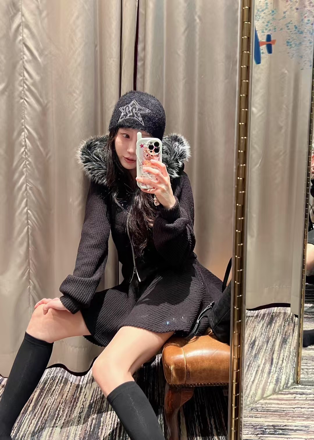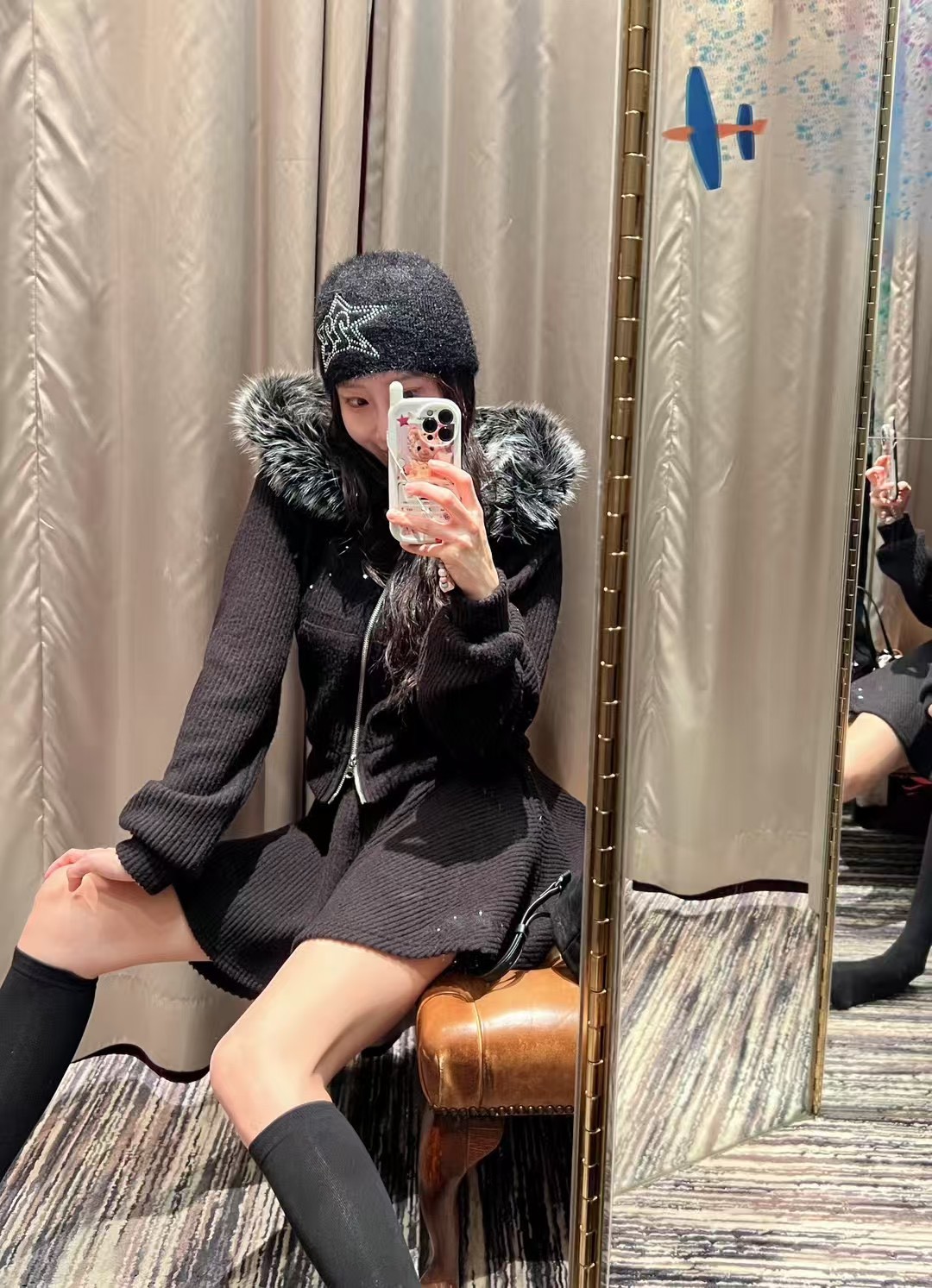 可拆式拼接襯領針織衣+鬆緊短裙SET