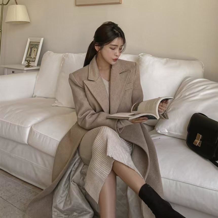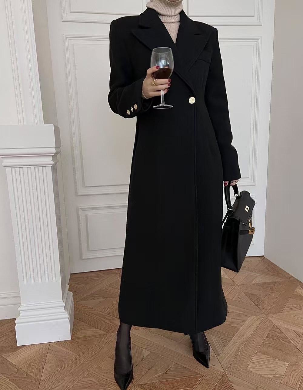 氣質翻領長版大衣外套
