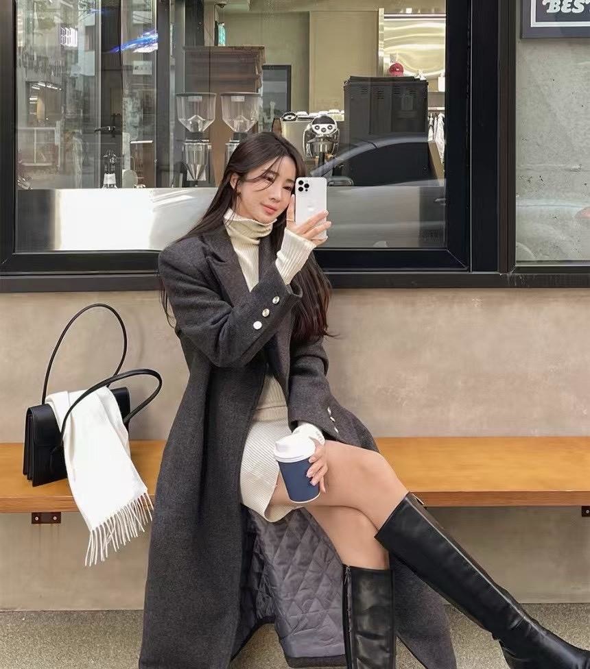 翻領包釦(56羊毛%)毛款外套