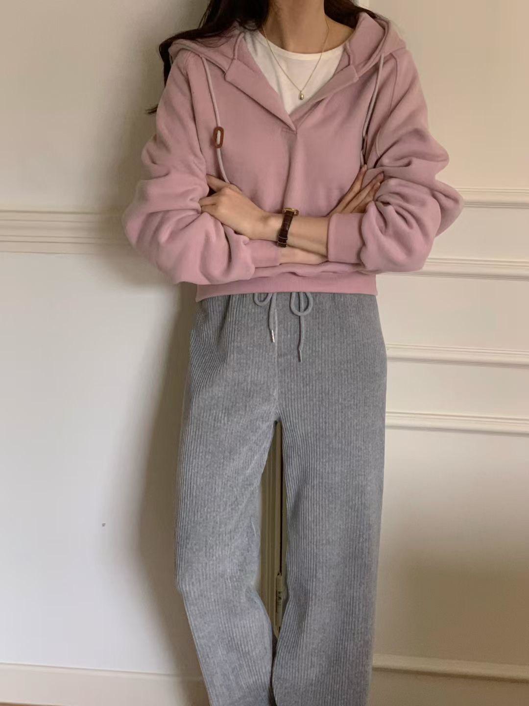 雙口袋磨毛夾克+鬆緊磨毛短褲裙SET