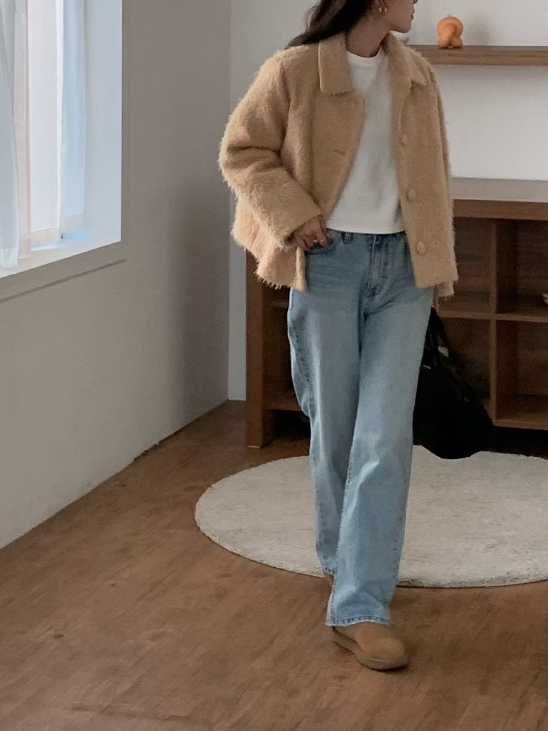 兩面穿!圓領麂皮毛毛中長款大衣