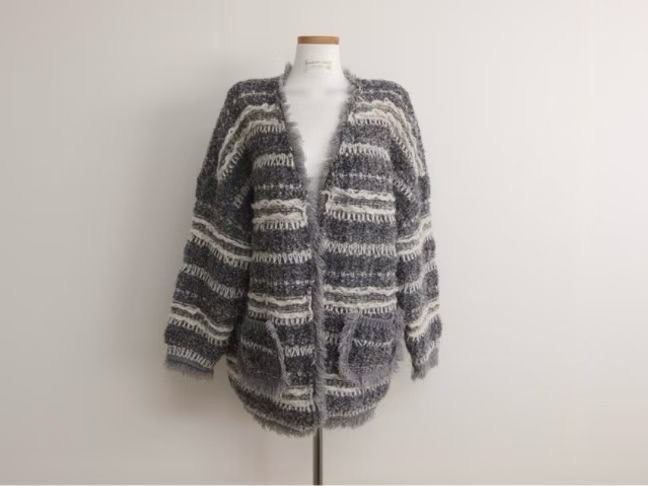 圓領鏤空落肩長款針織衫