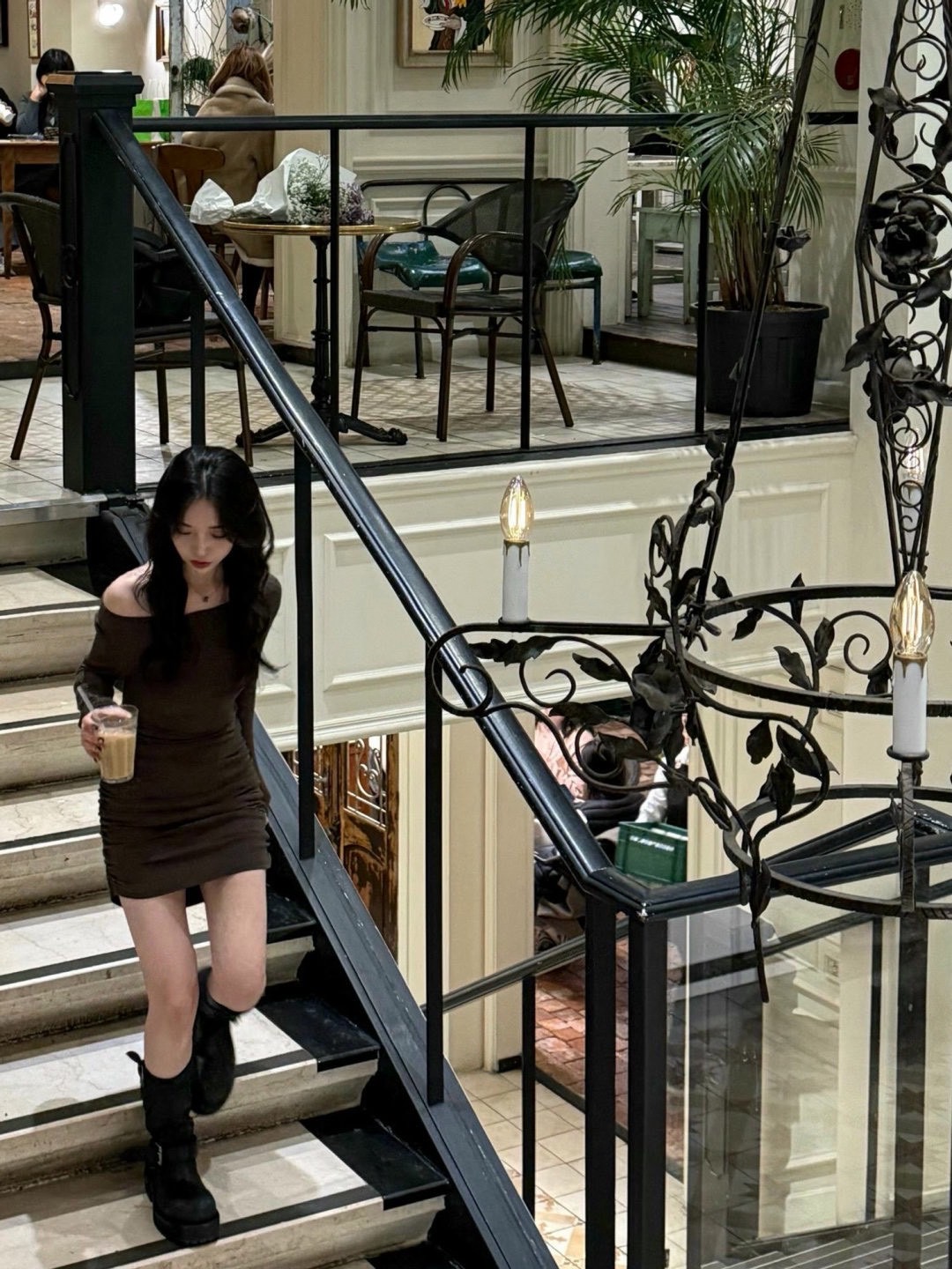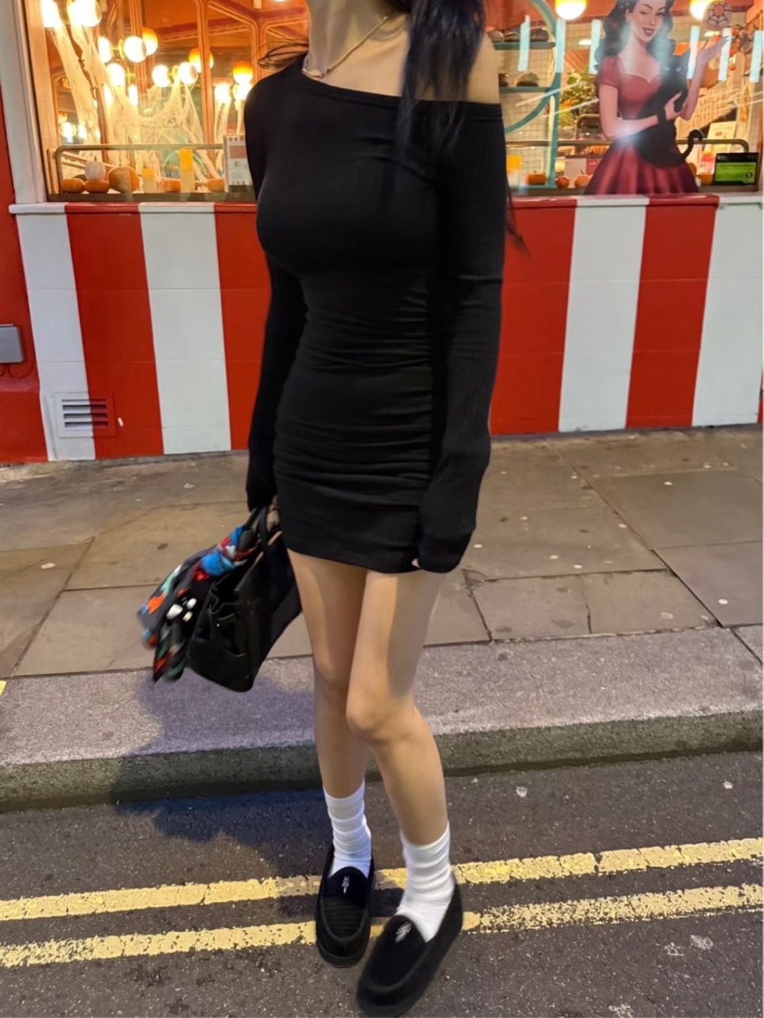 假兩件繞頸背心+垂墜可斜肩上衣SET