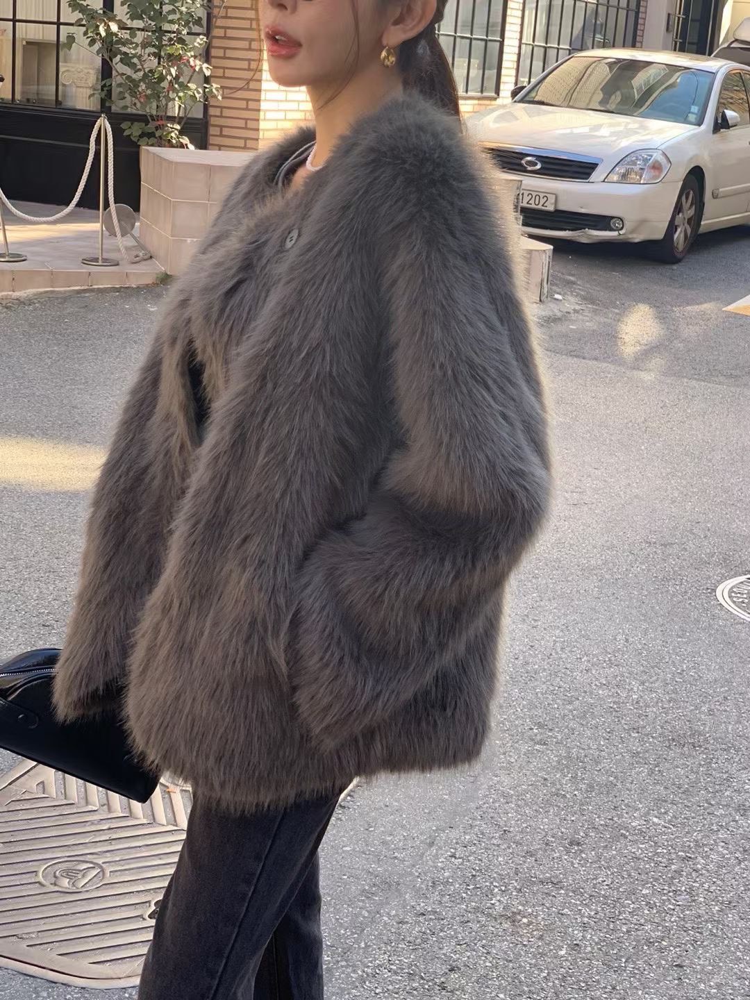 超柔軟!馬海毛暗扣連帽外套