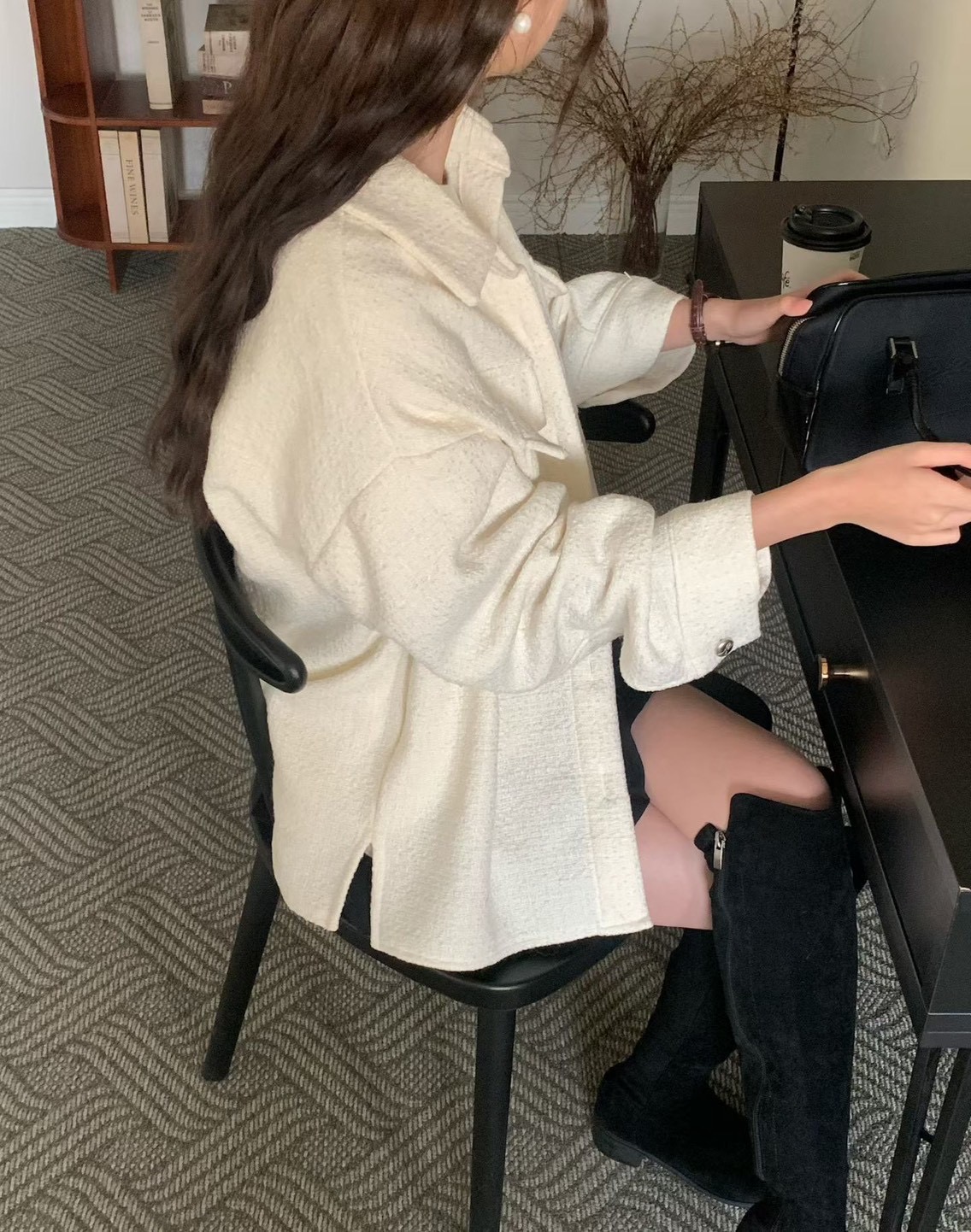 翻領拉鍊短版手工羊毛外套