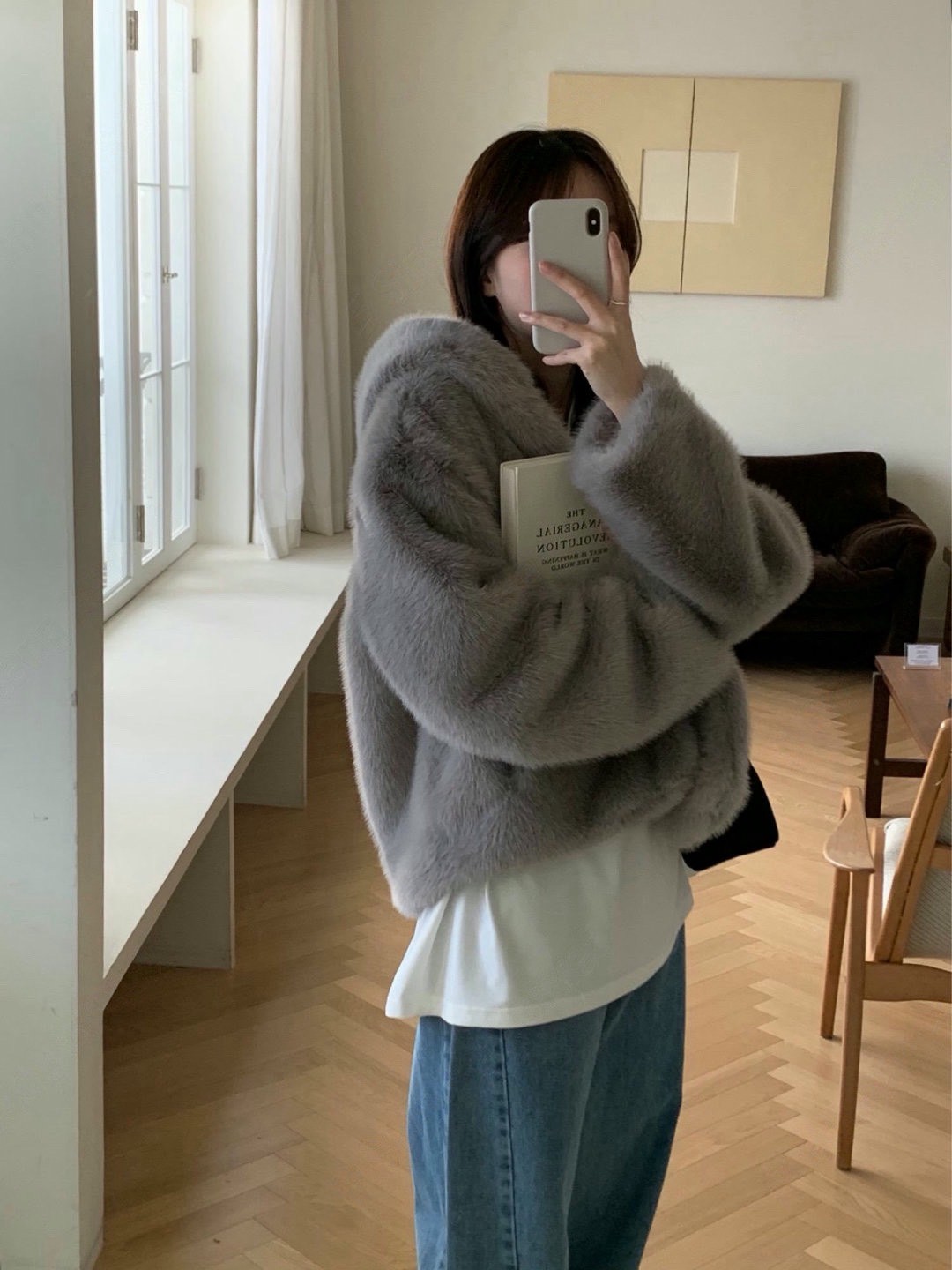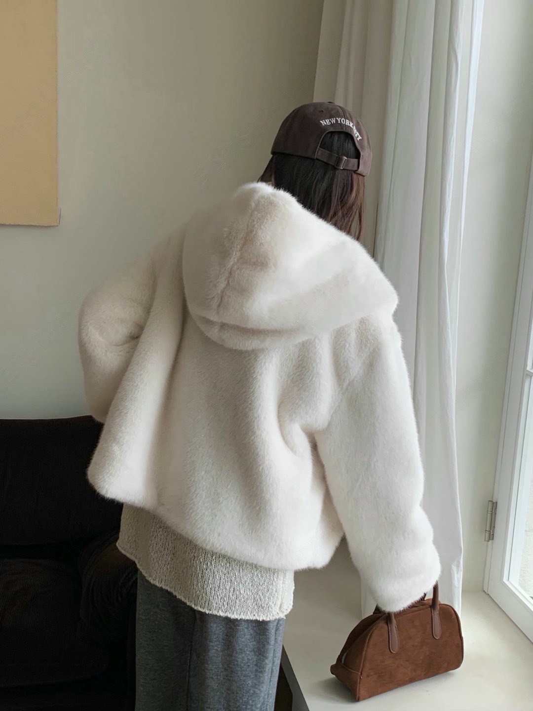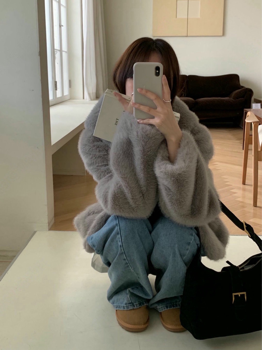 可拆狐狸毛連帽縮腰鴨絨外套(鴨絨100%)