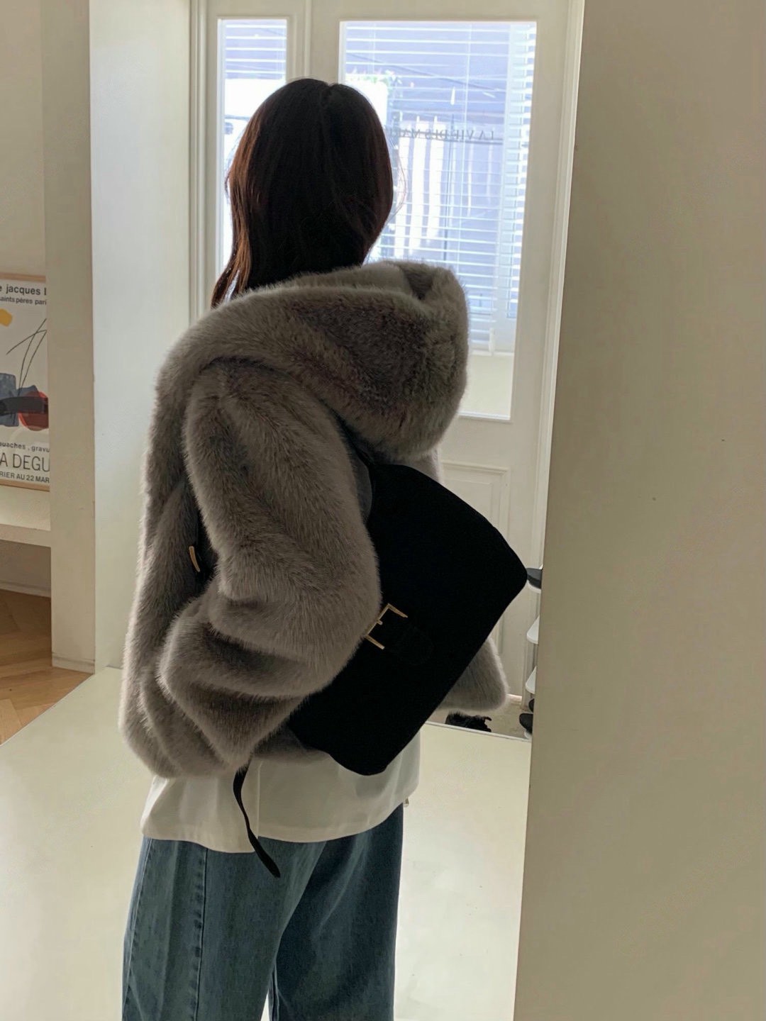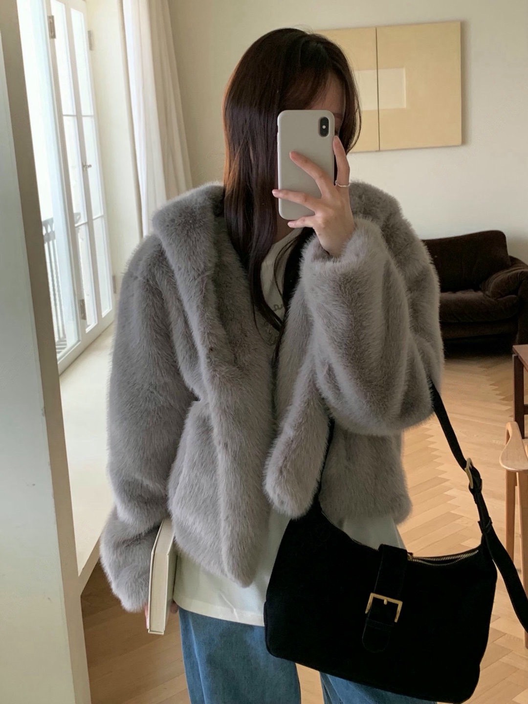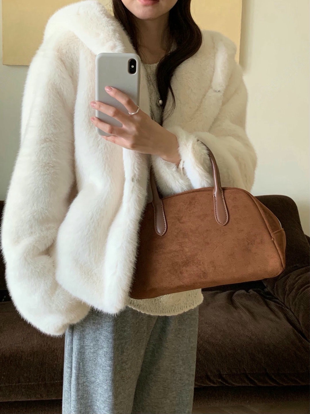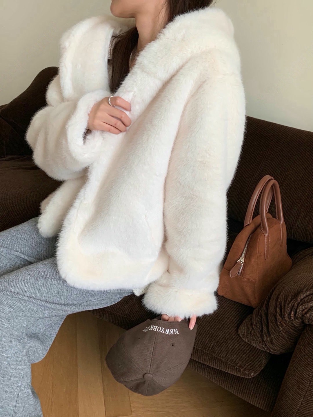 可拆狐狸毛連帽縮腰鴨絨外套(鴨絨100%)