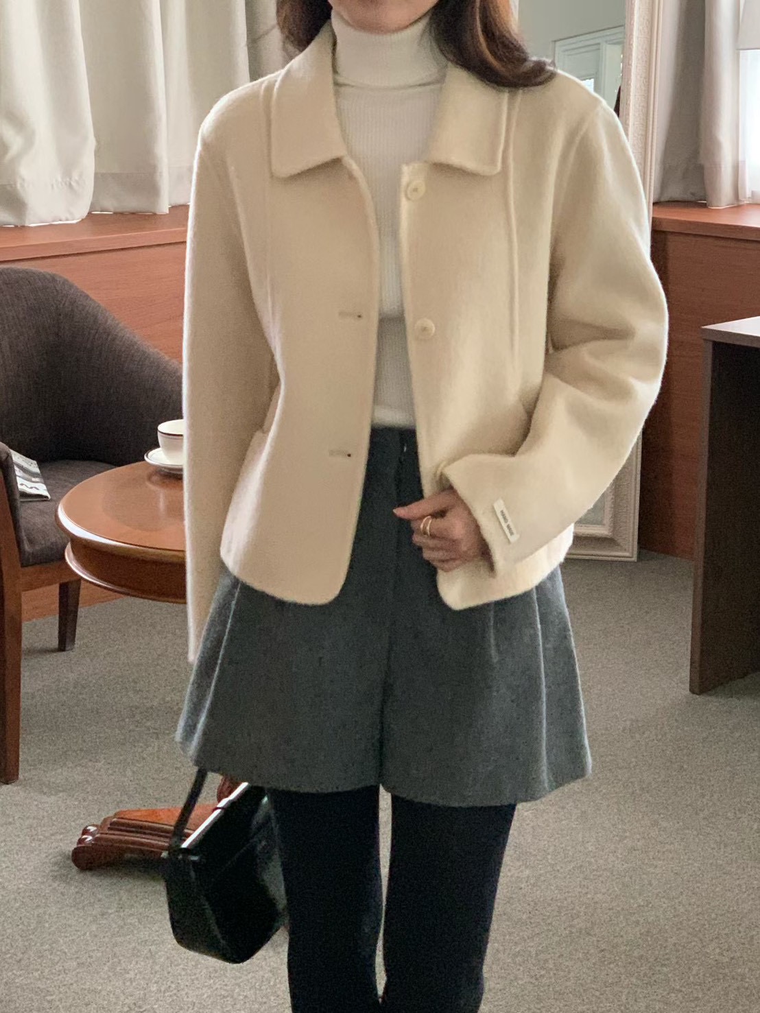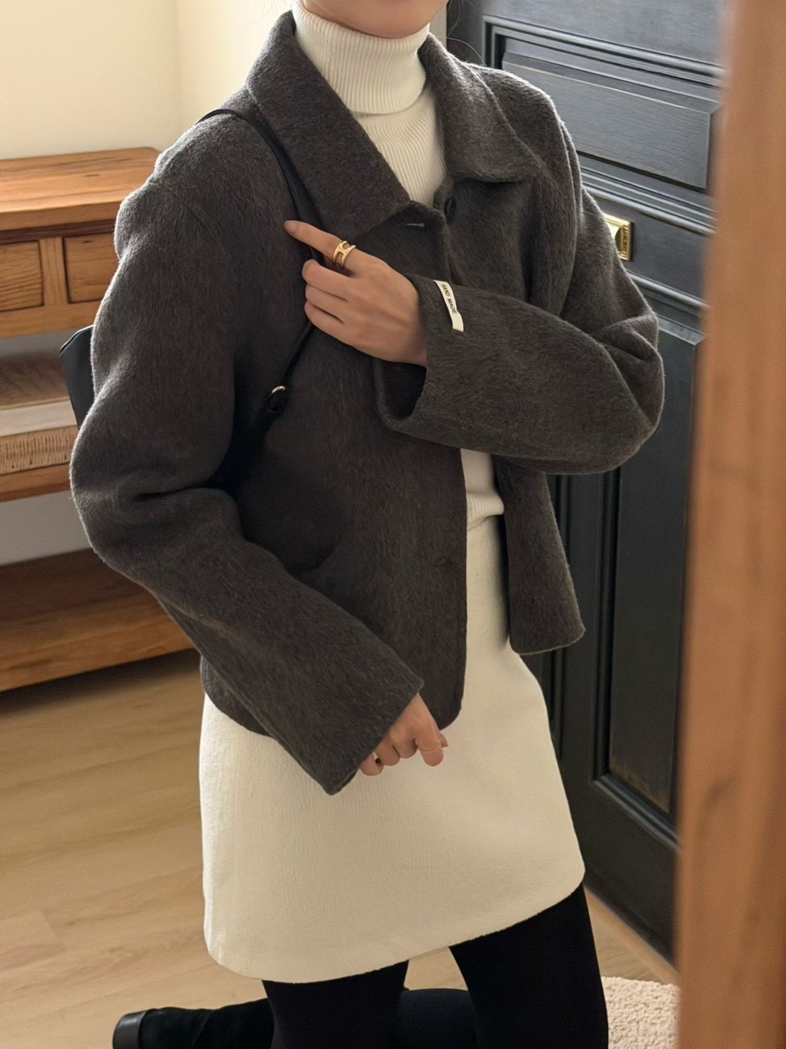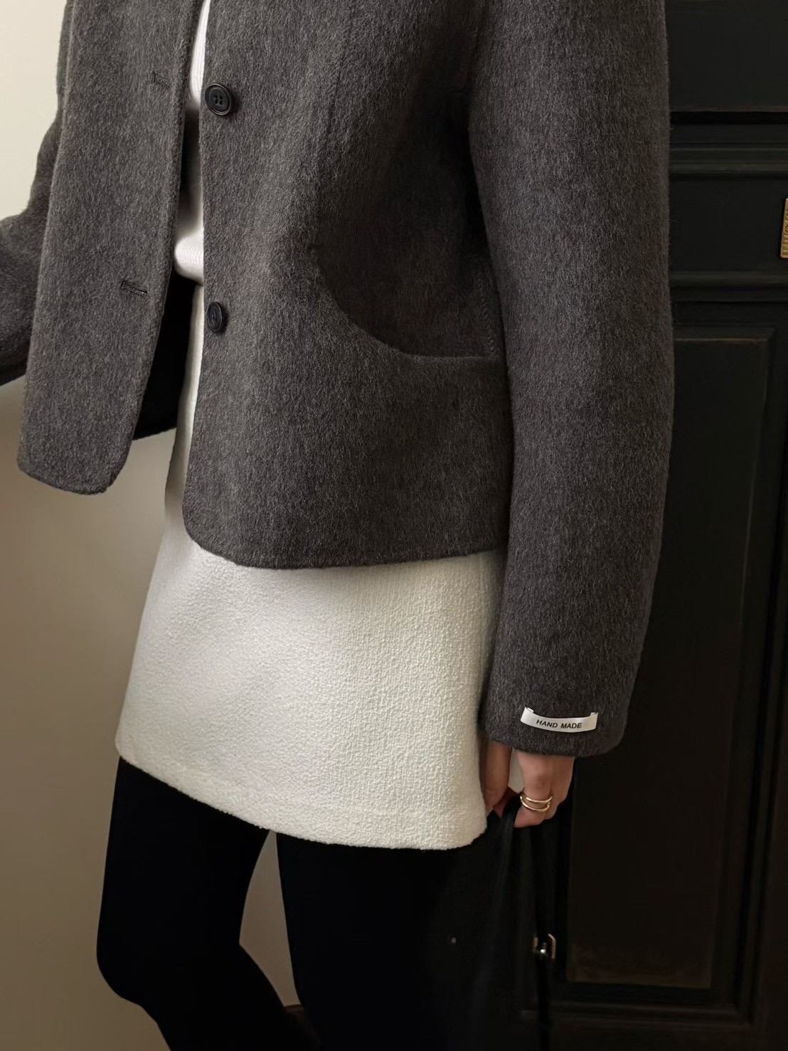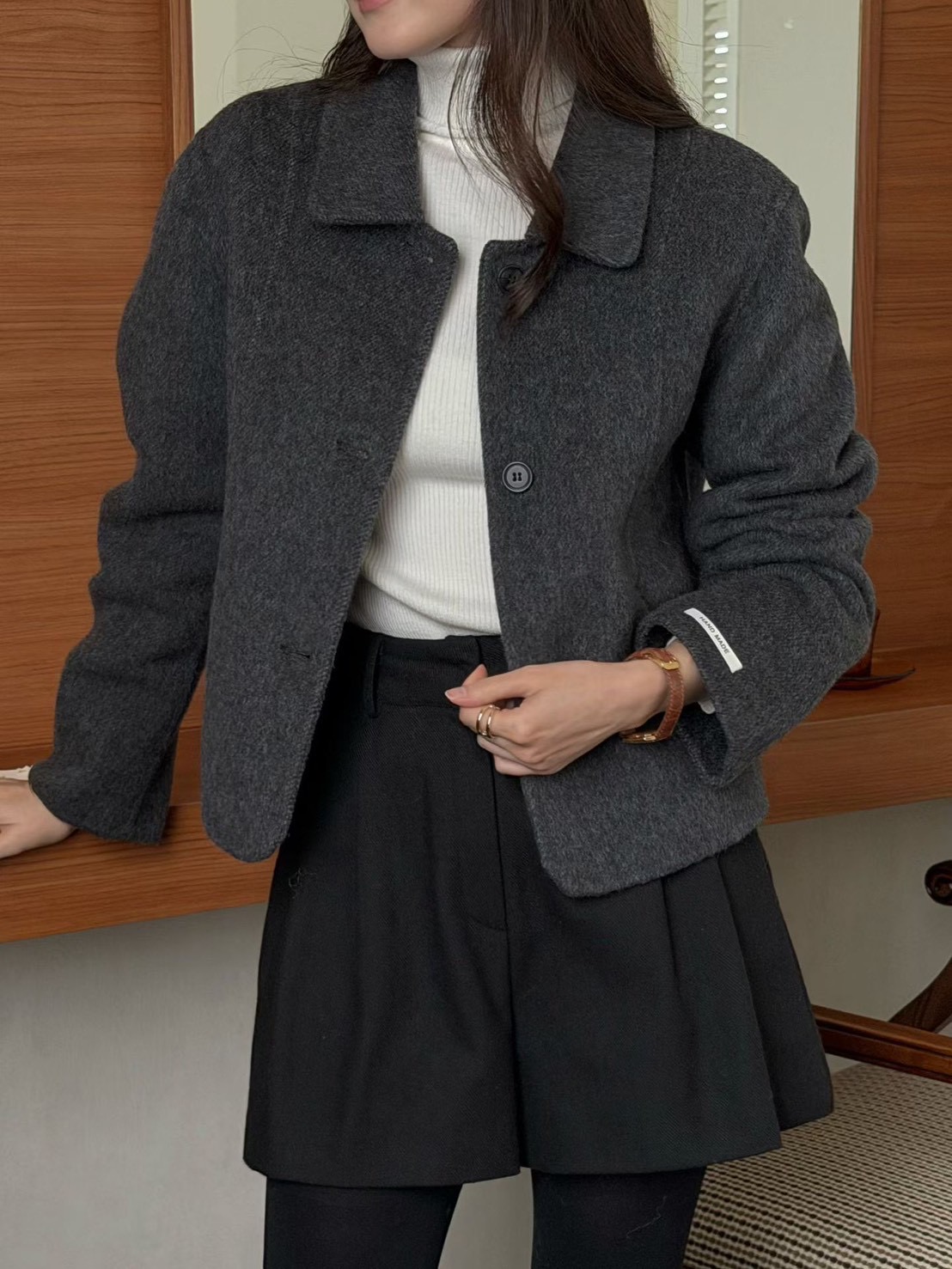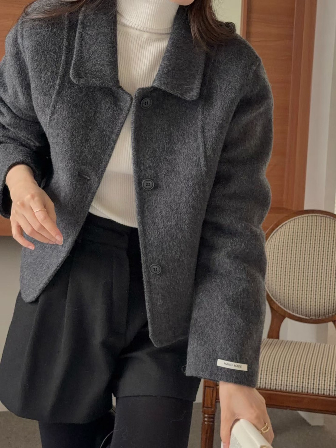 披肩圍巾排釦混羊毛手工大衣(80%羊毛+20%克什米爾羊毛)