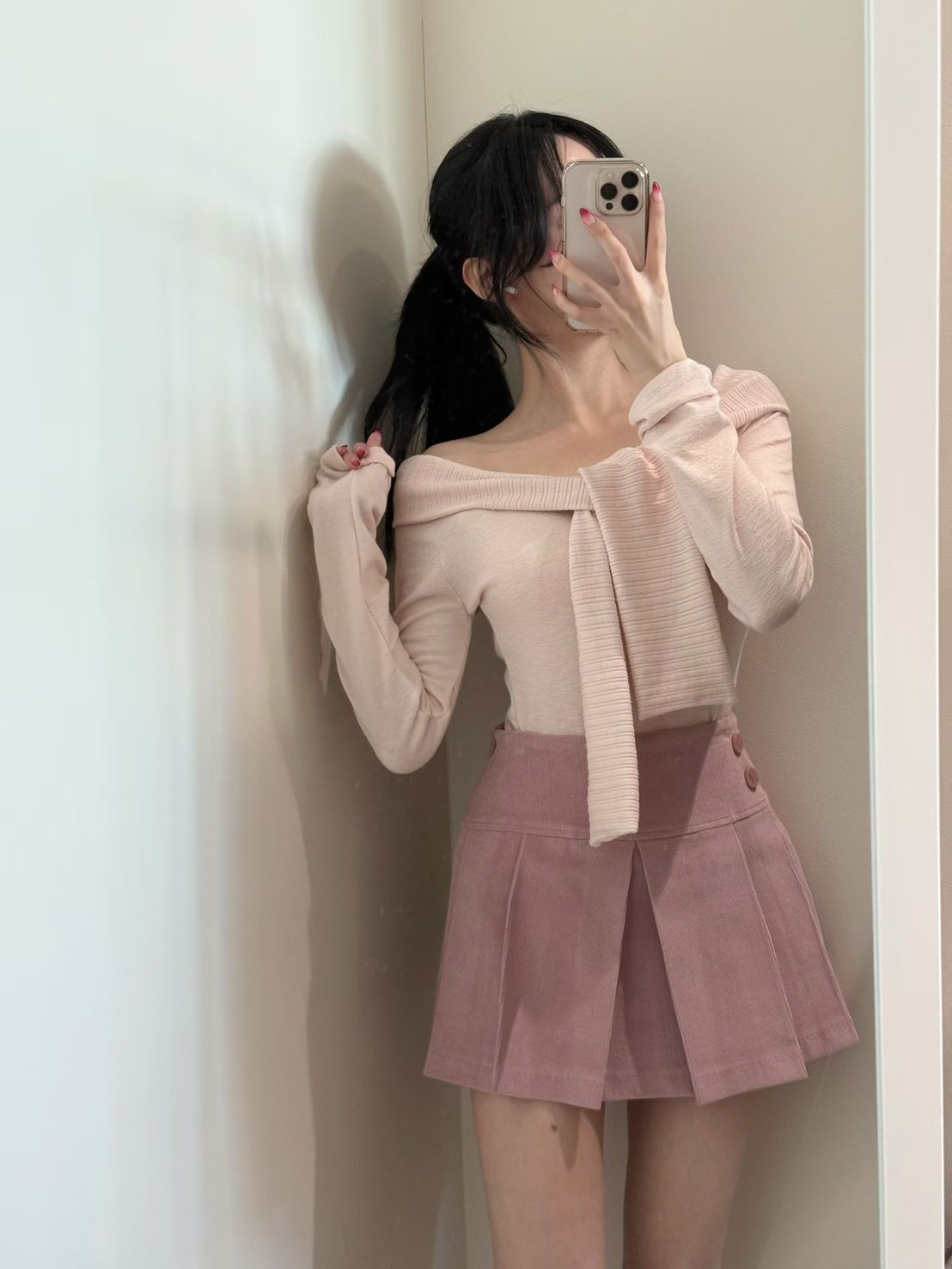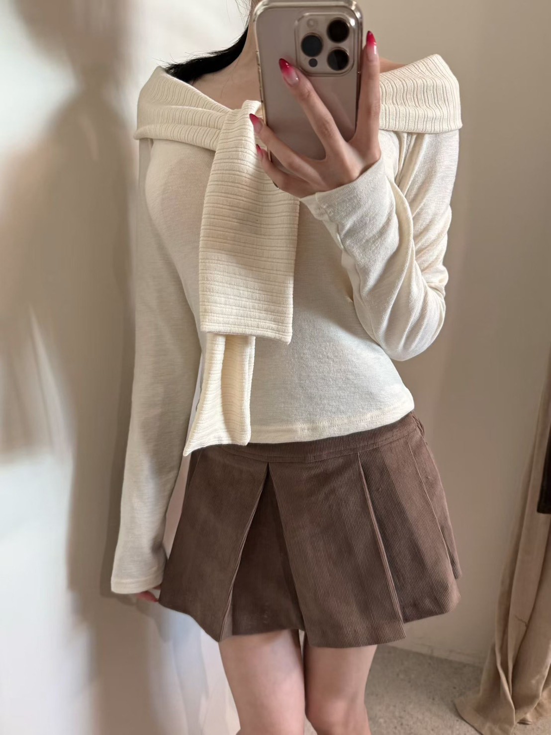 假兩件繞頸背心+垂墜可斜肩上衣SET