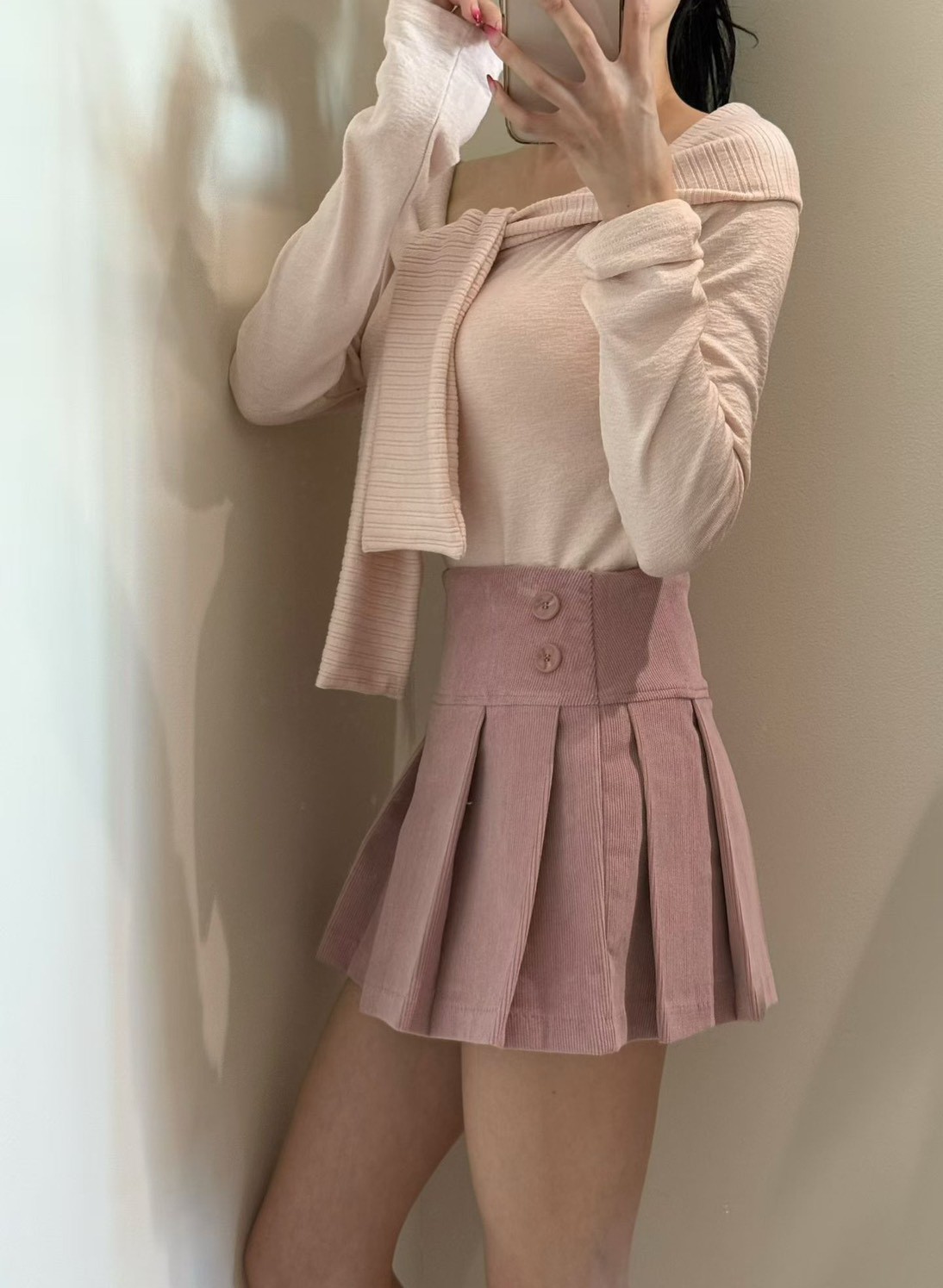 短版坑紋罩衫+荷葉滾邊背心短洋SET