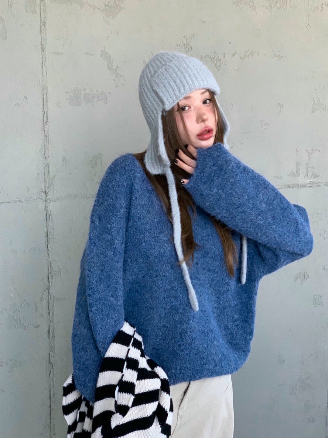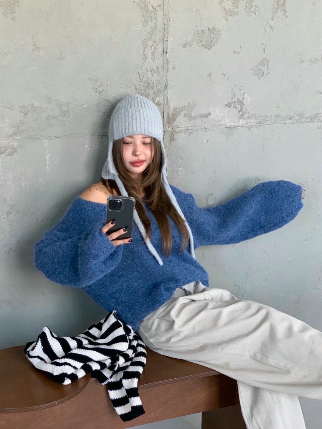 落肩鏤空羊毛長版針織衫+針織帽SET(30%)
