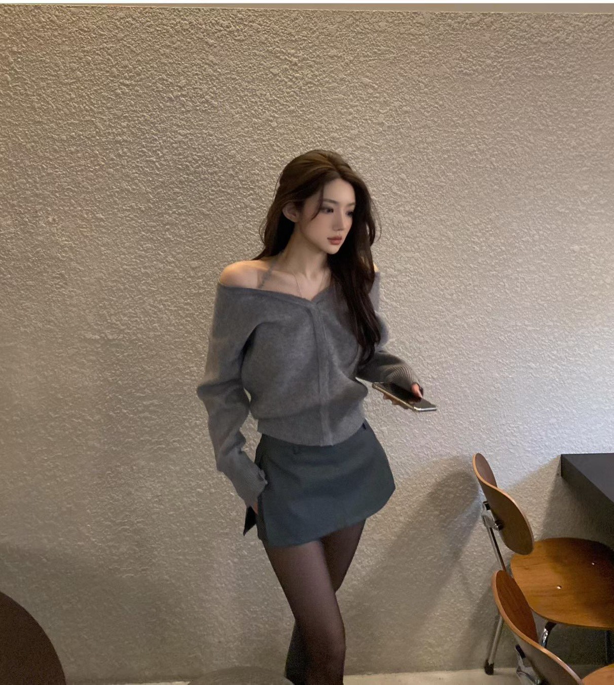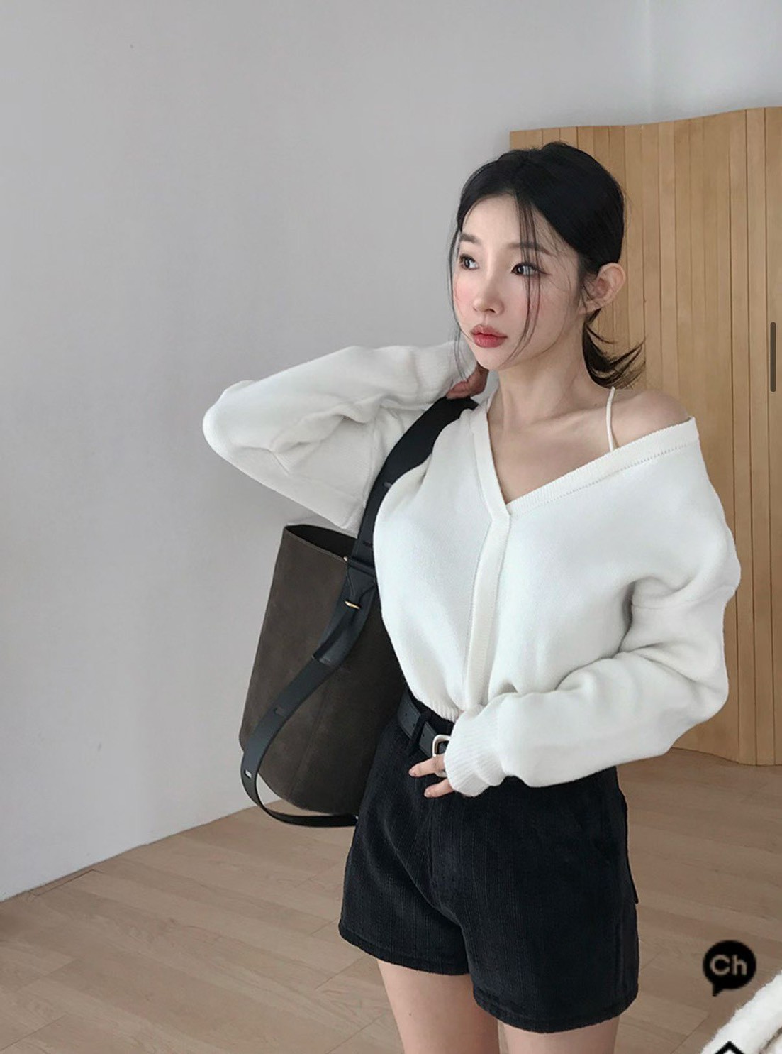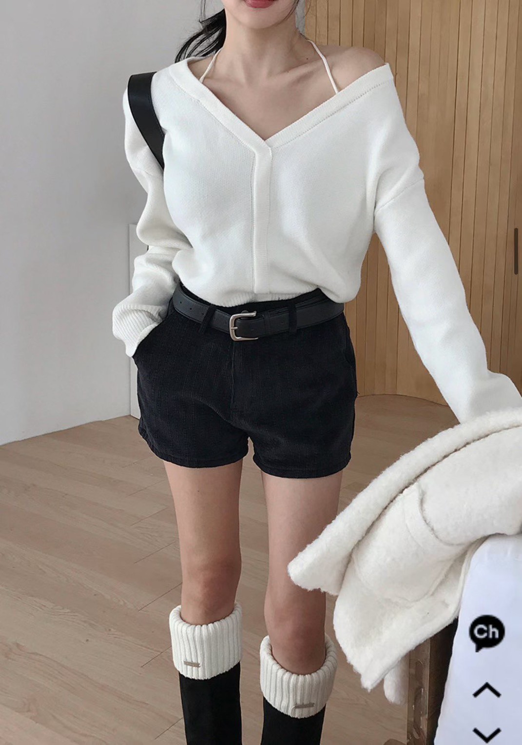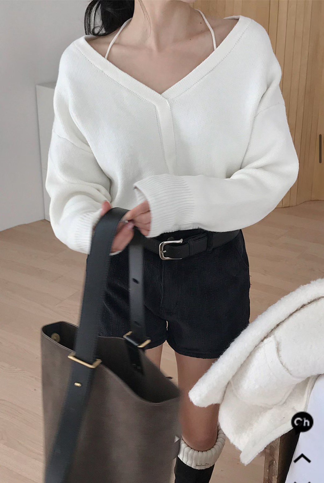 假兩件繞頸背心+垂墜可斜肩上衣SET