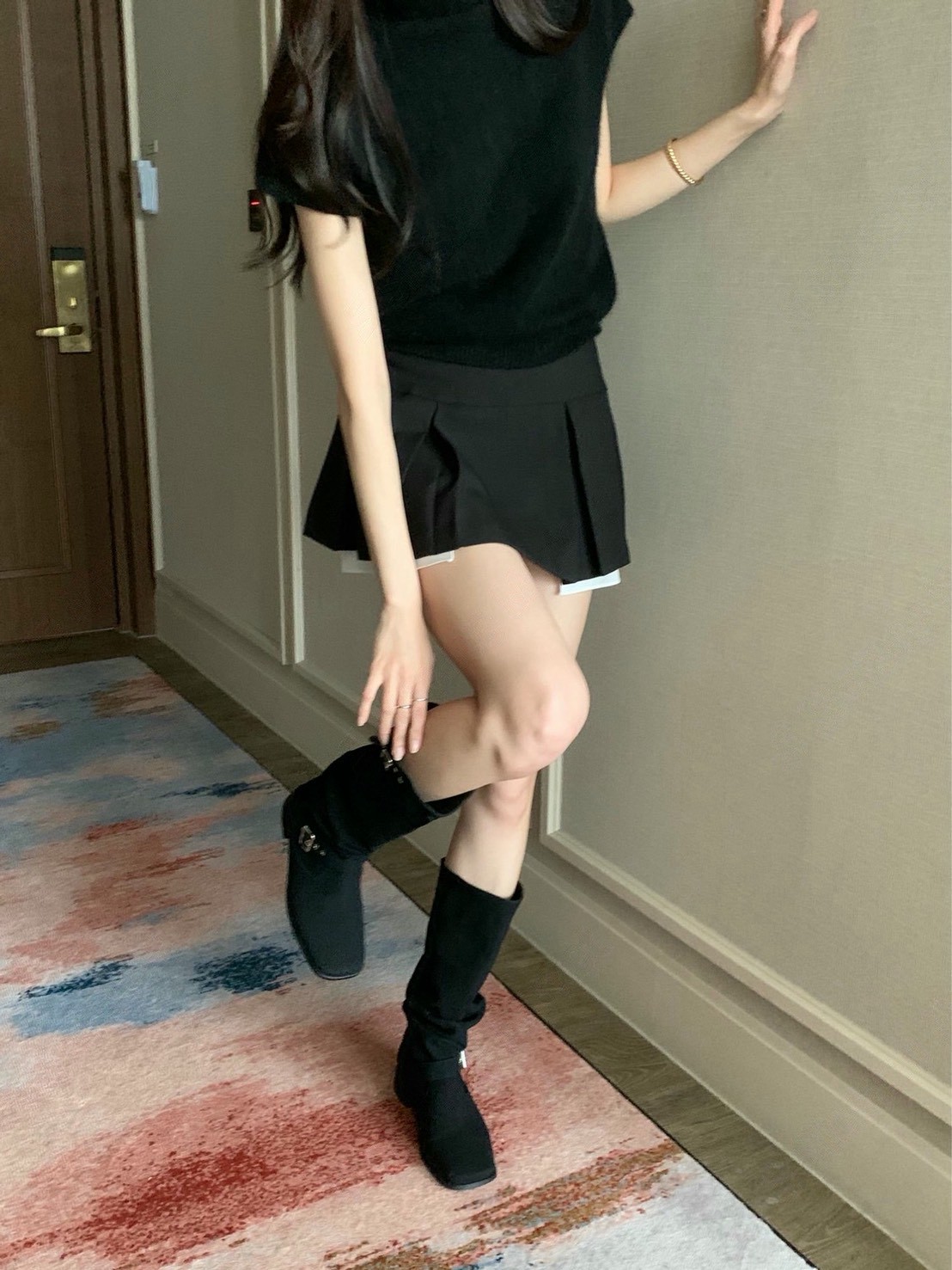 圓頭釦環麂皮膝上靴