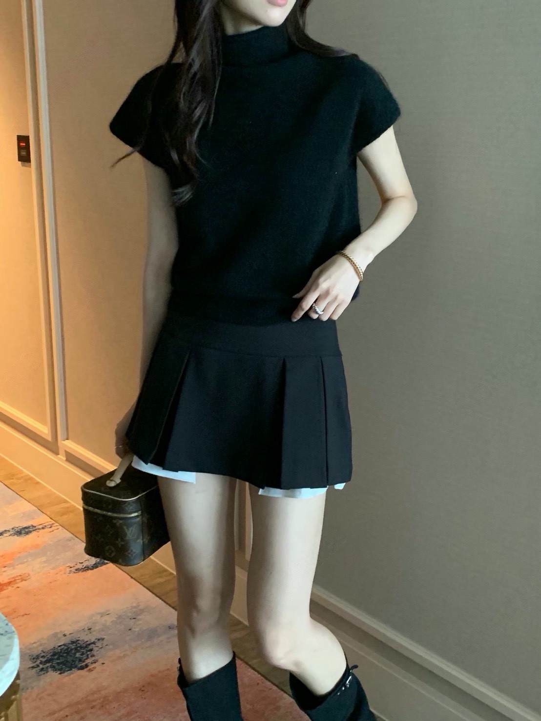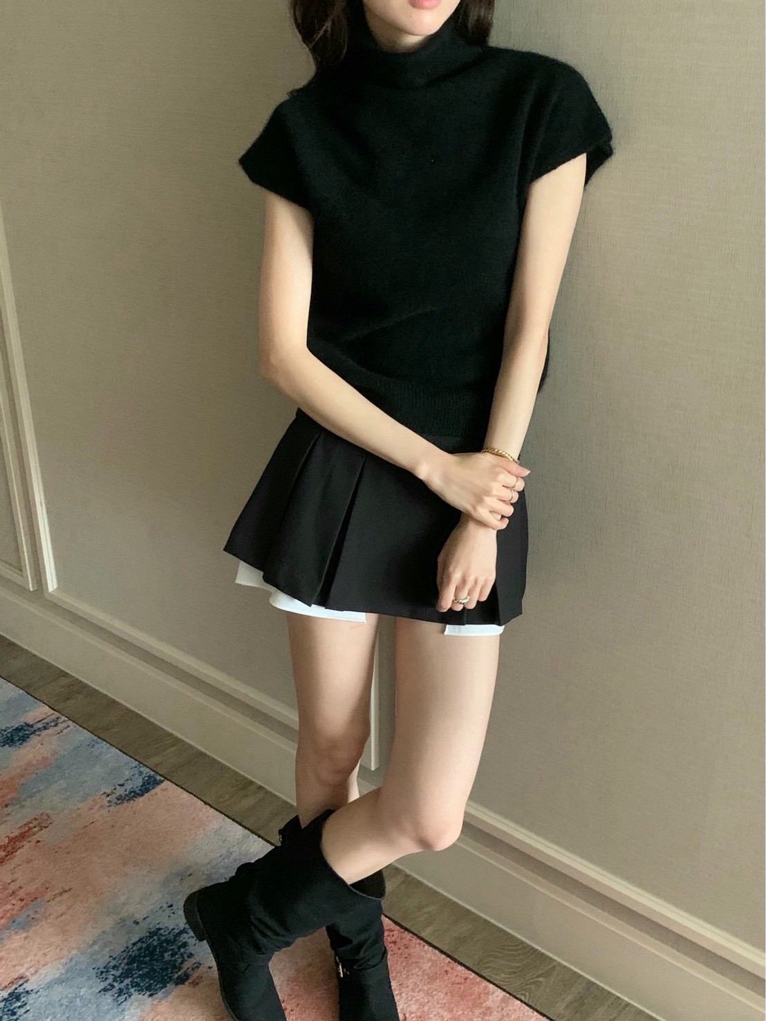 拼接層次百摺西裝短裙