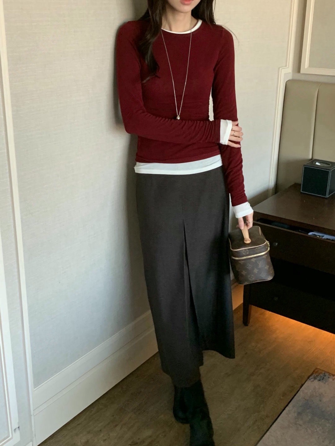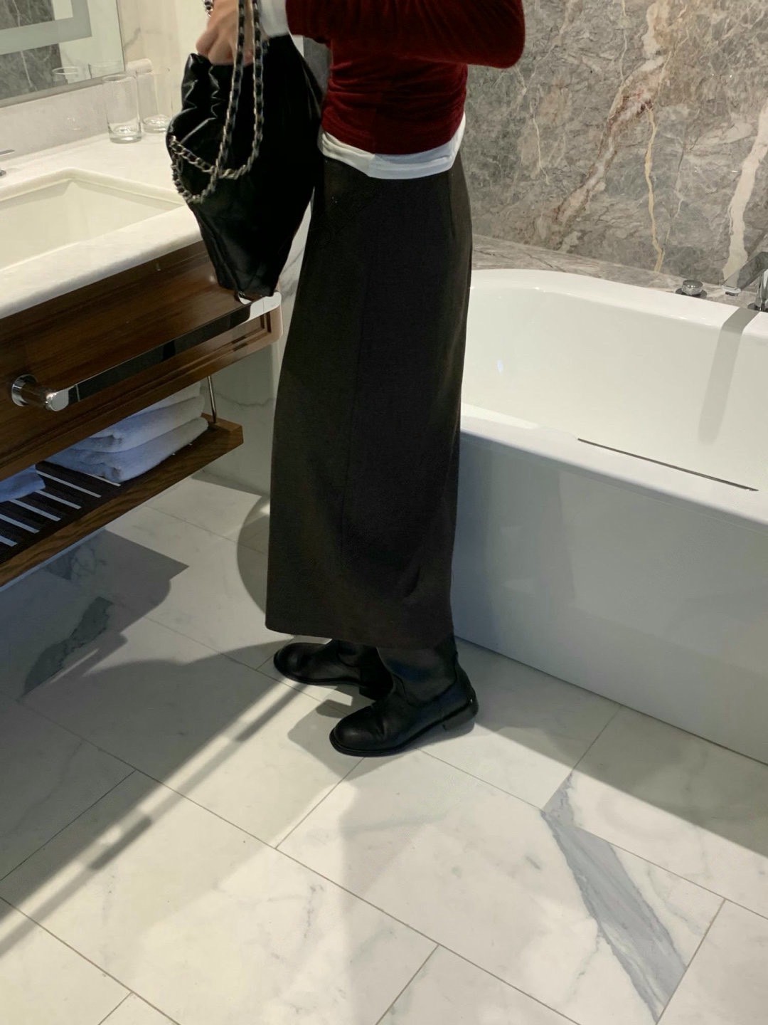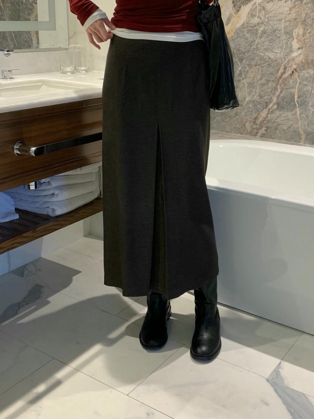 磨毛拼接百褶短褲裙(附扣環皮帶)