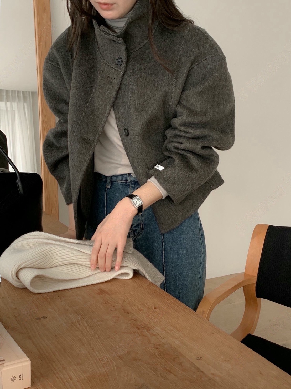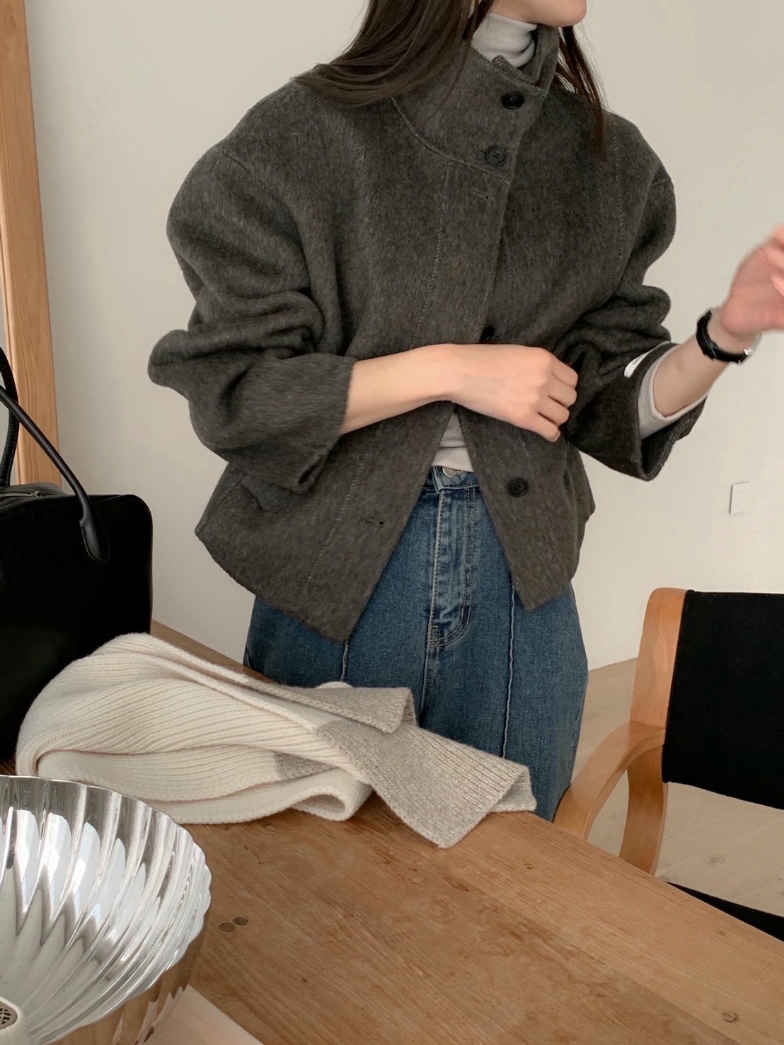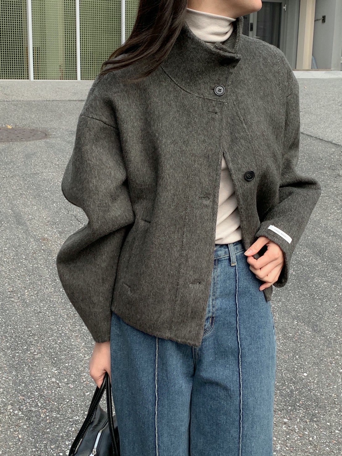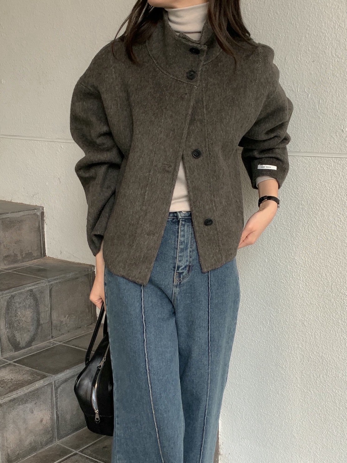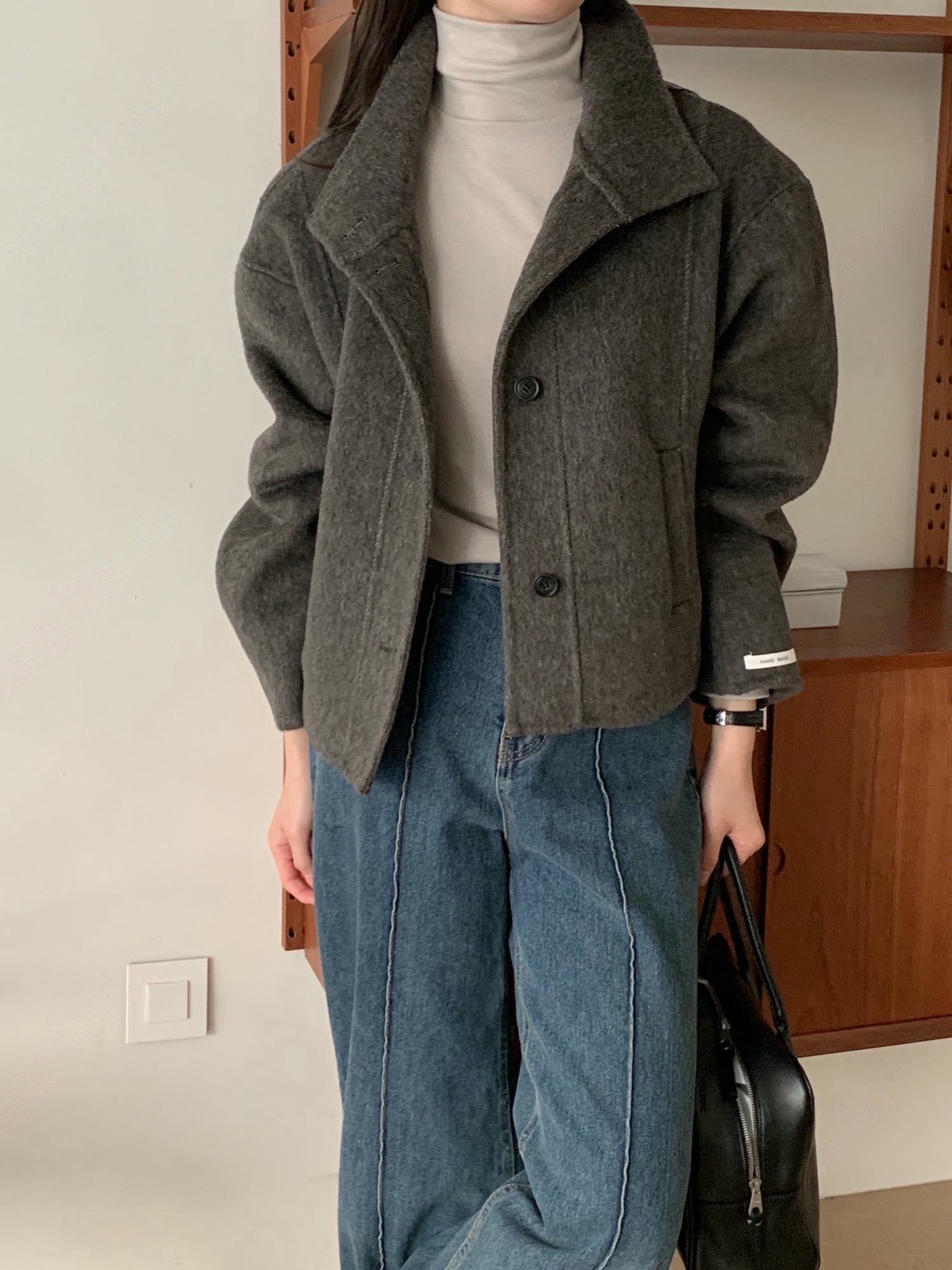 可高領簡約西裝版型手工羊毛外套(羊毛80%)