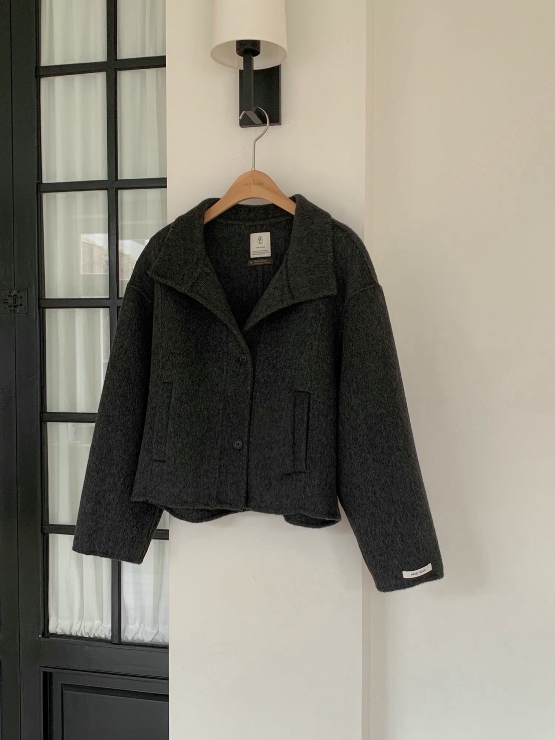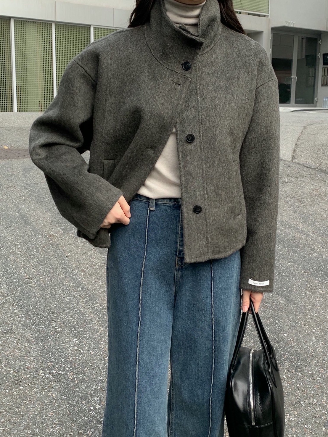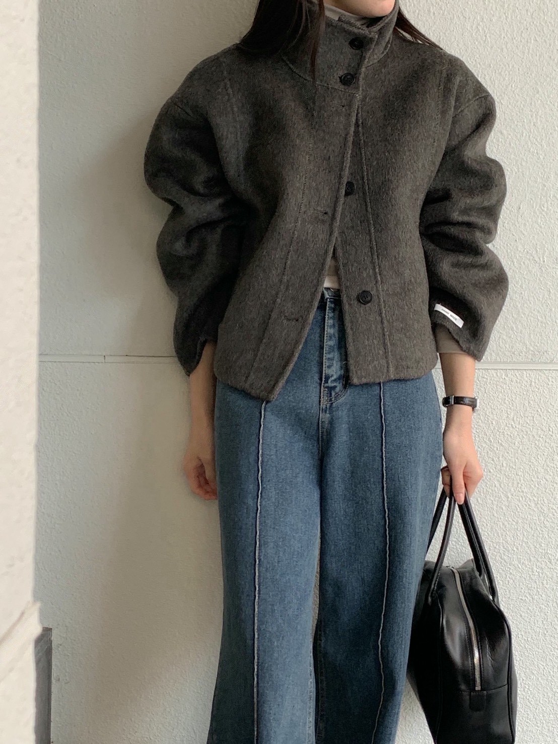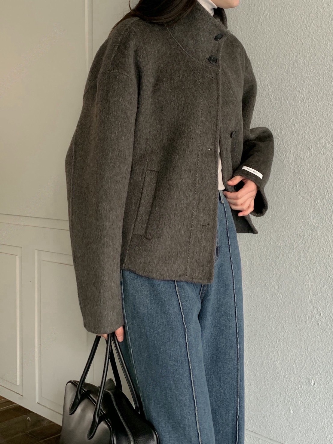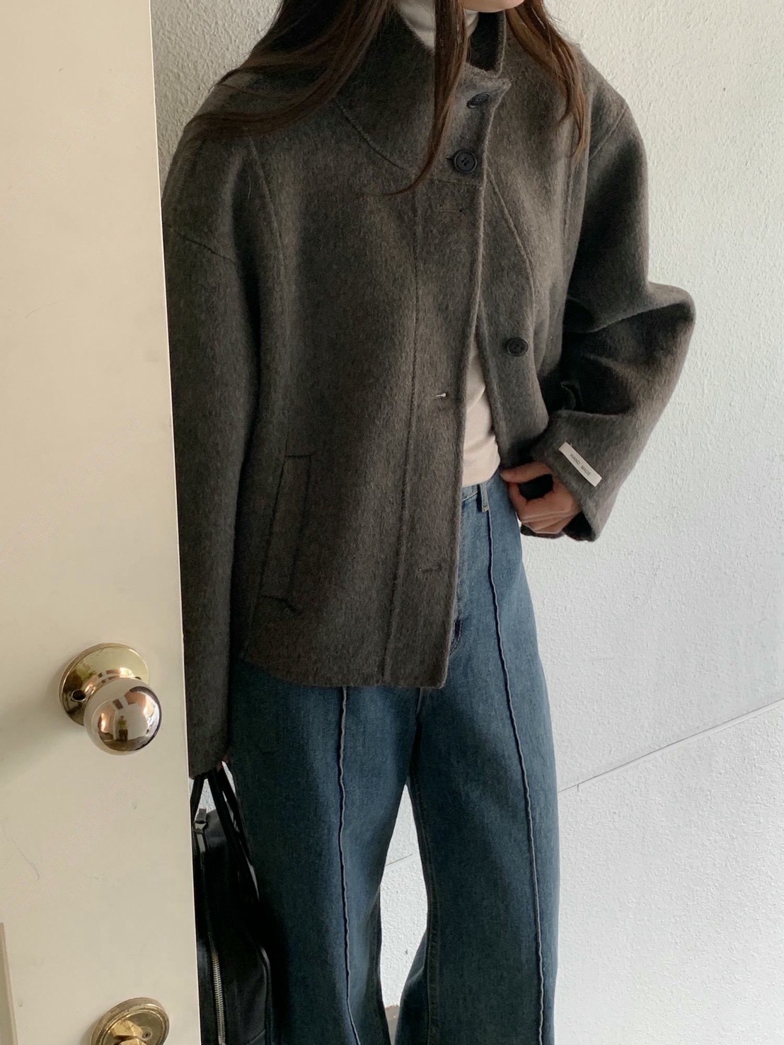 可高領簡約西裝版型手工羊毛外套(羊毛80%)