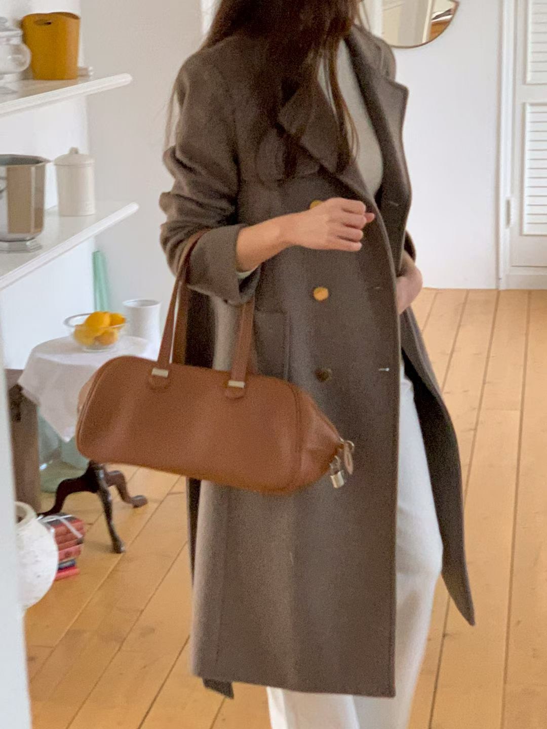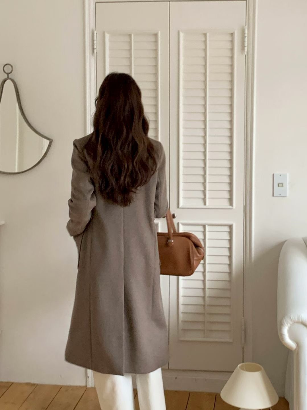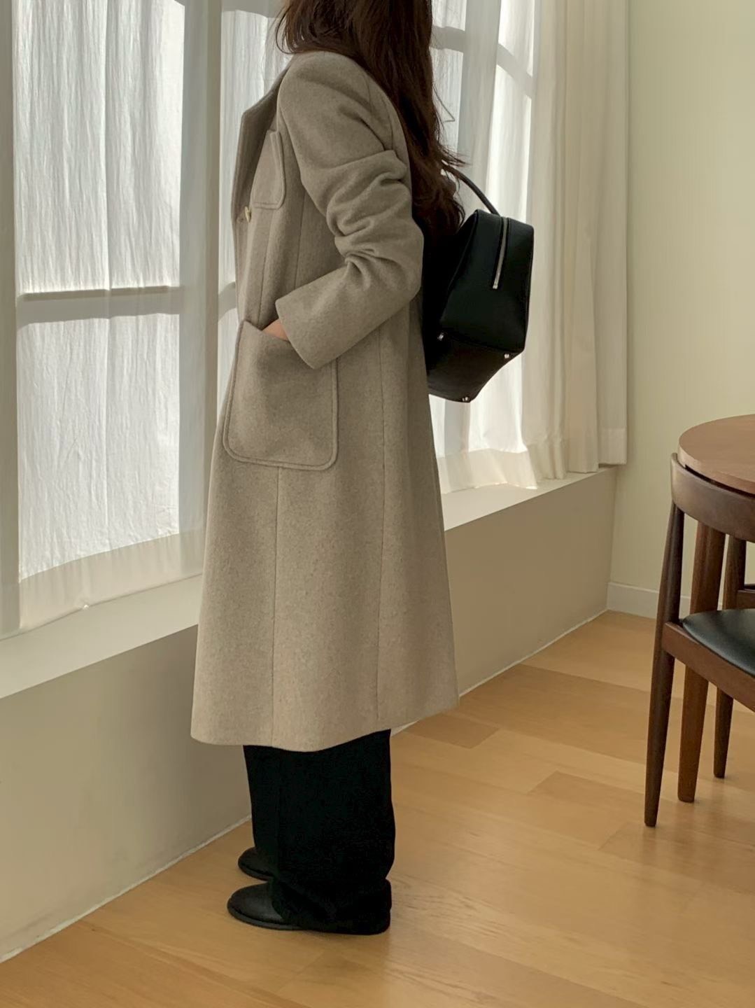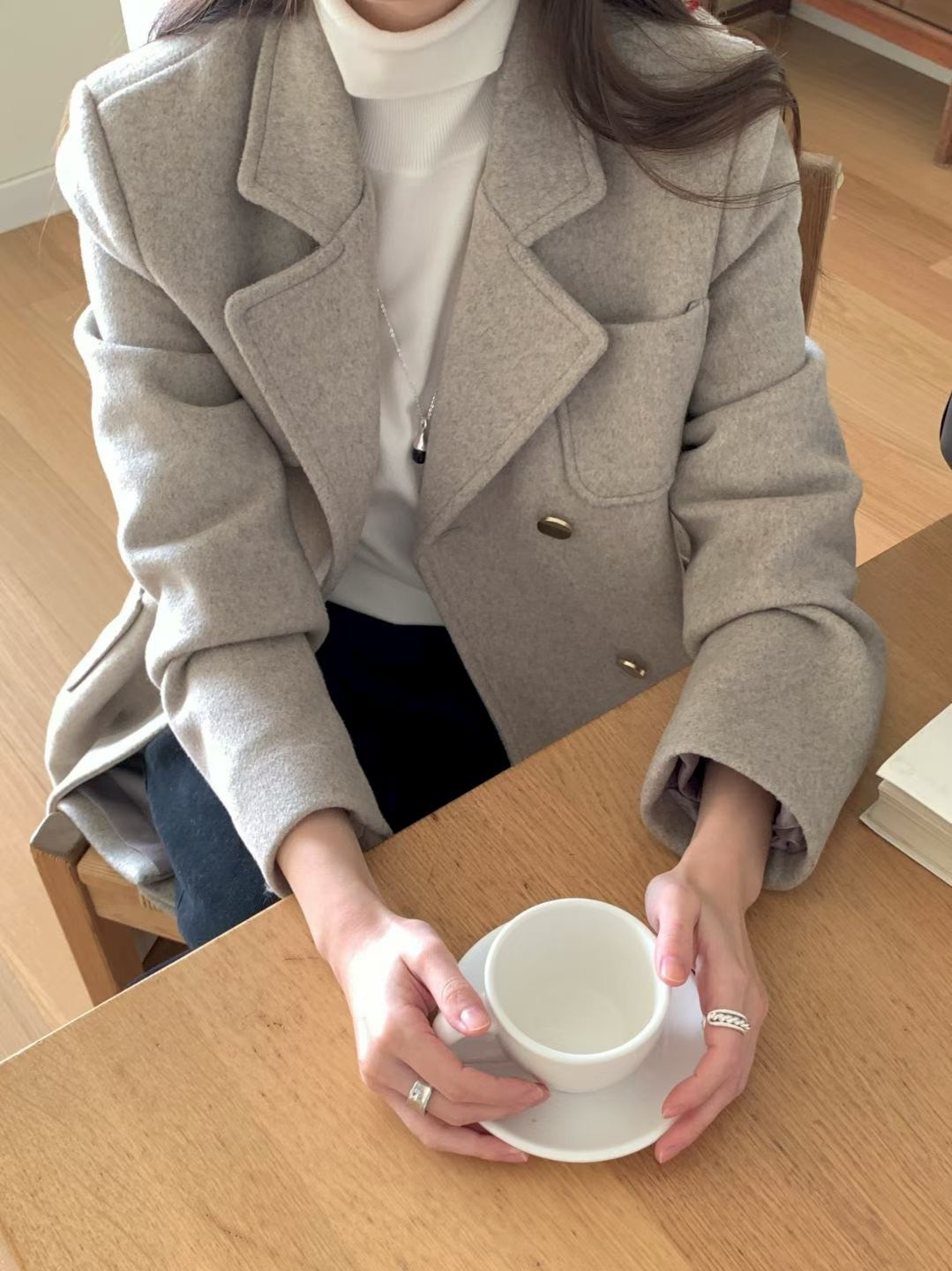 可高領簡約西裝版型手工羊毛外套(羊毛80%)