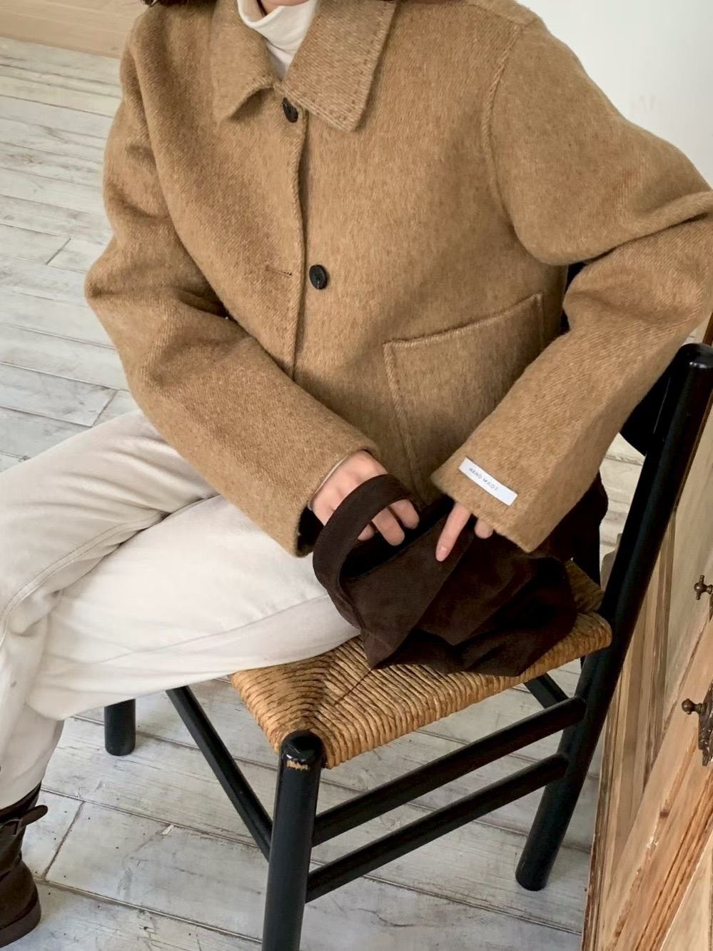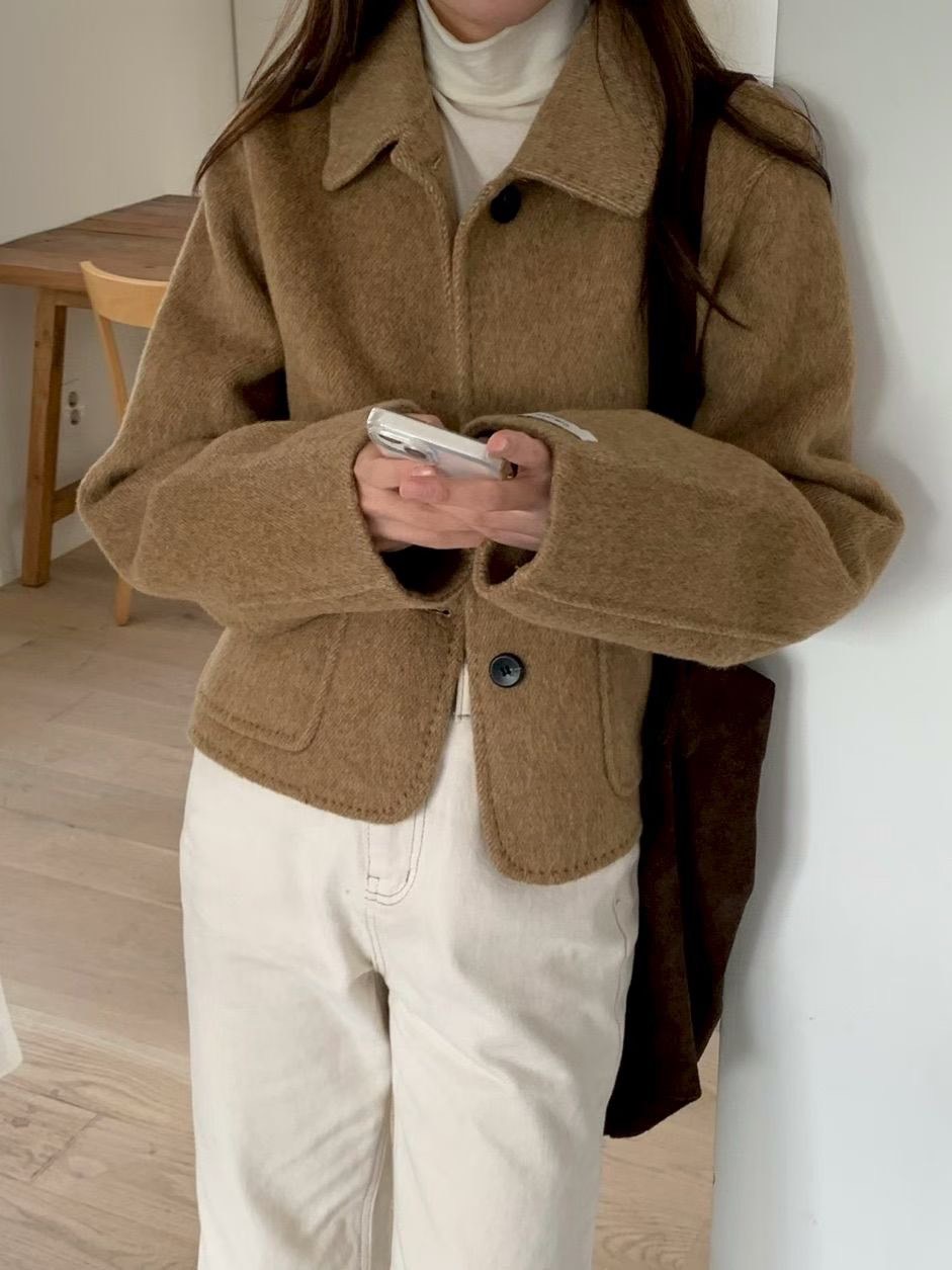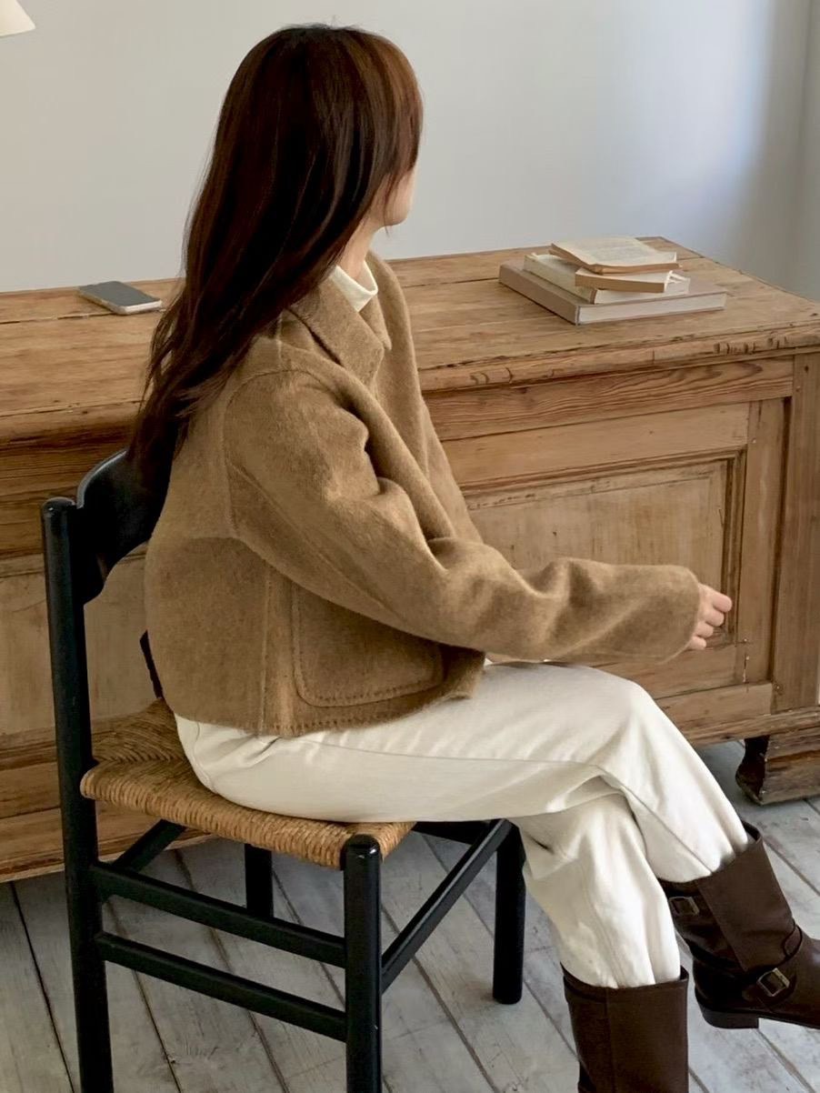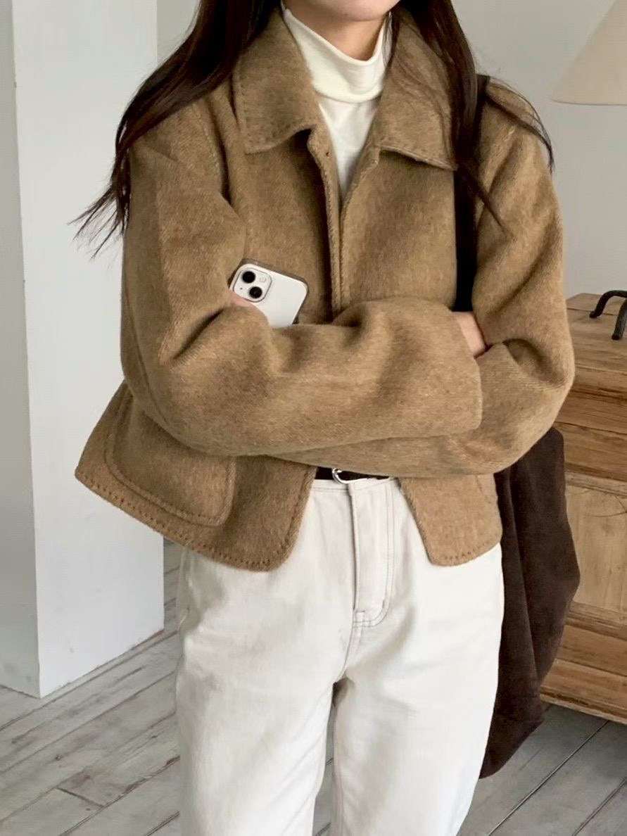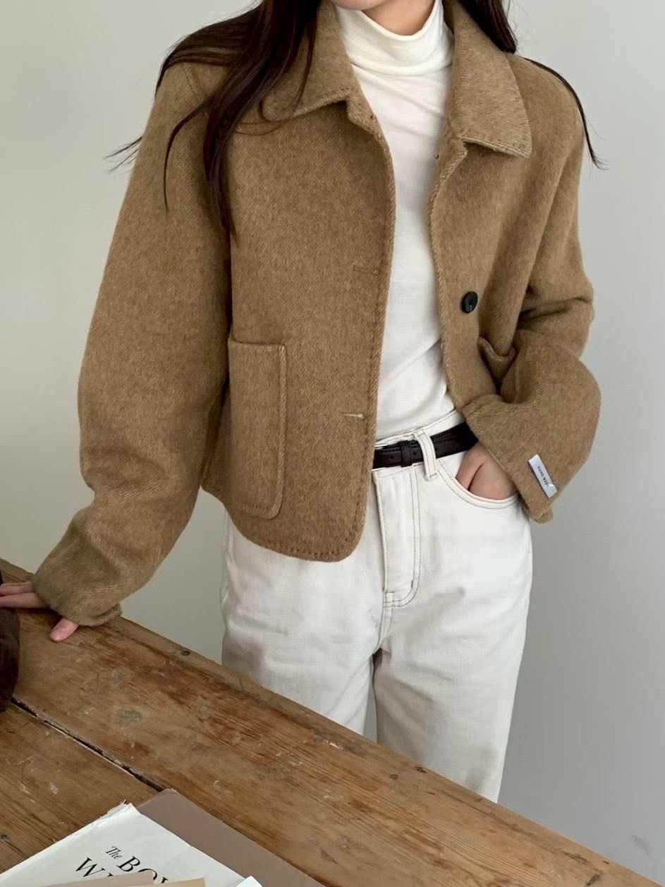 縫線滾邊翻領手工外套