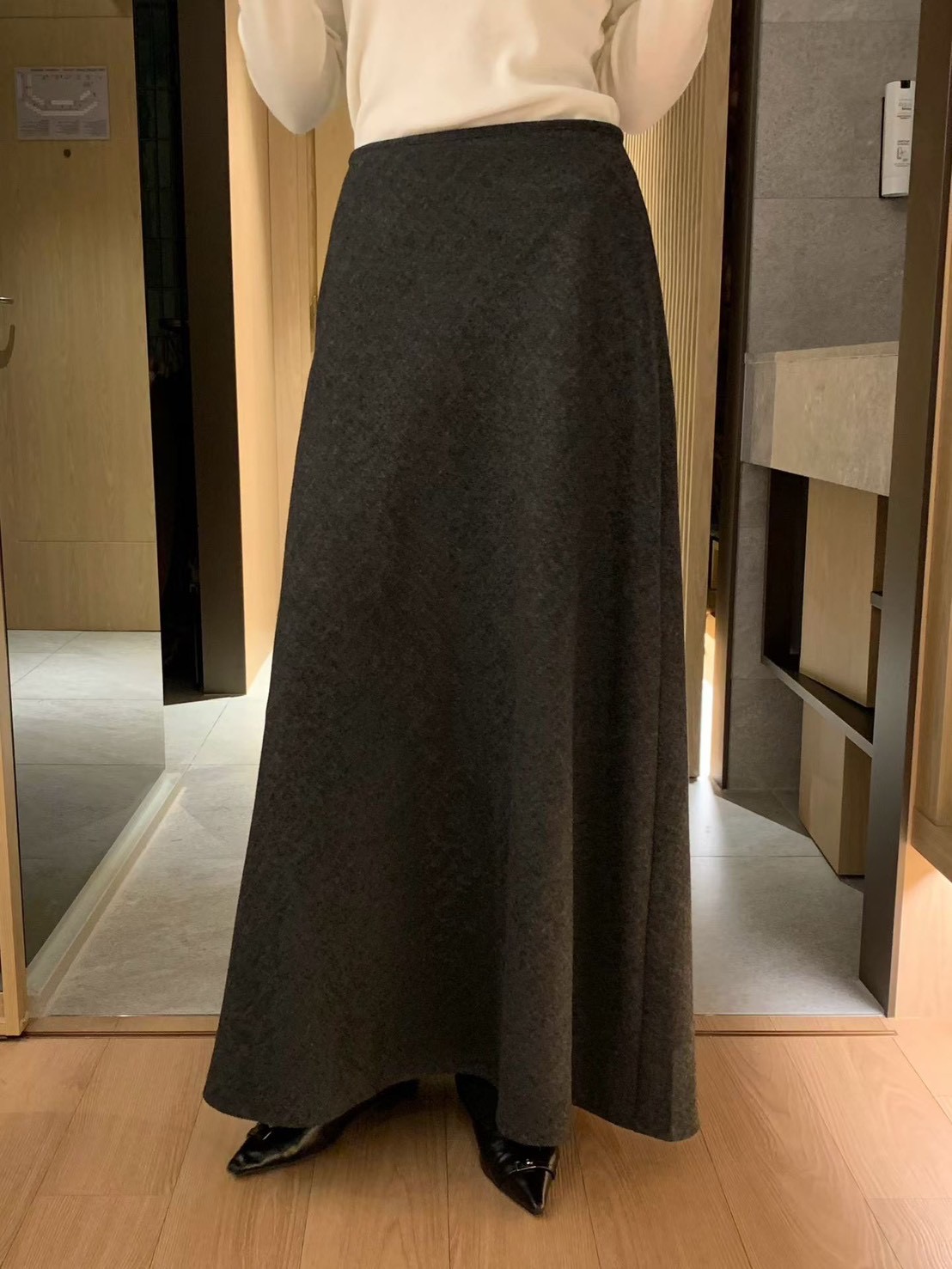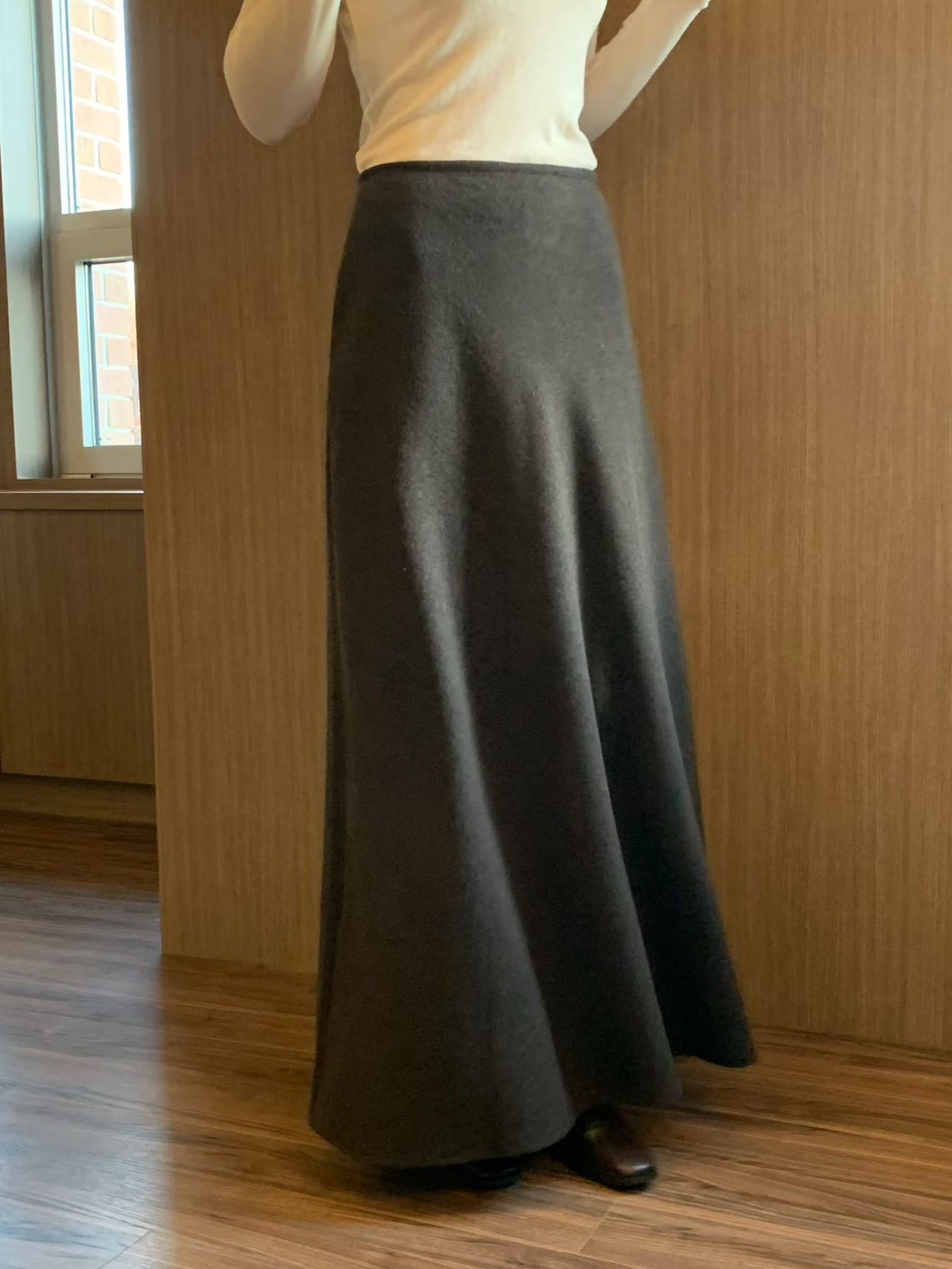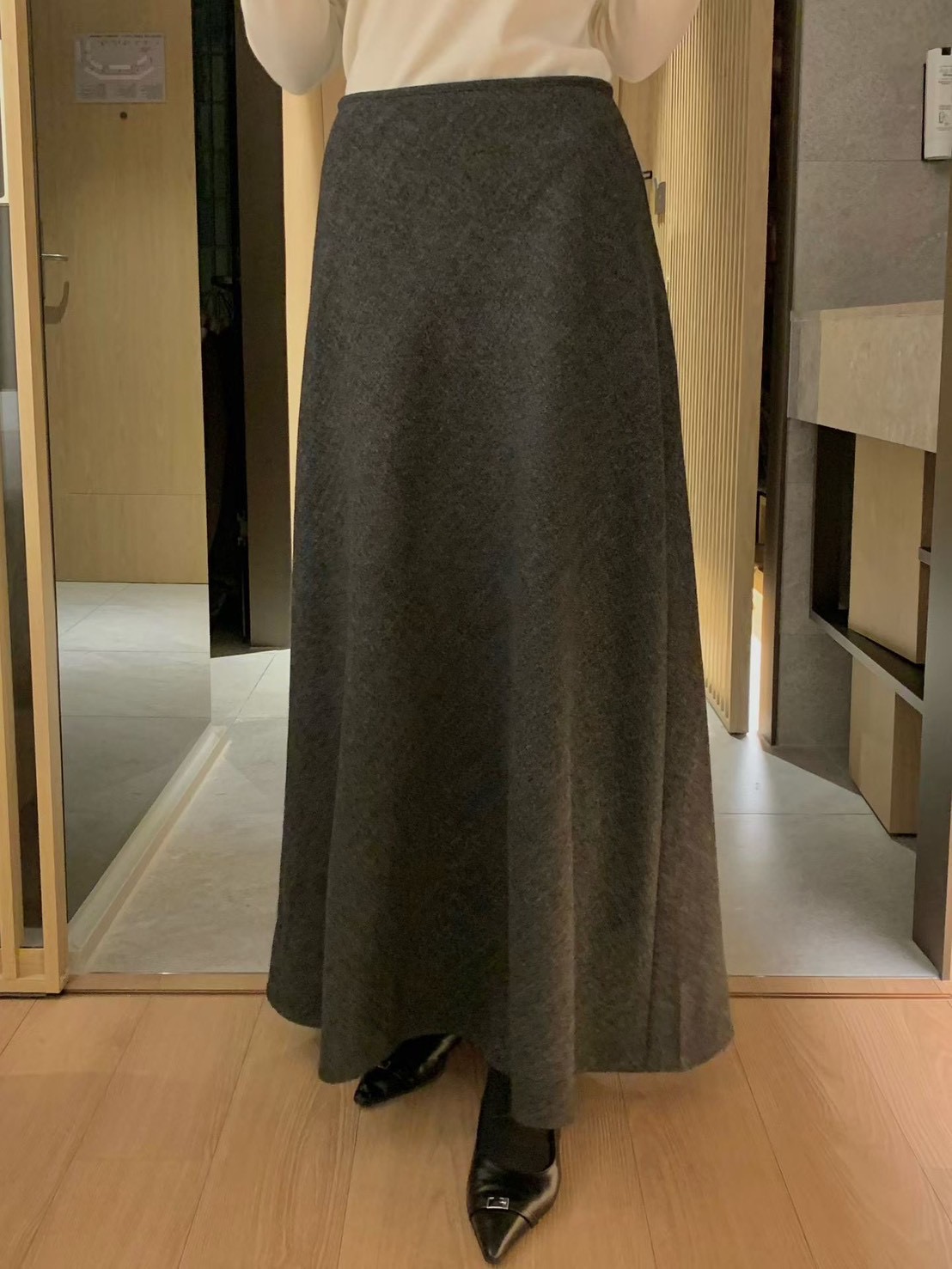 高腰傘擺羊毛50%素色長裙