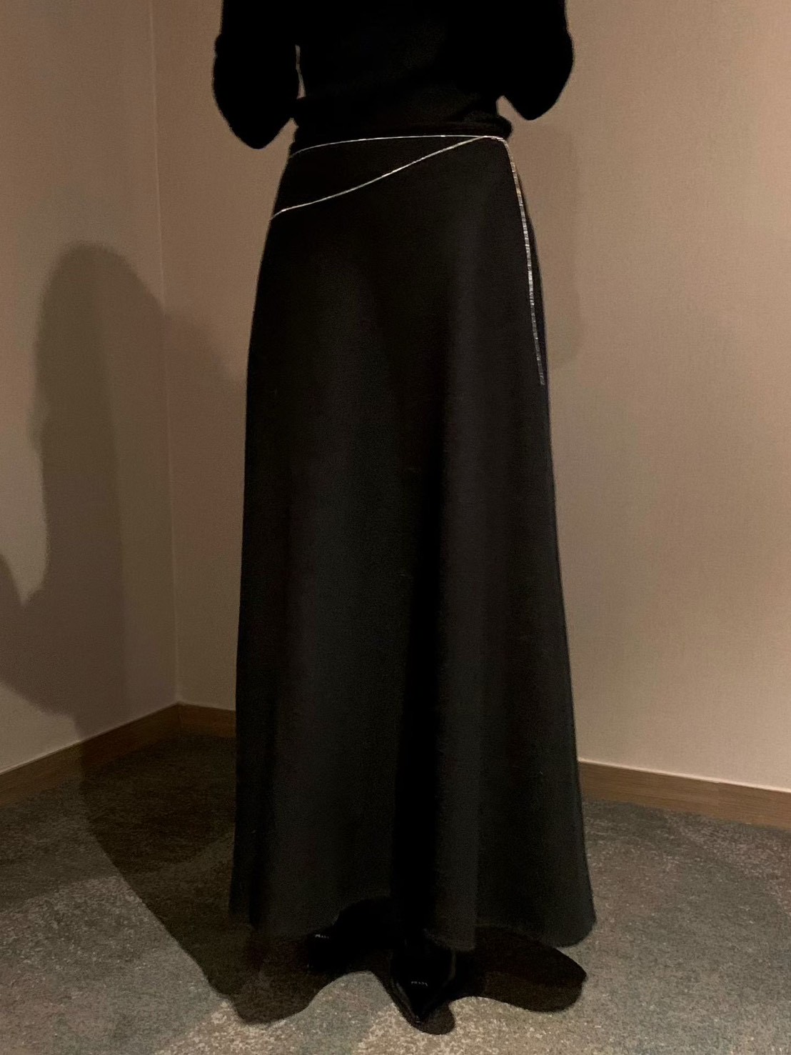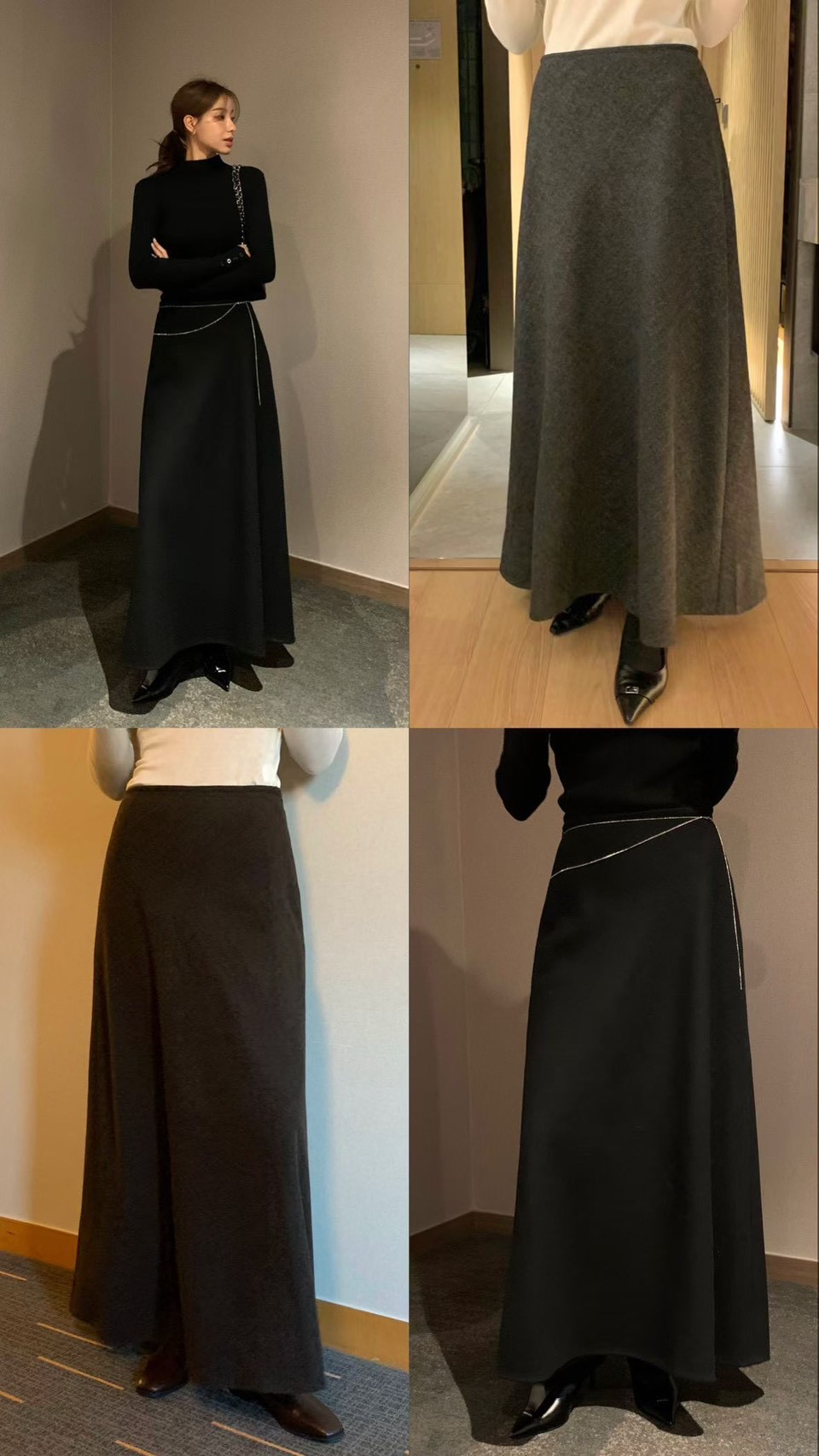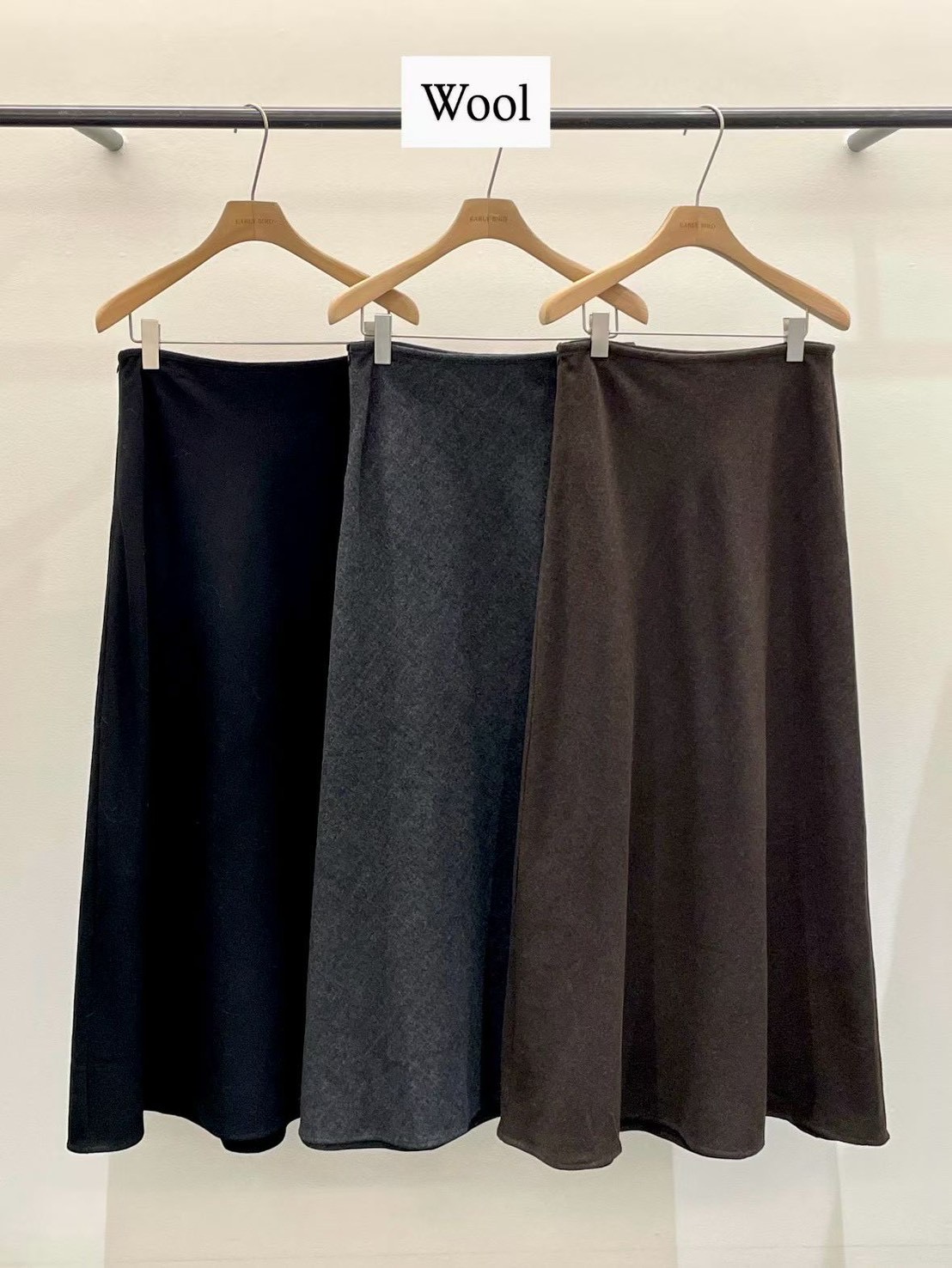高腰傘擺羊毛50%素色長裙