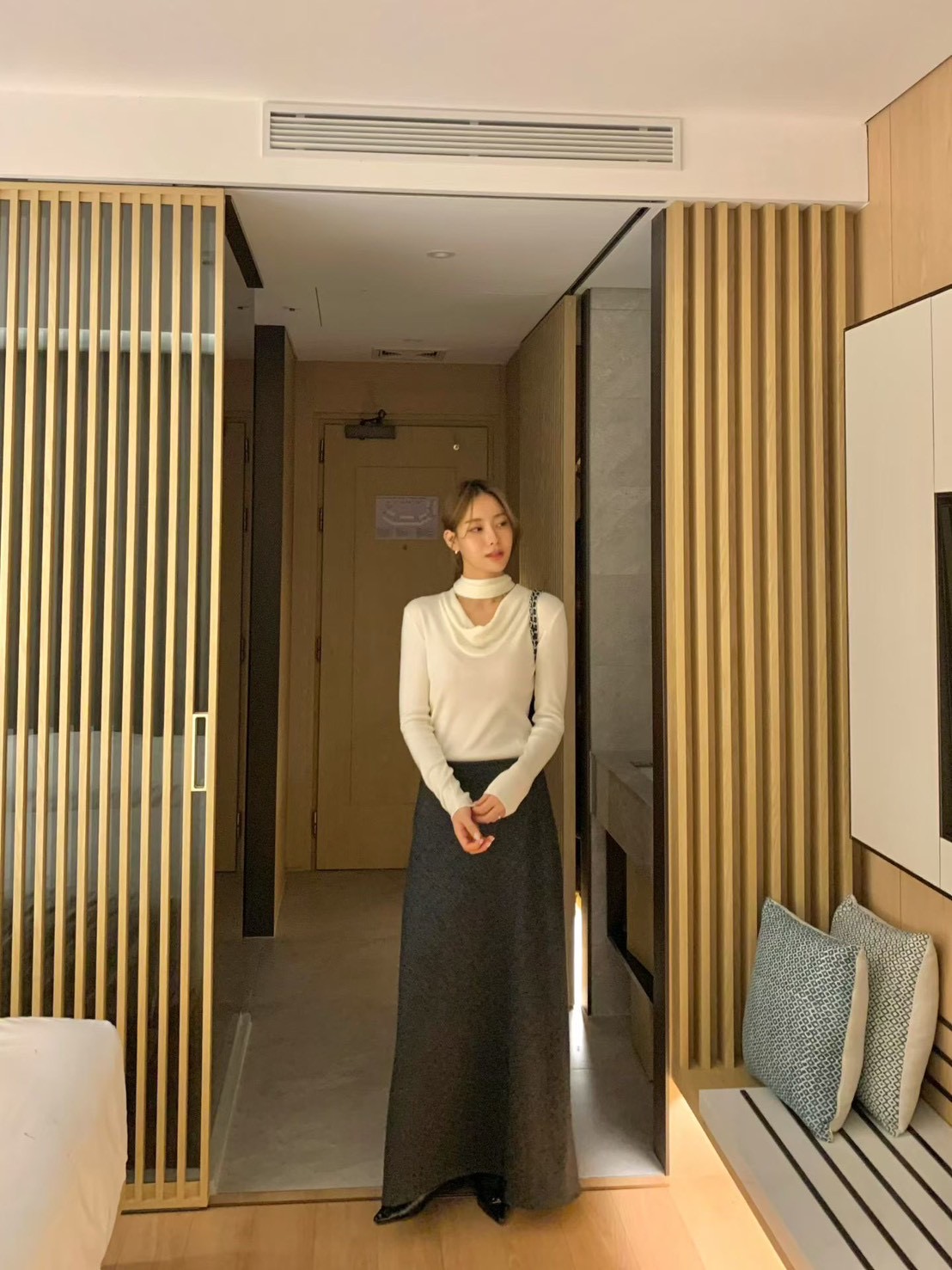 簡約大圓領上衣+長裙SET