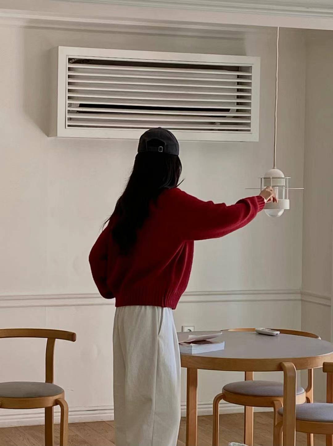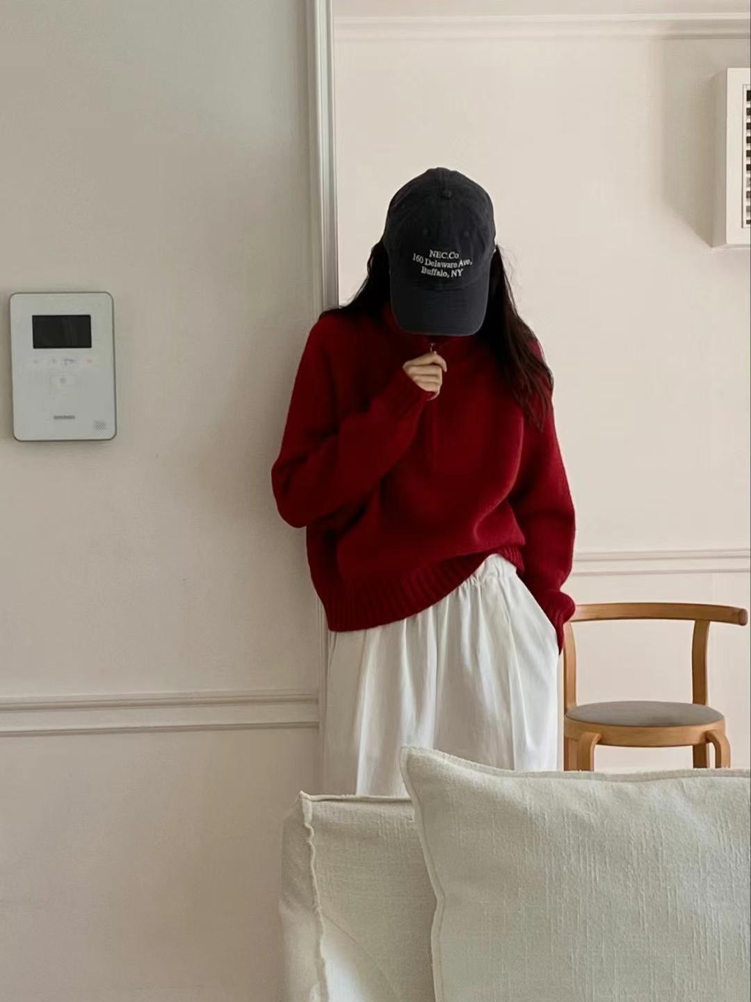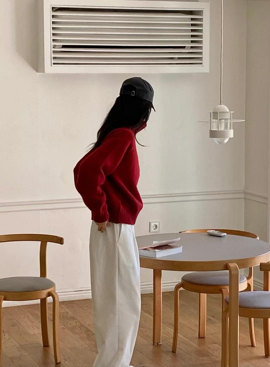 短毛圓領排釦針織衫+鬆緊A字短裙SET