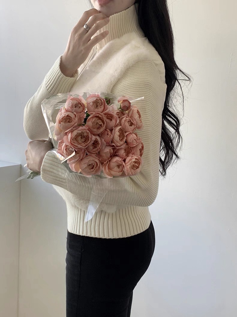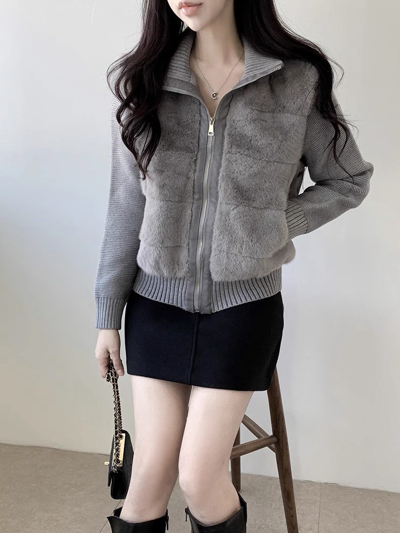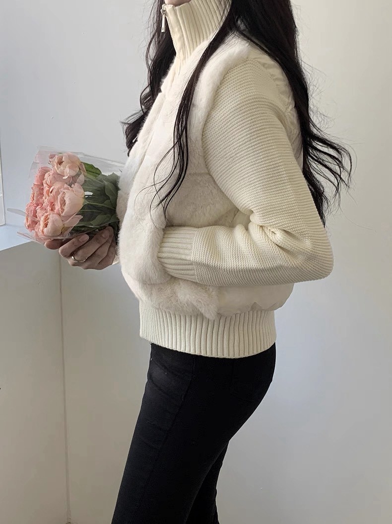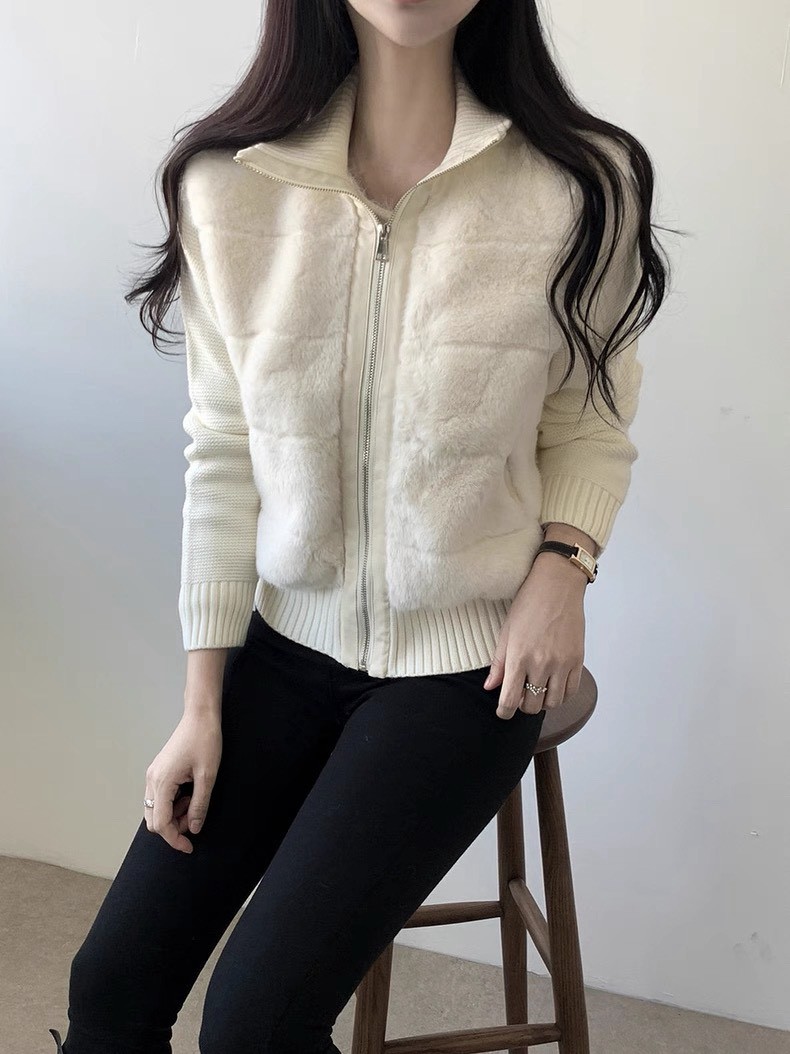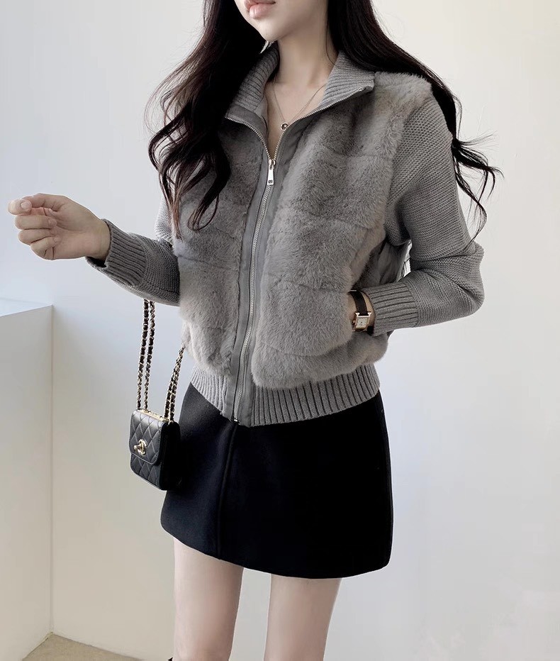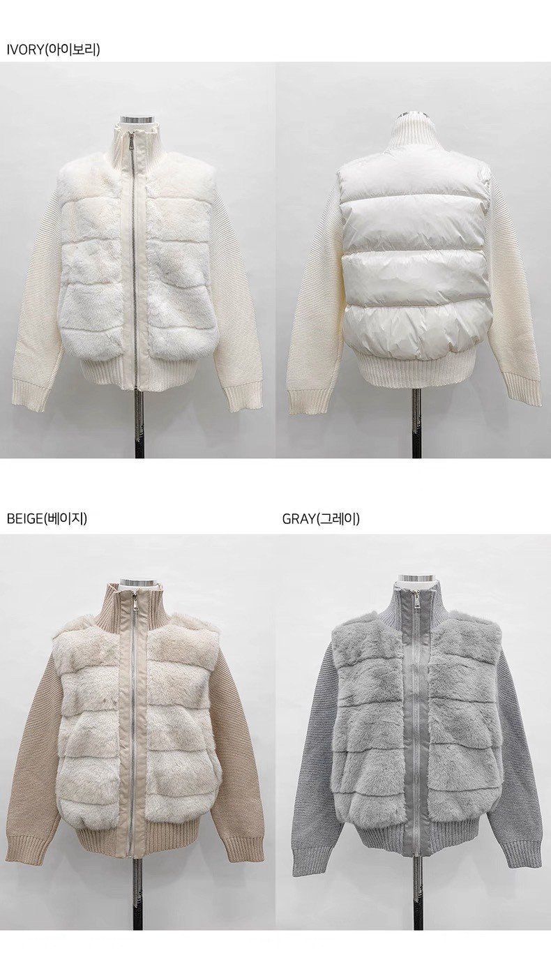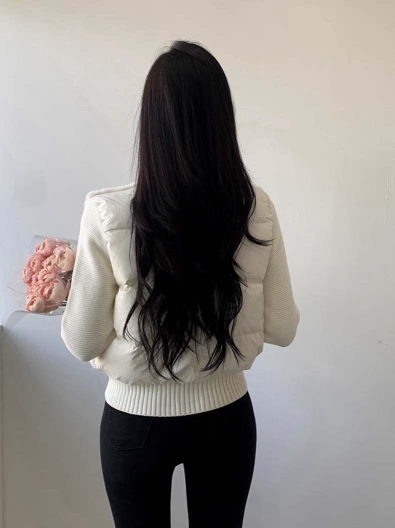 針織手袖拼接毛毛鴨絨外套(鴨絨60%)