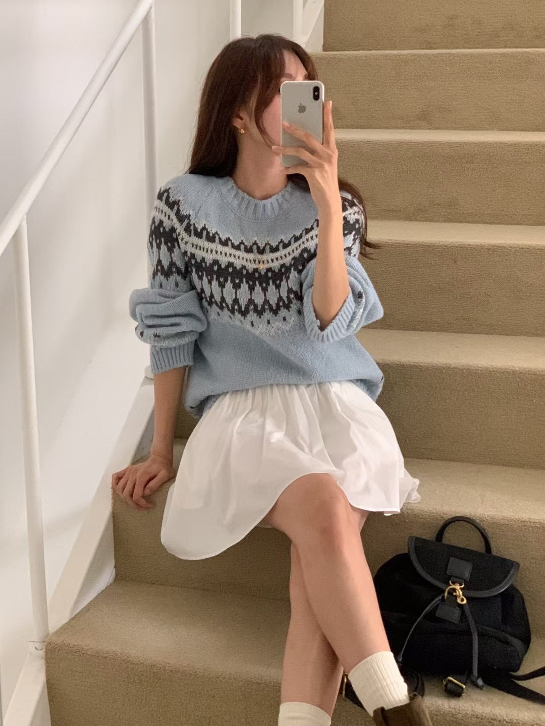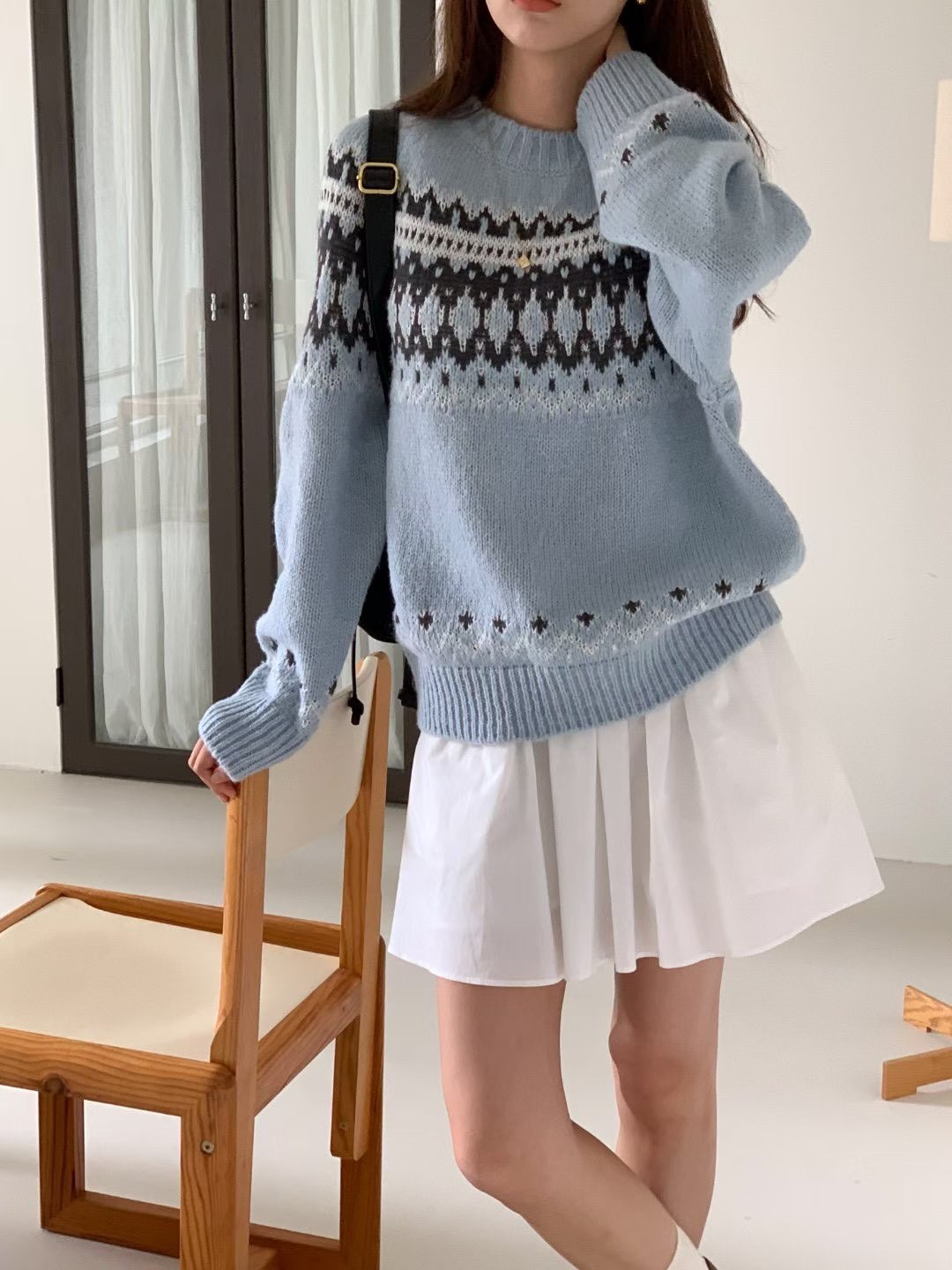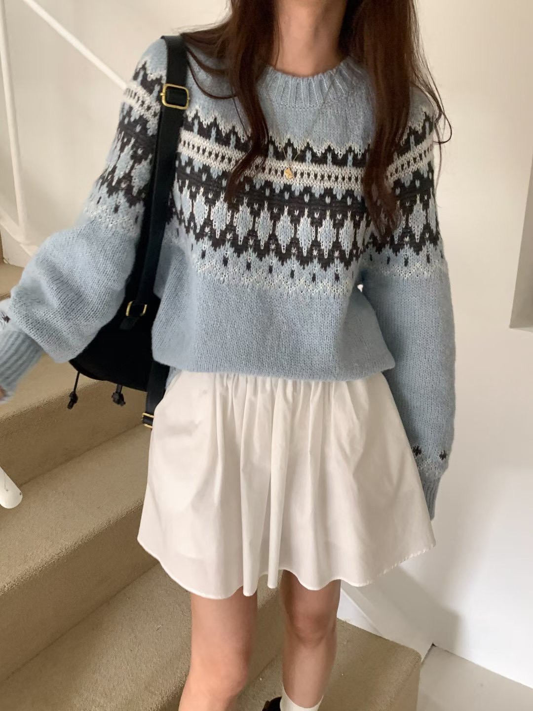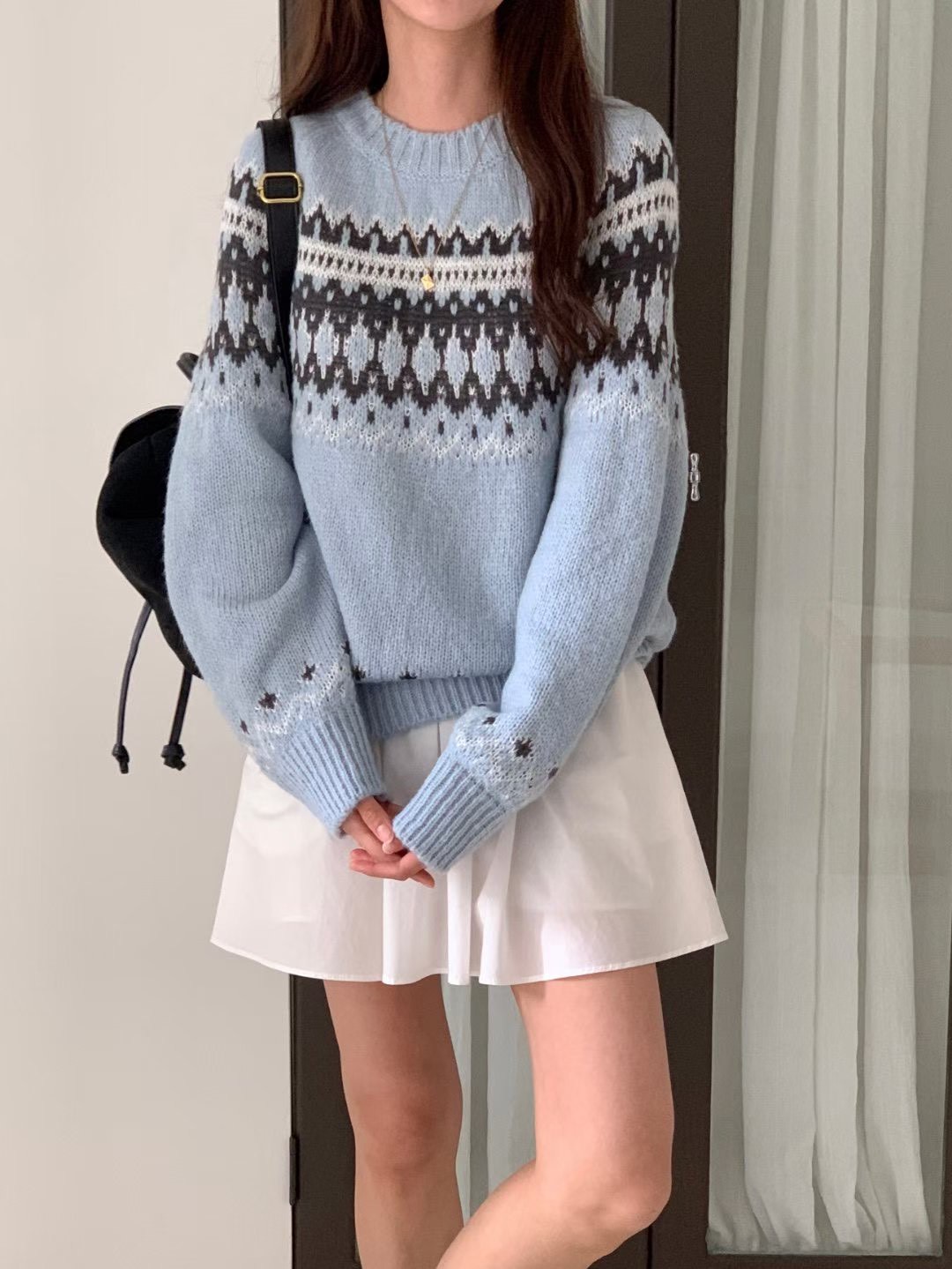 雪花排扣針織衫+鬆緊針織短裙SET