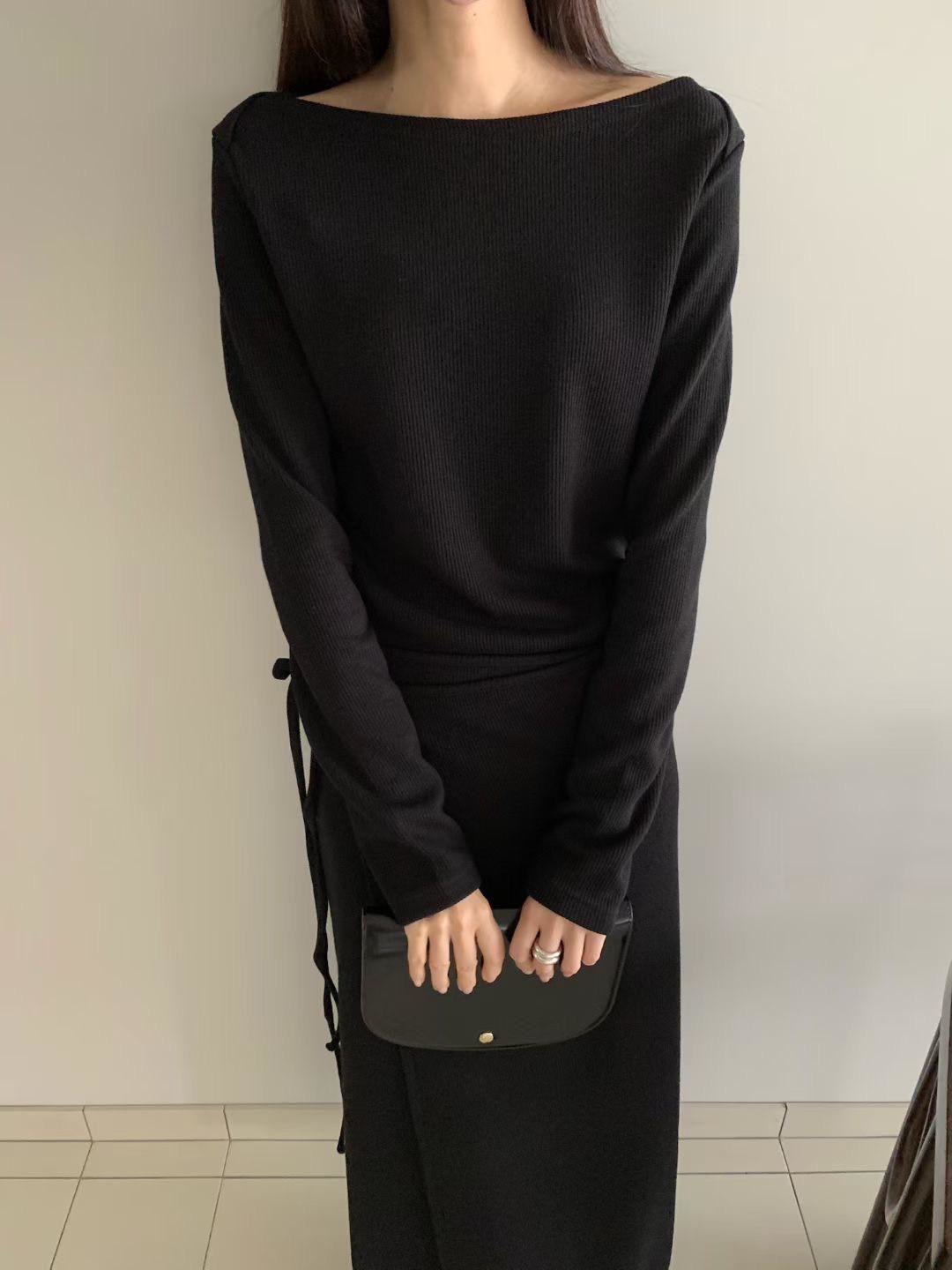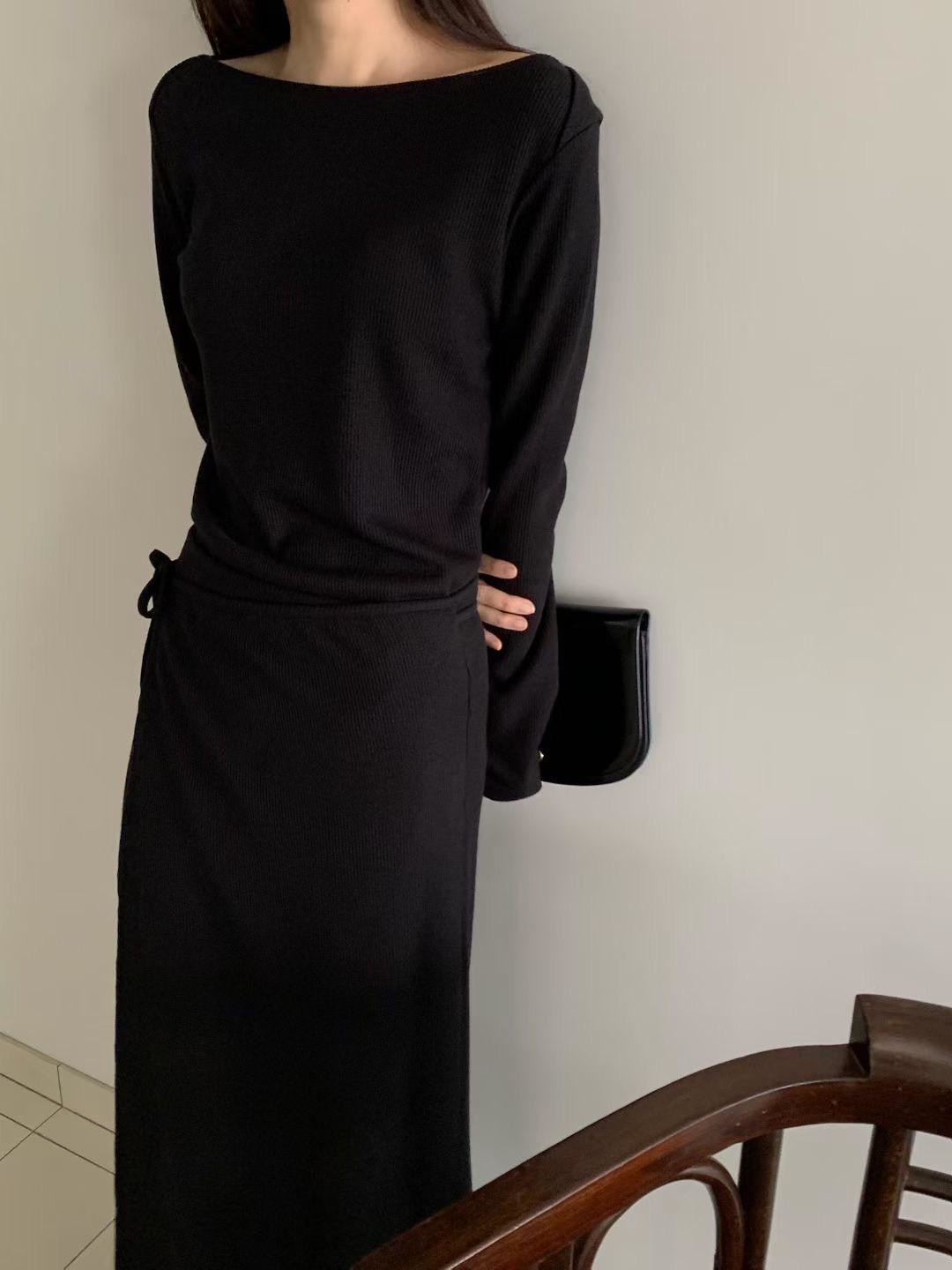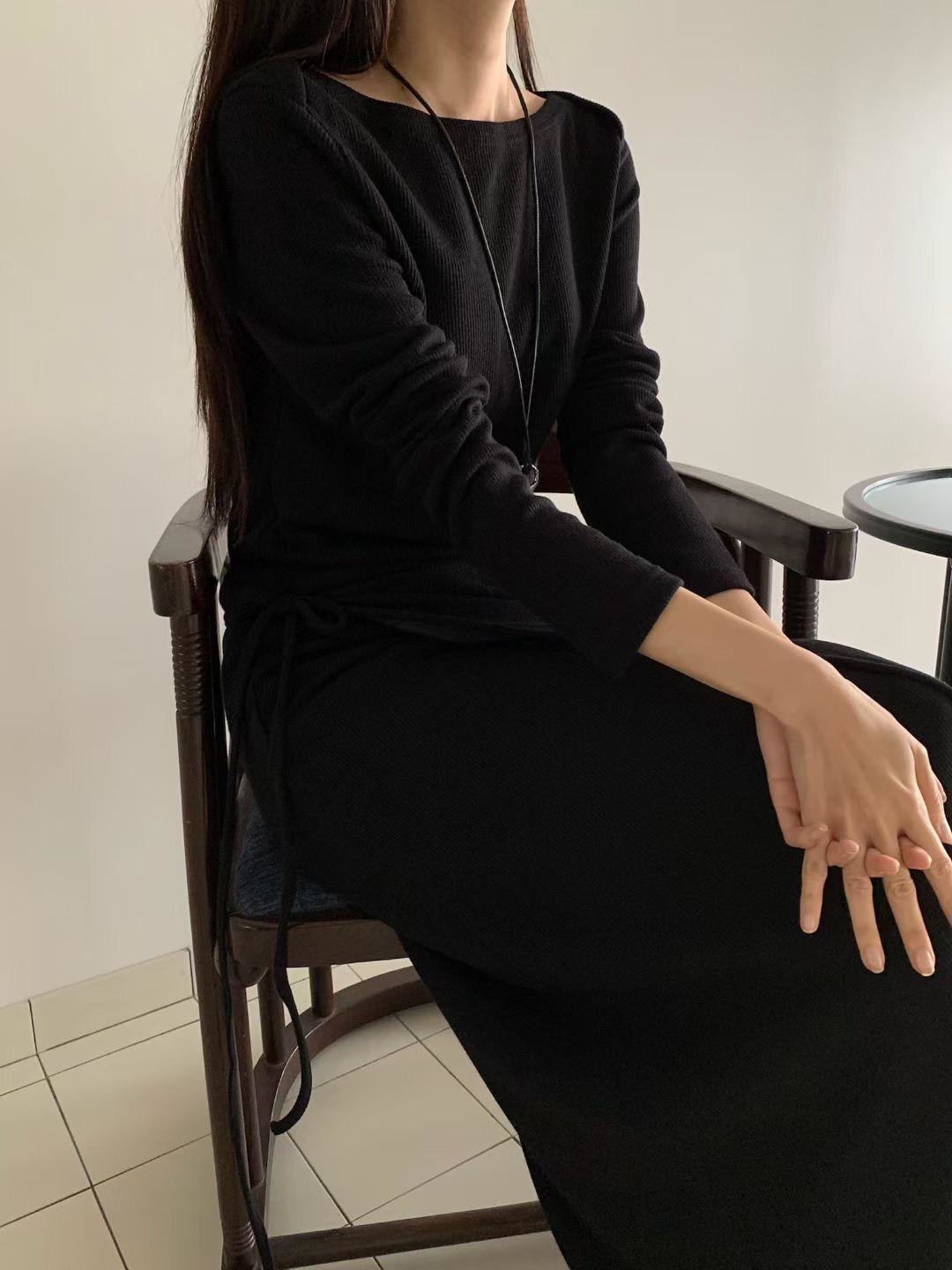 側綁結薄款T+抽繩鬆緊長裙SET(可拆買)
