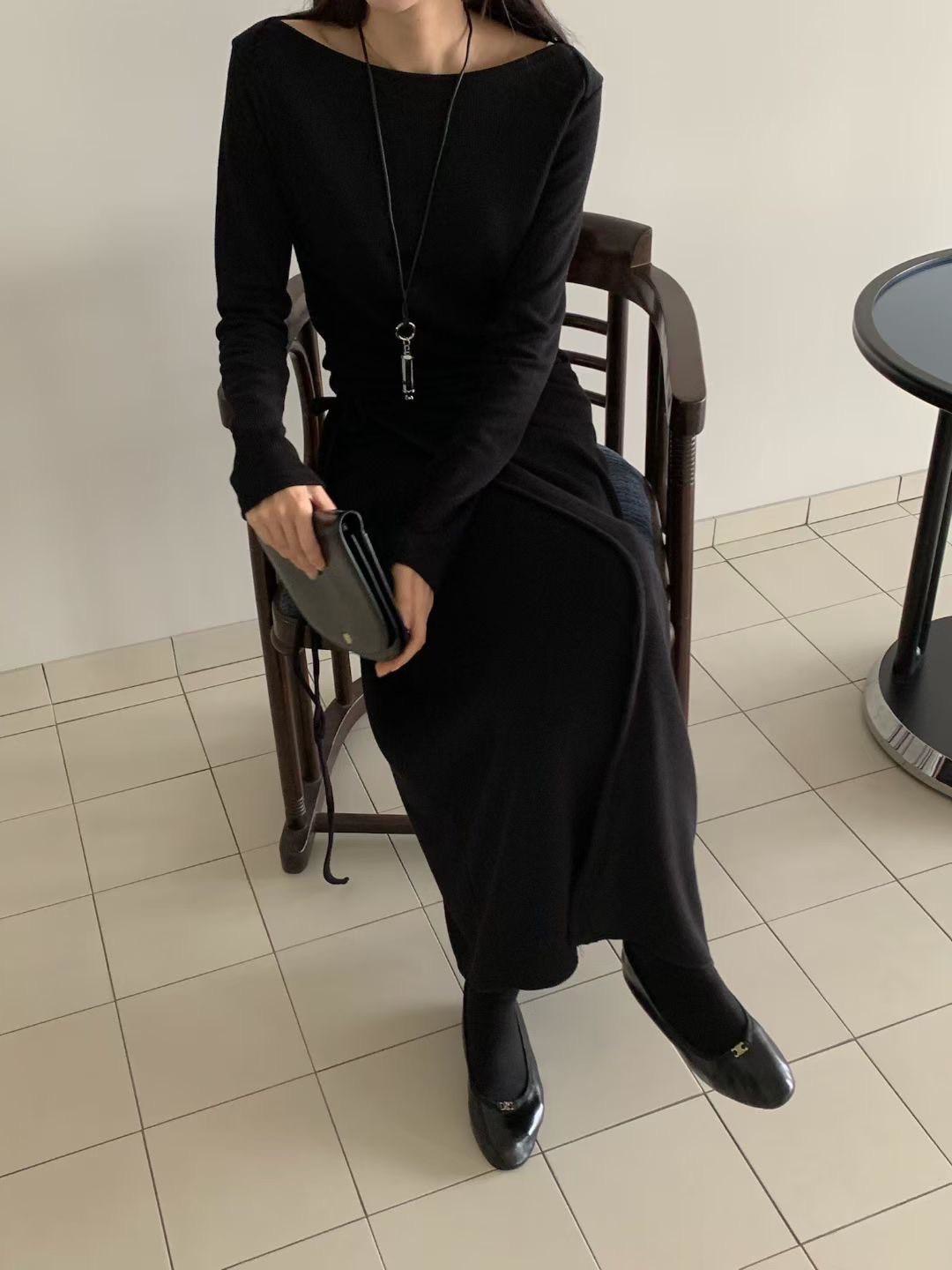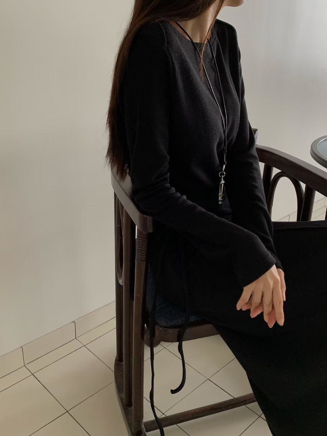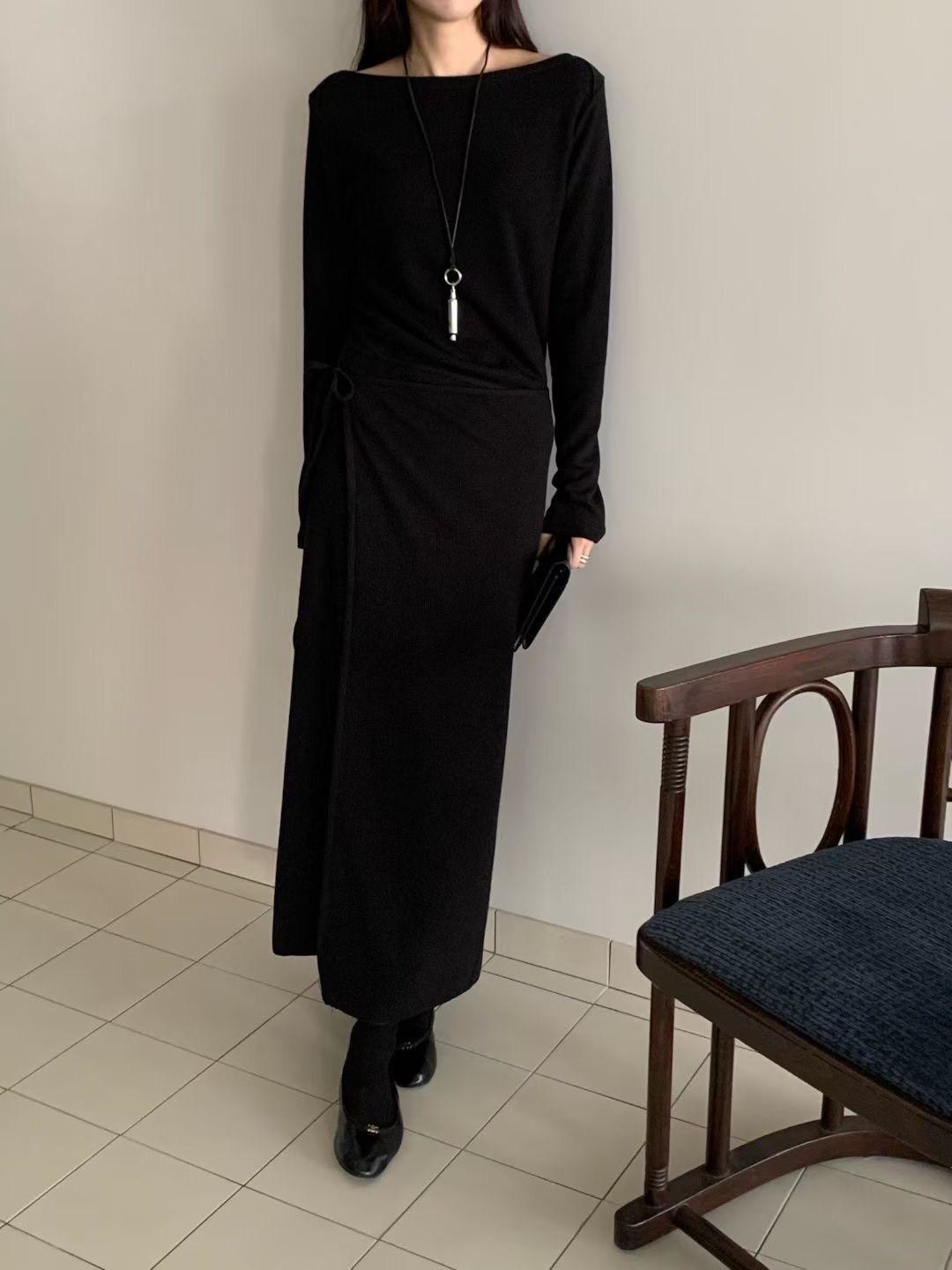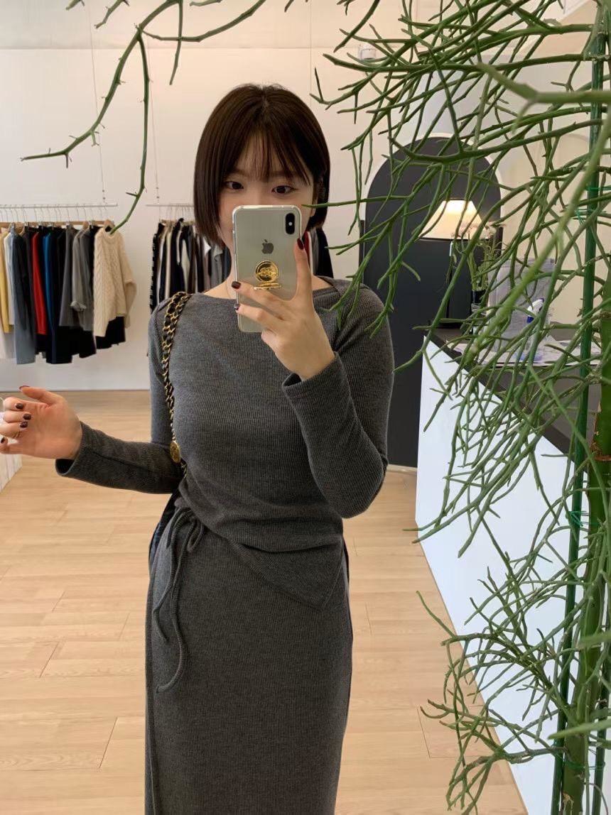 側綁結薄款T+抽繩鬆緊長裙SET(可拆買)