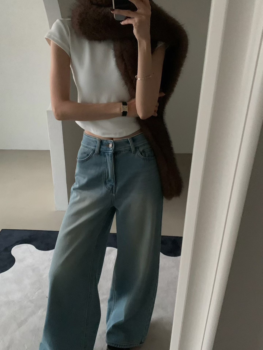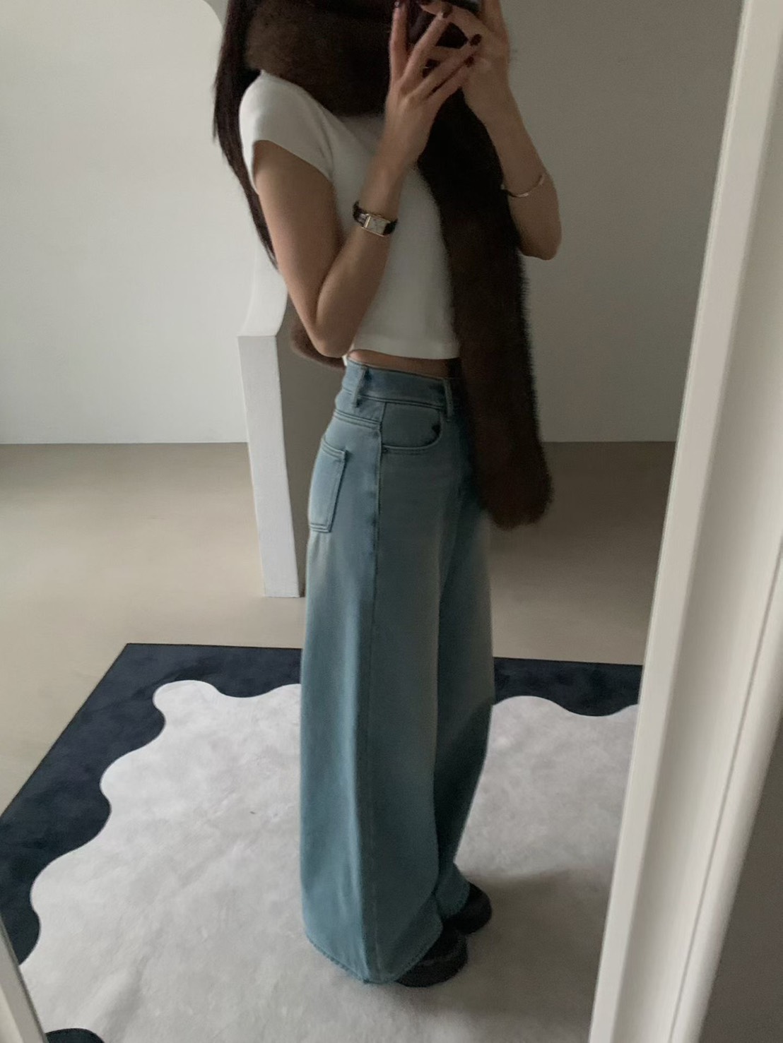 雙排扣高腰牛仔寬褲