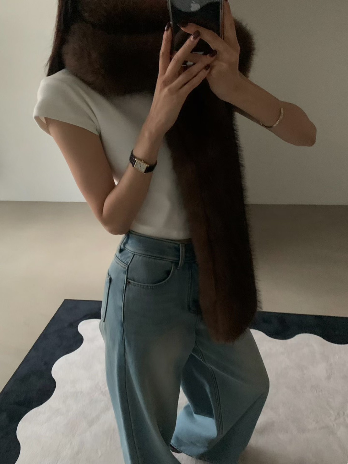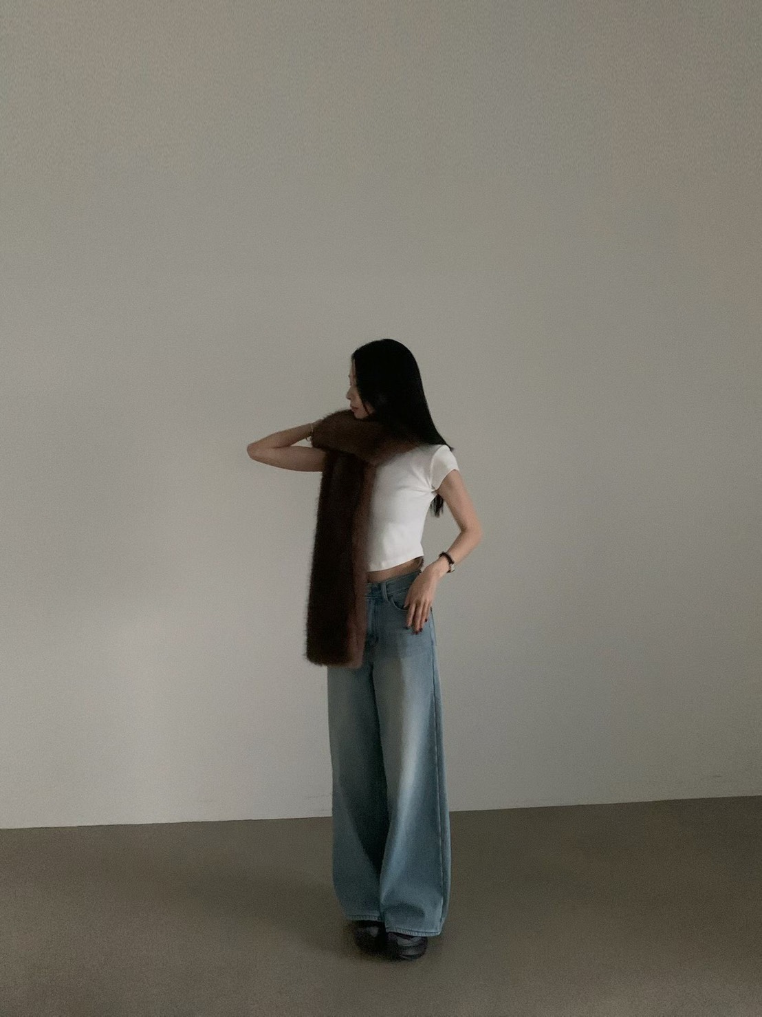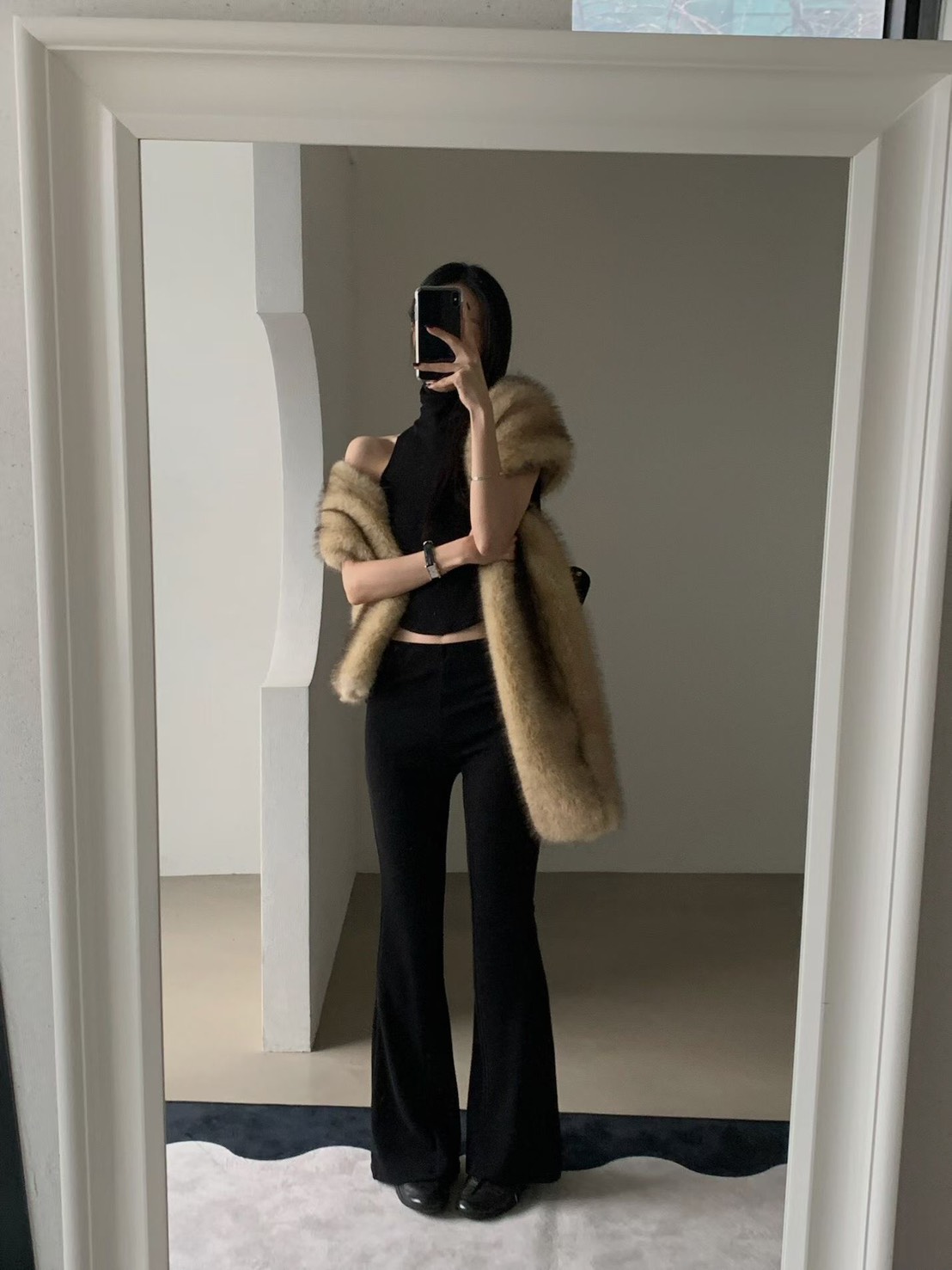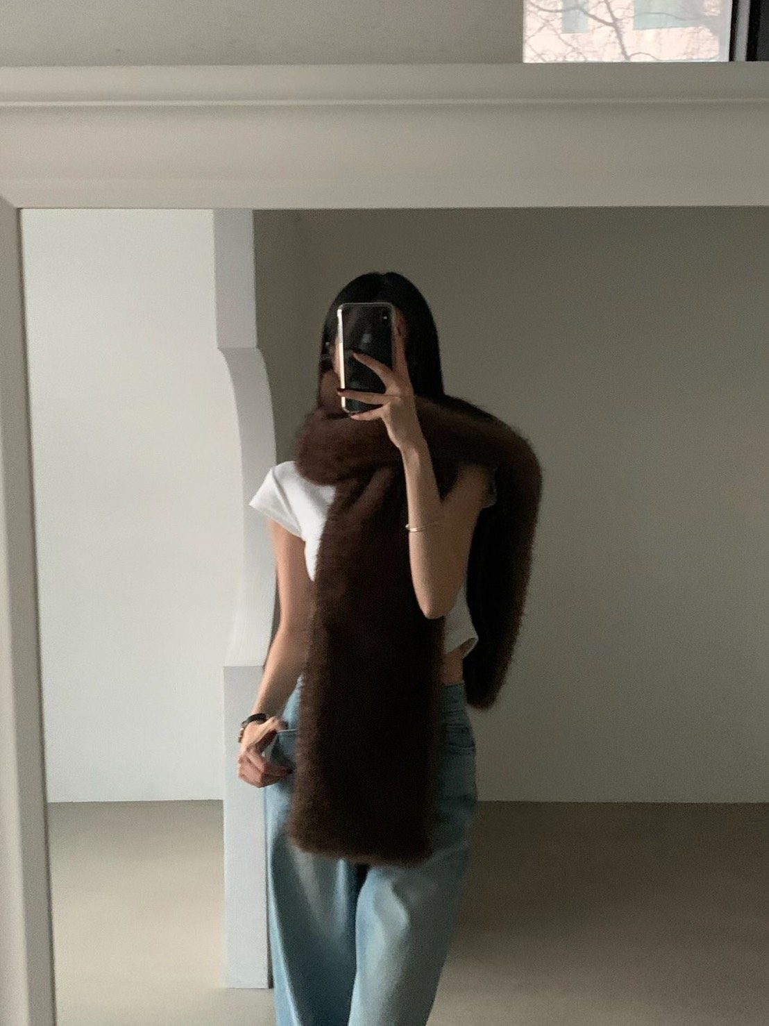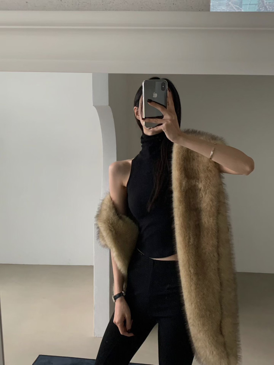 輕奢感狐狸毛寬版圍巾