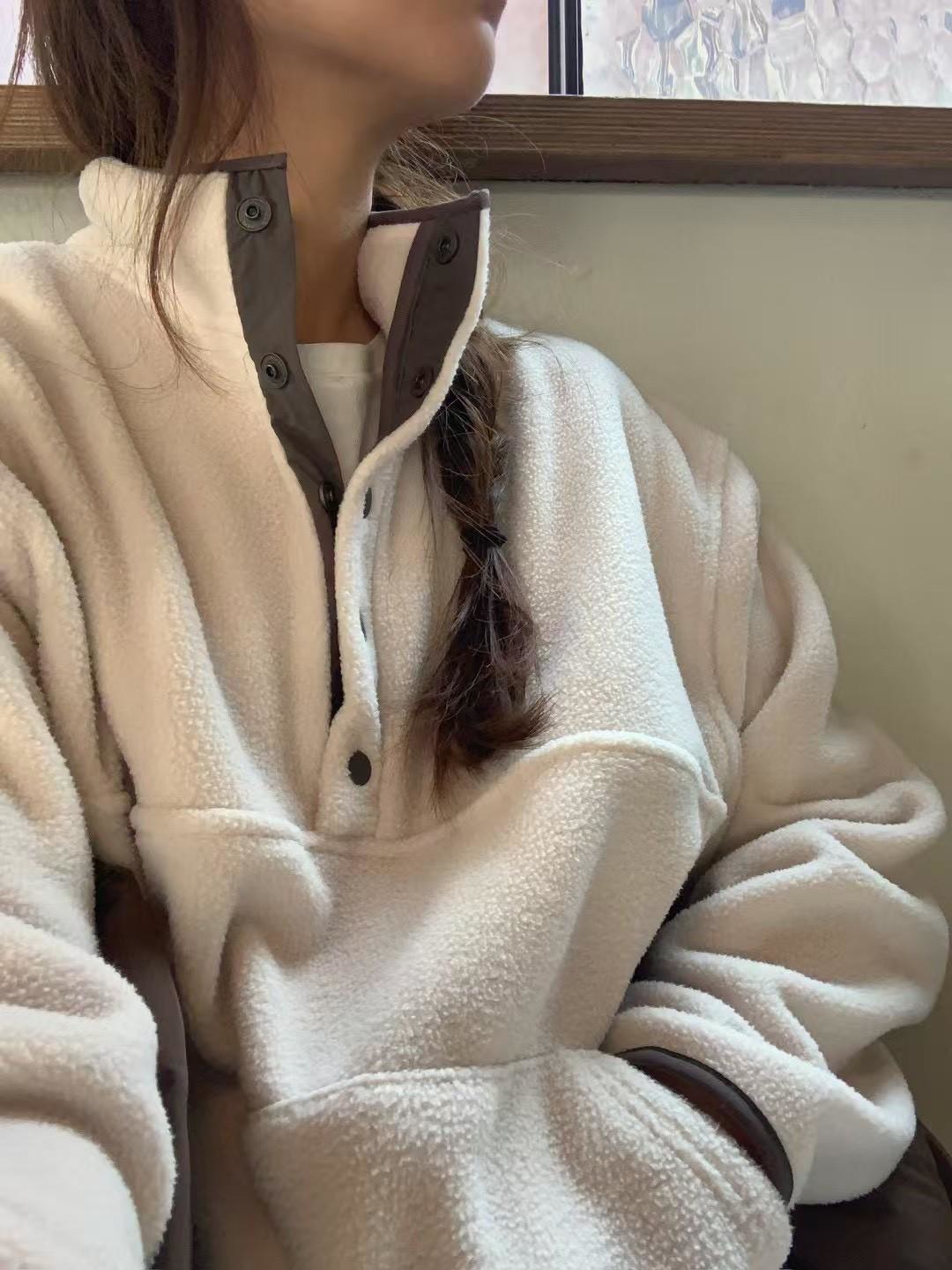 針織手袖拼接毛毛鴨絨外套(鴨絨60%)