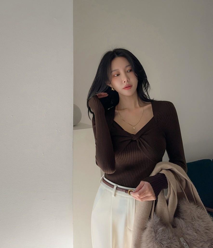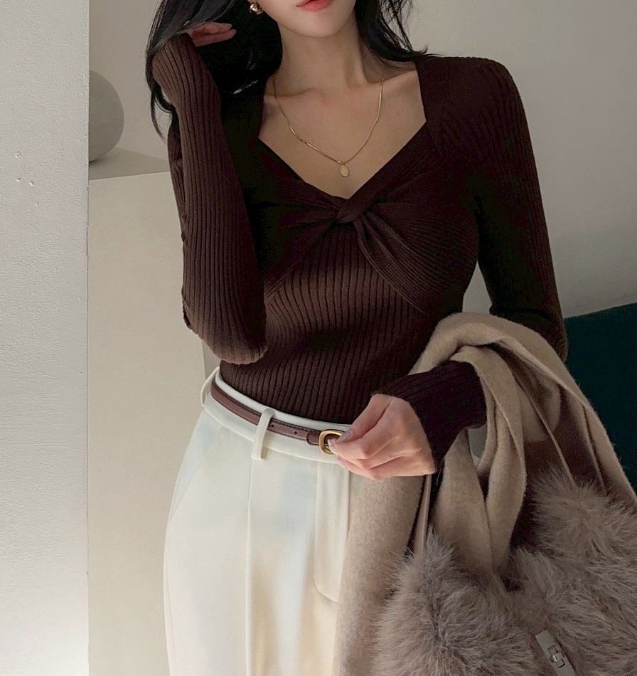 V領滾邊針織上衣