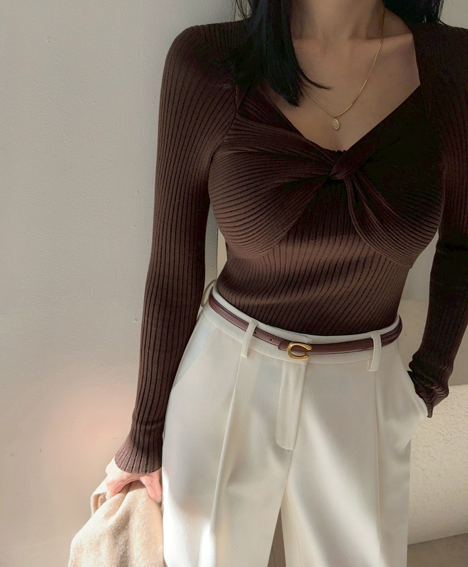 扭結造型坑條上衣