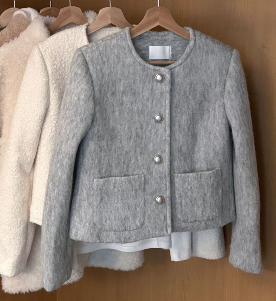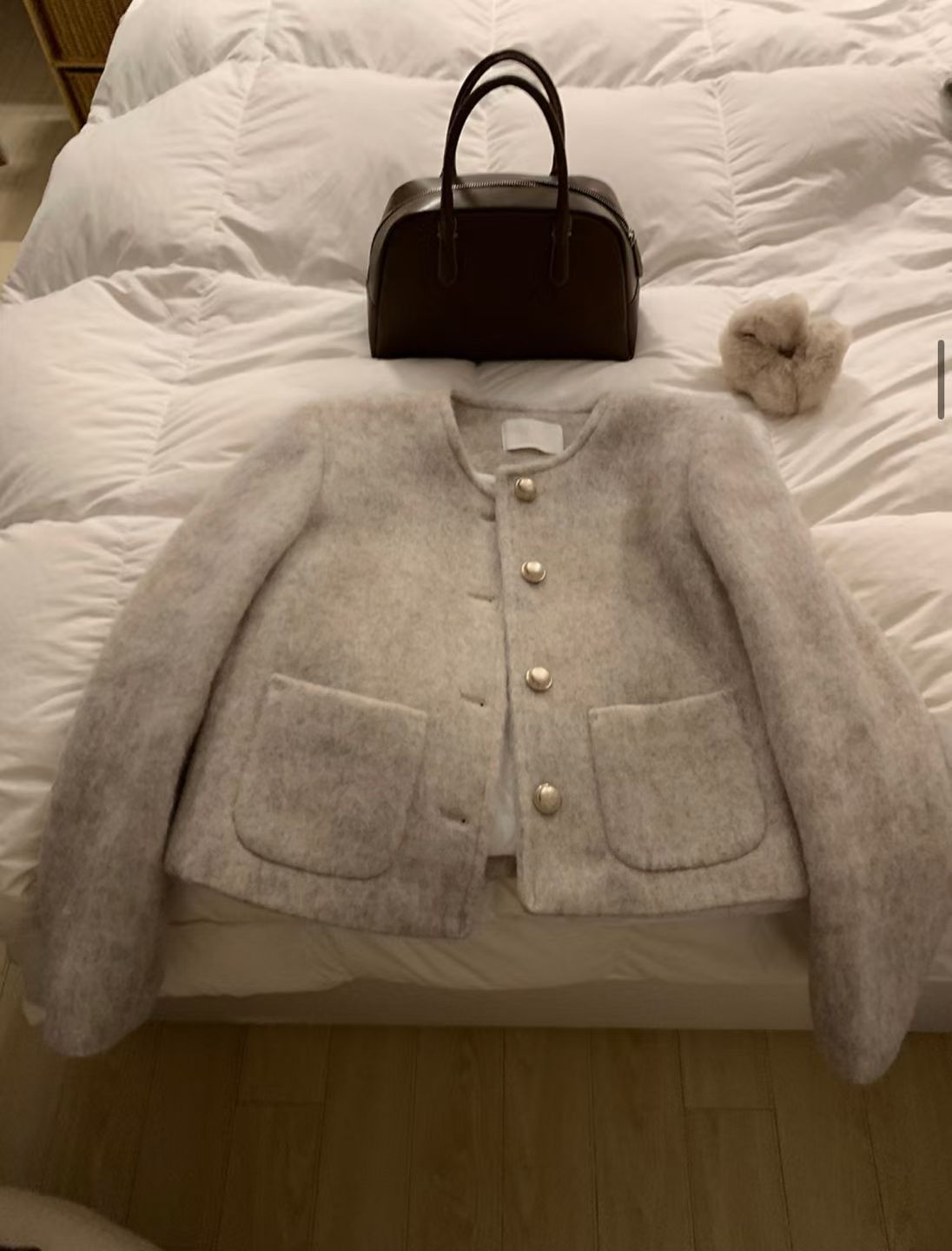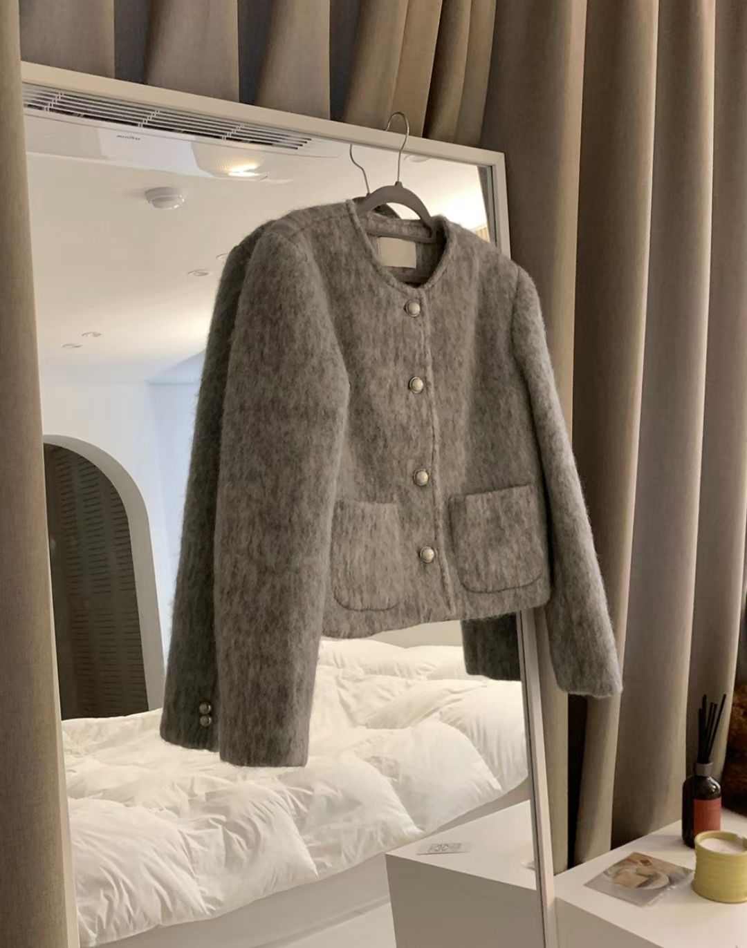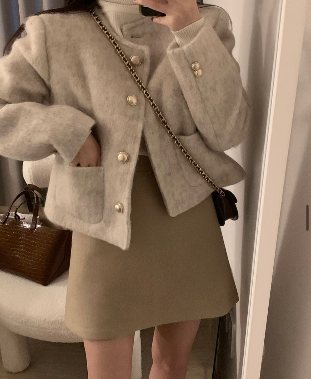 拼接皮革口袋磨毛外套+壓摺短褲裙SET(可拆買)