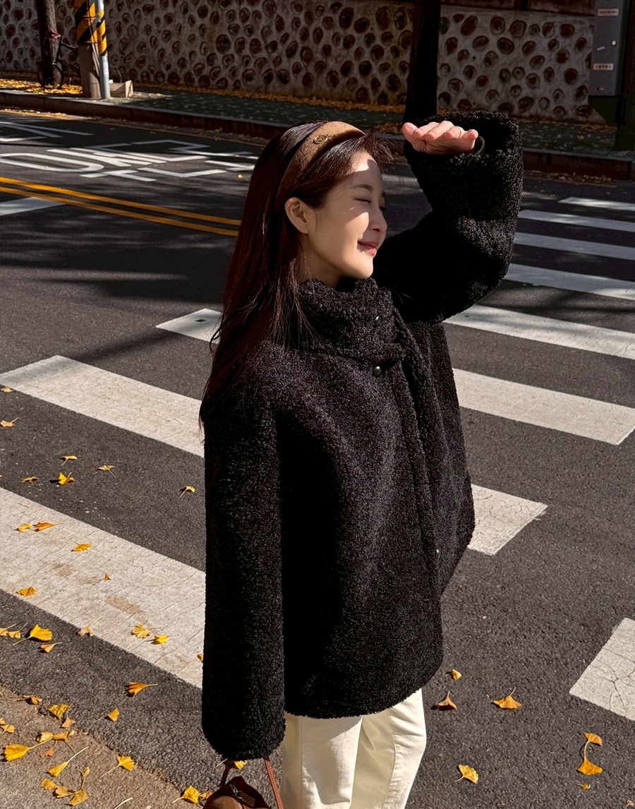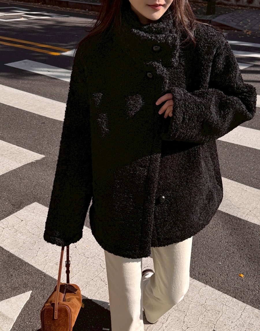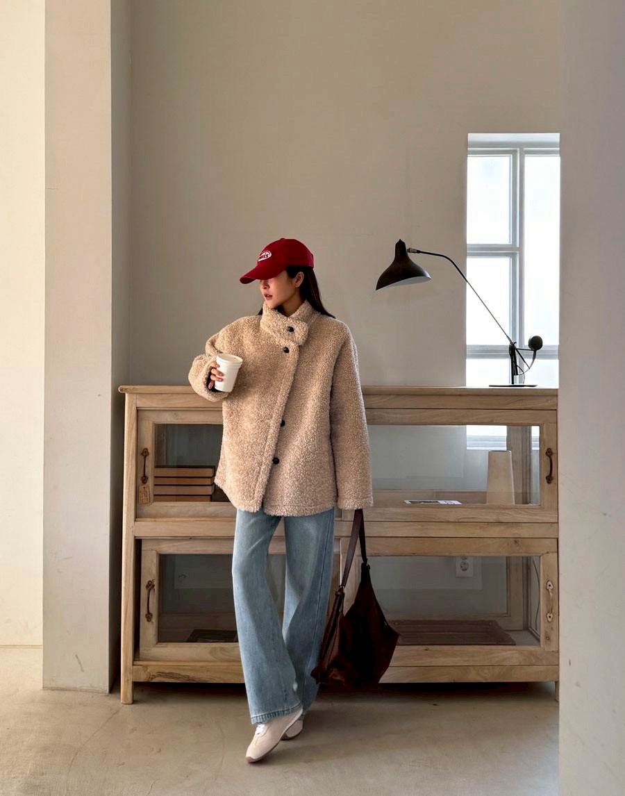 後口袋磨毛滾邊內刷薄毛直筒牛仔褲