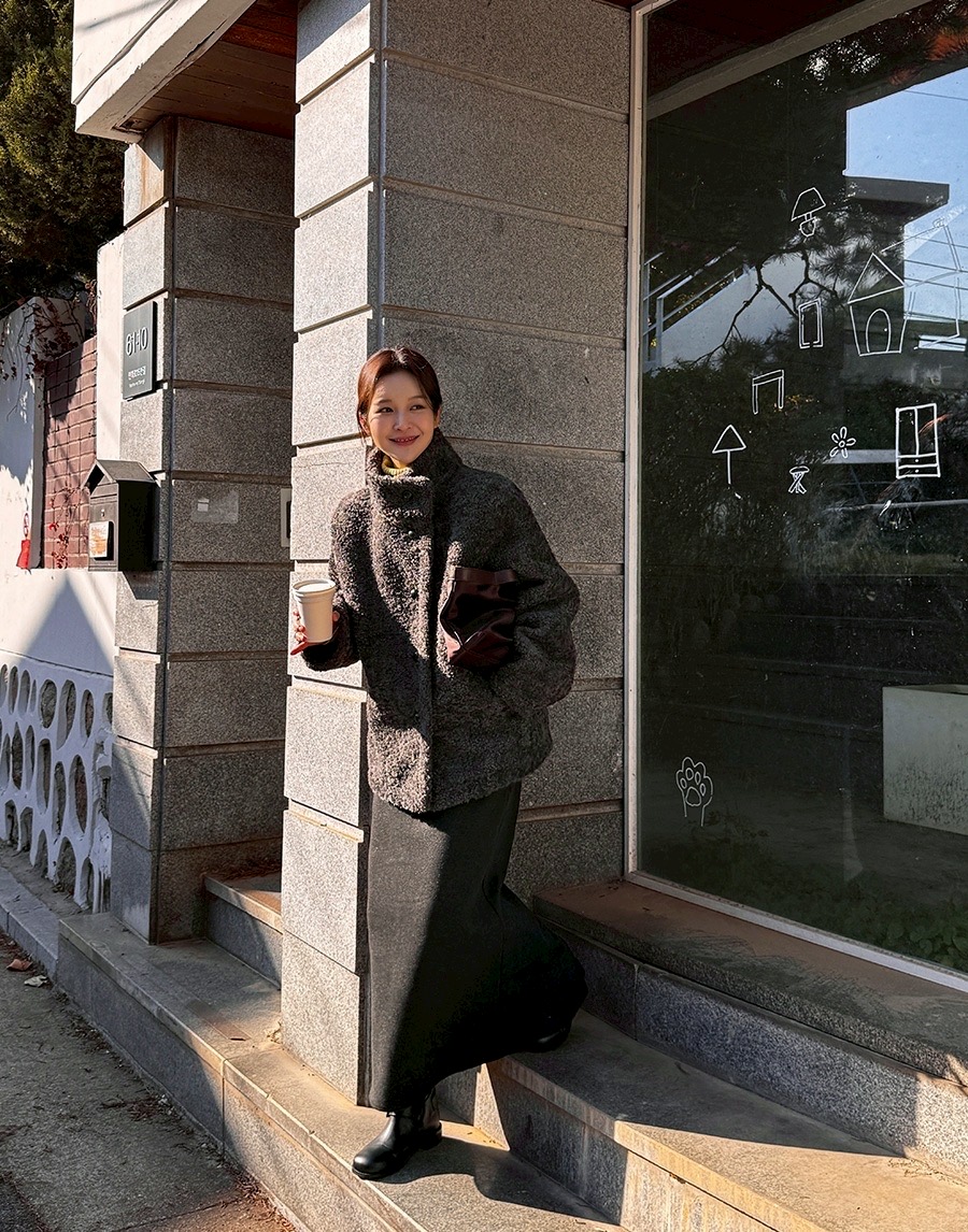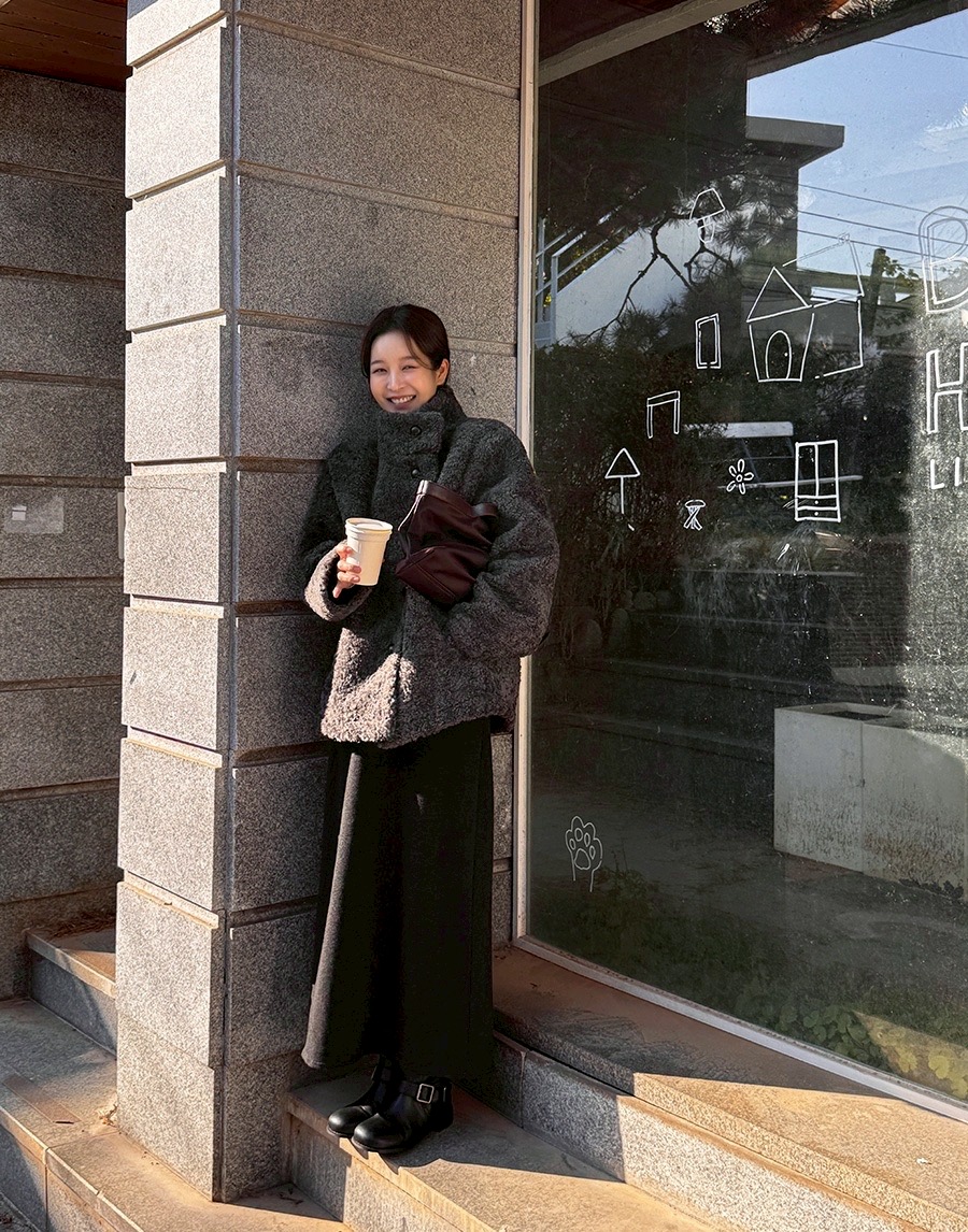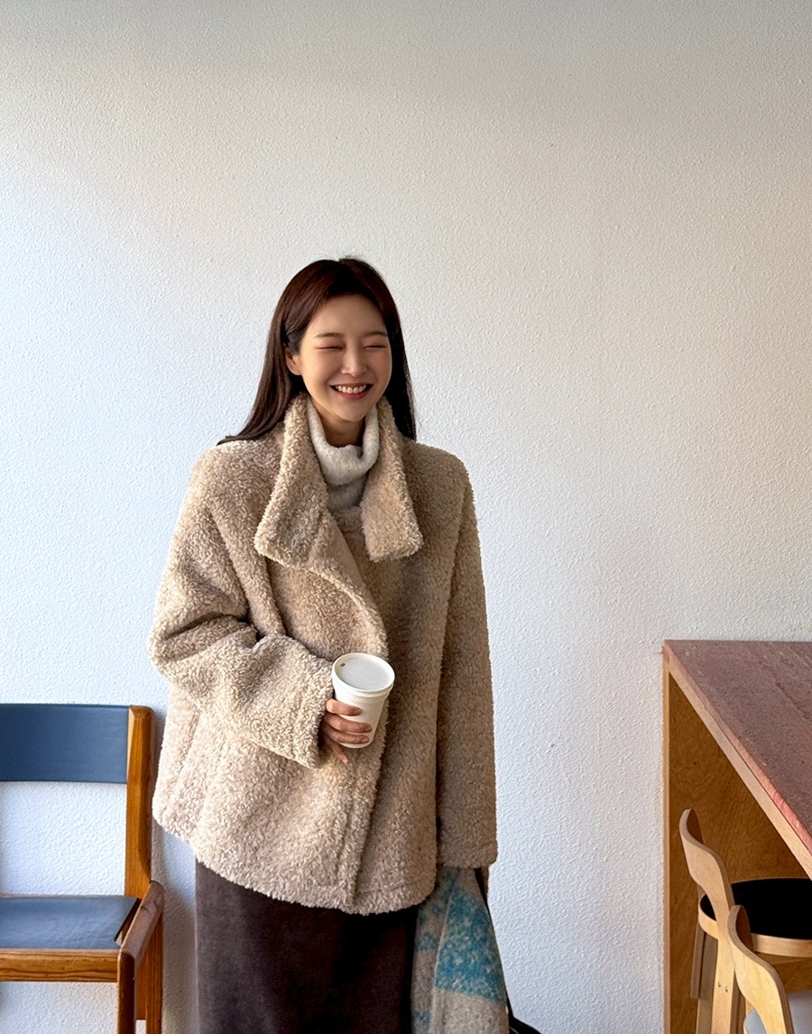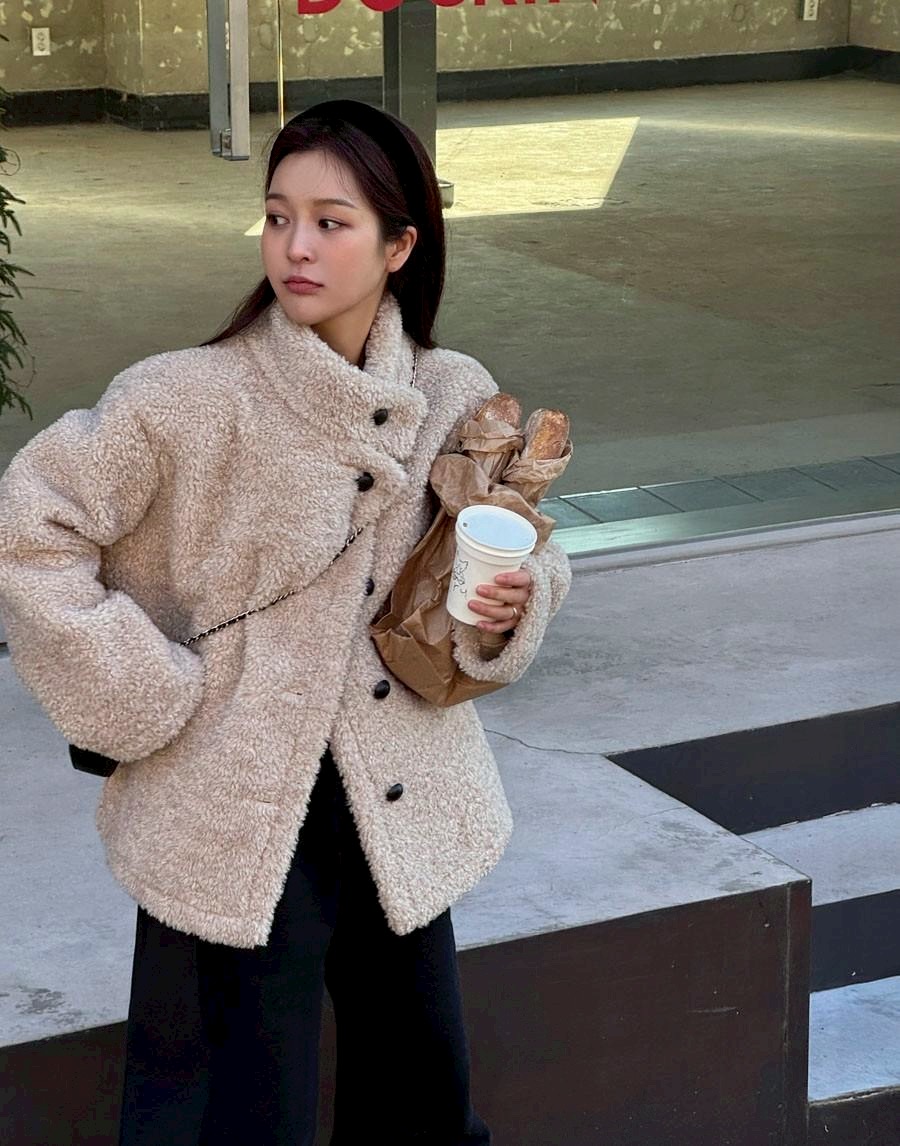後口袋磨毛滾邊內刷薄毛直筒牛仔褲