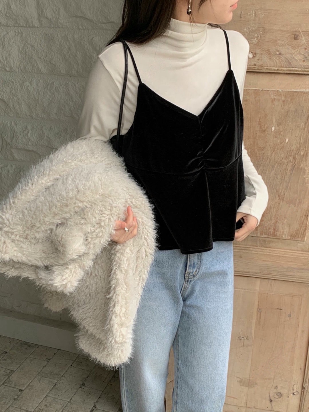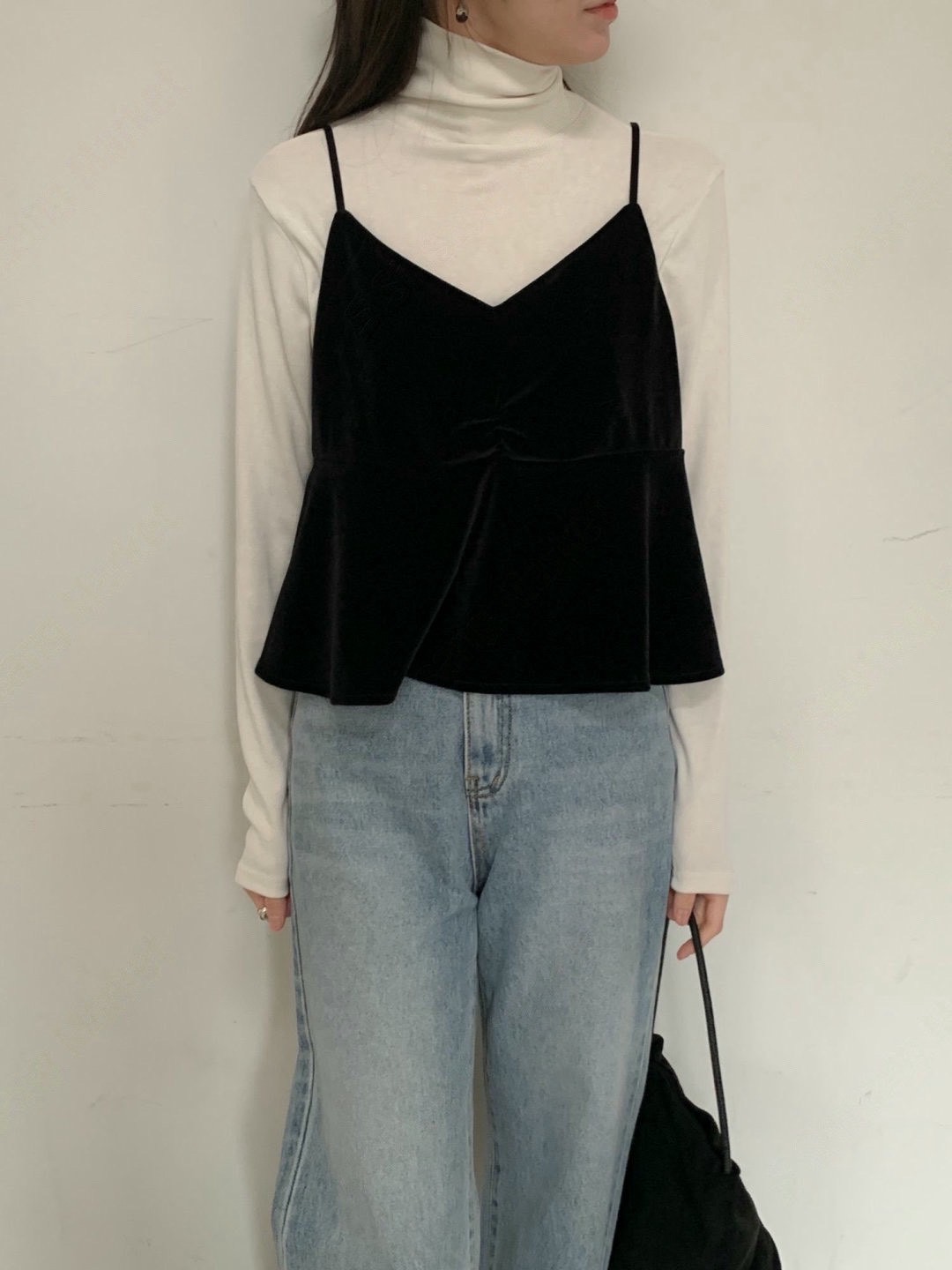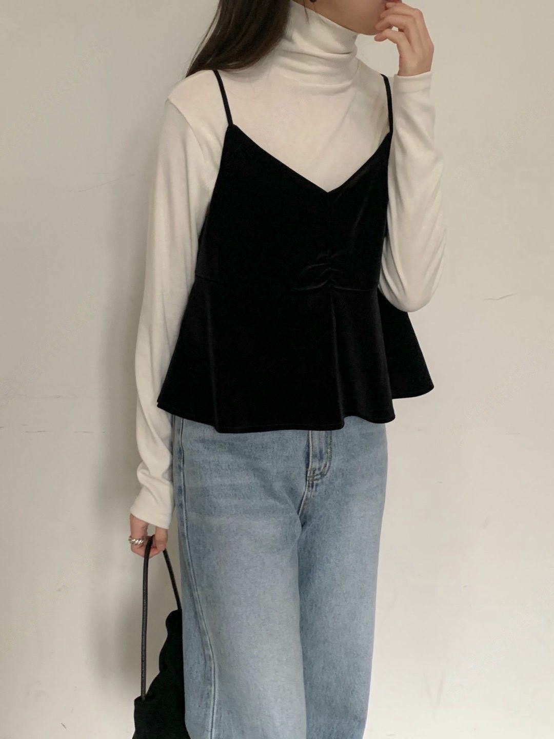 細肩荷葉下襬絲絨背心