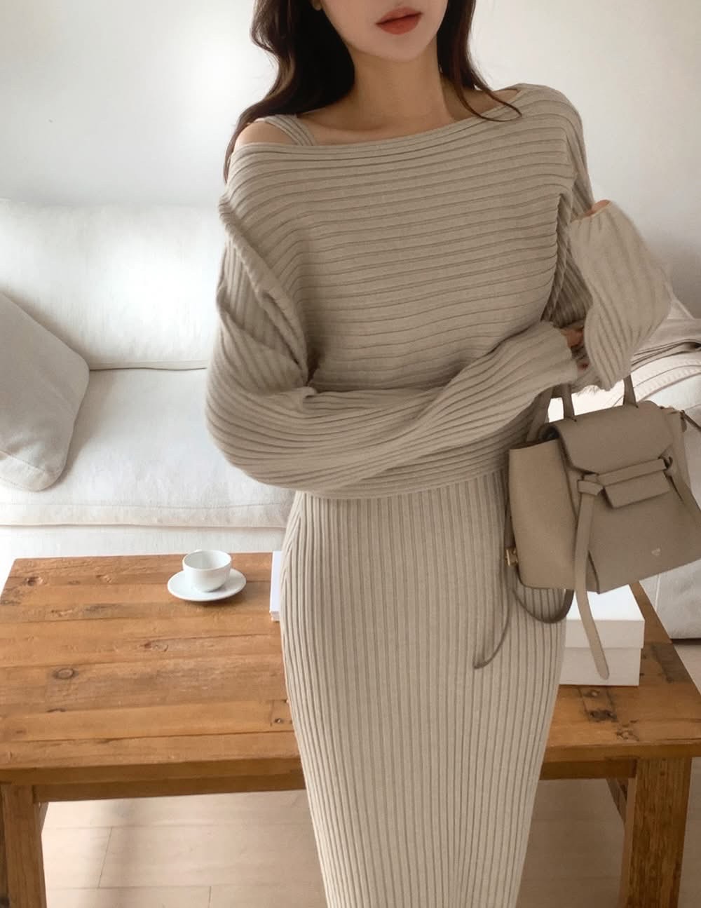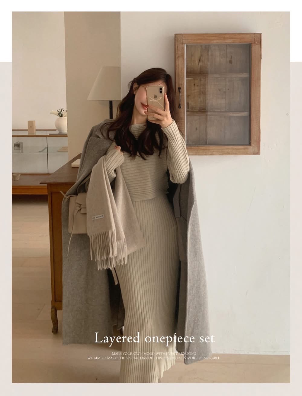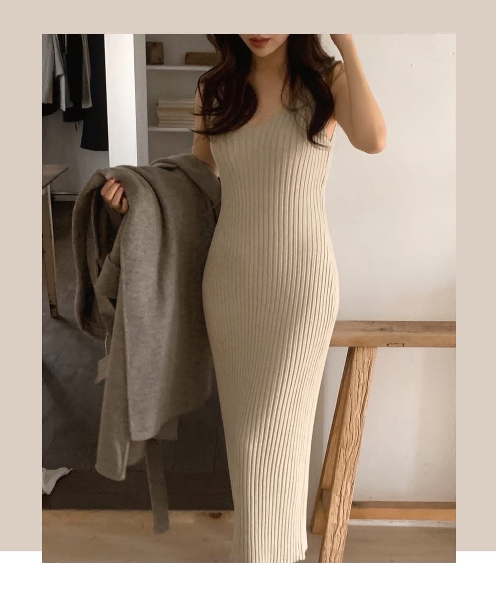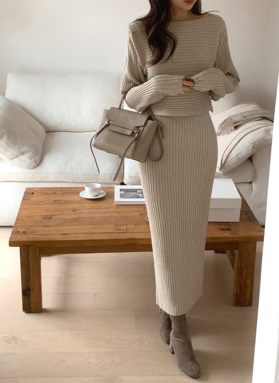 短板針織衫+坑紋針織背心長洋