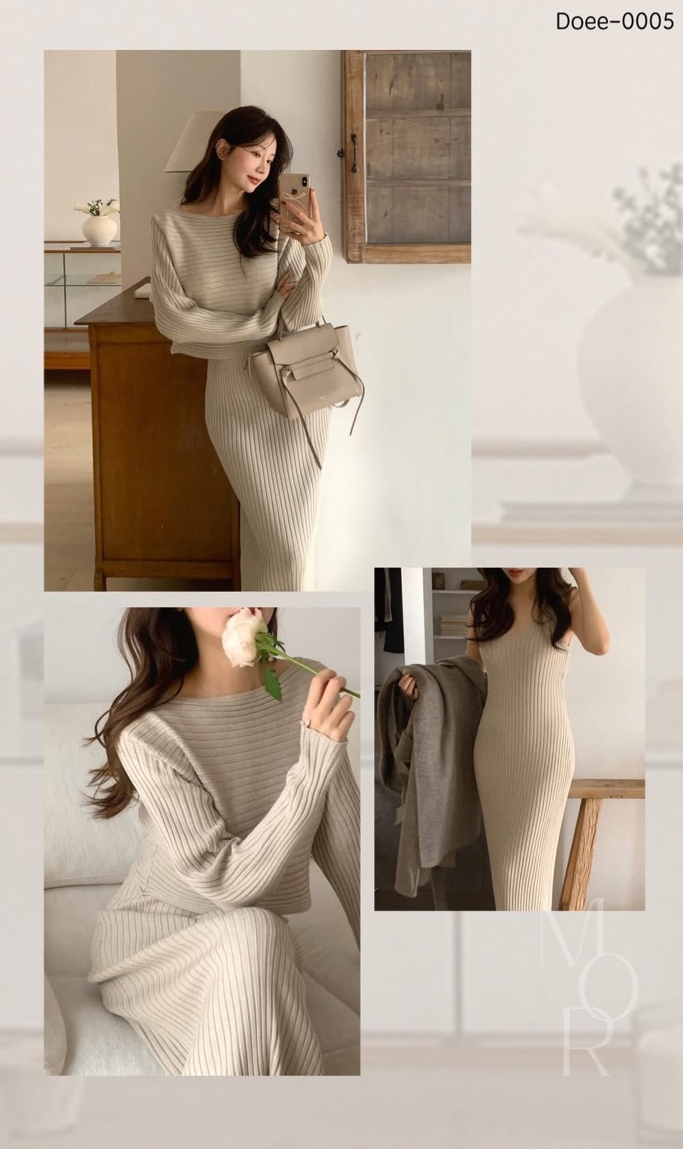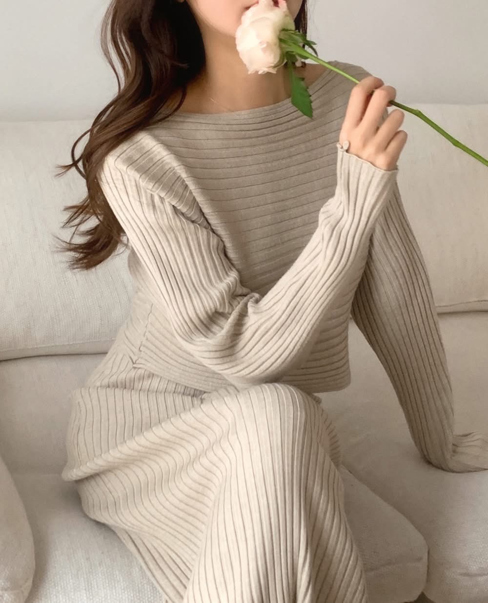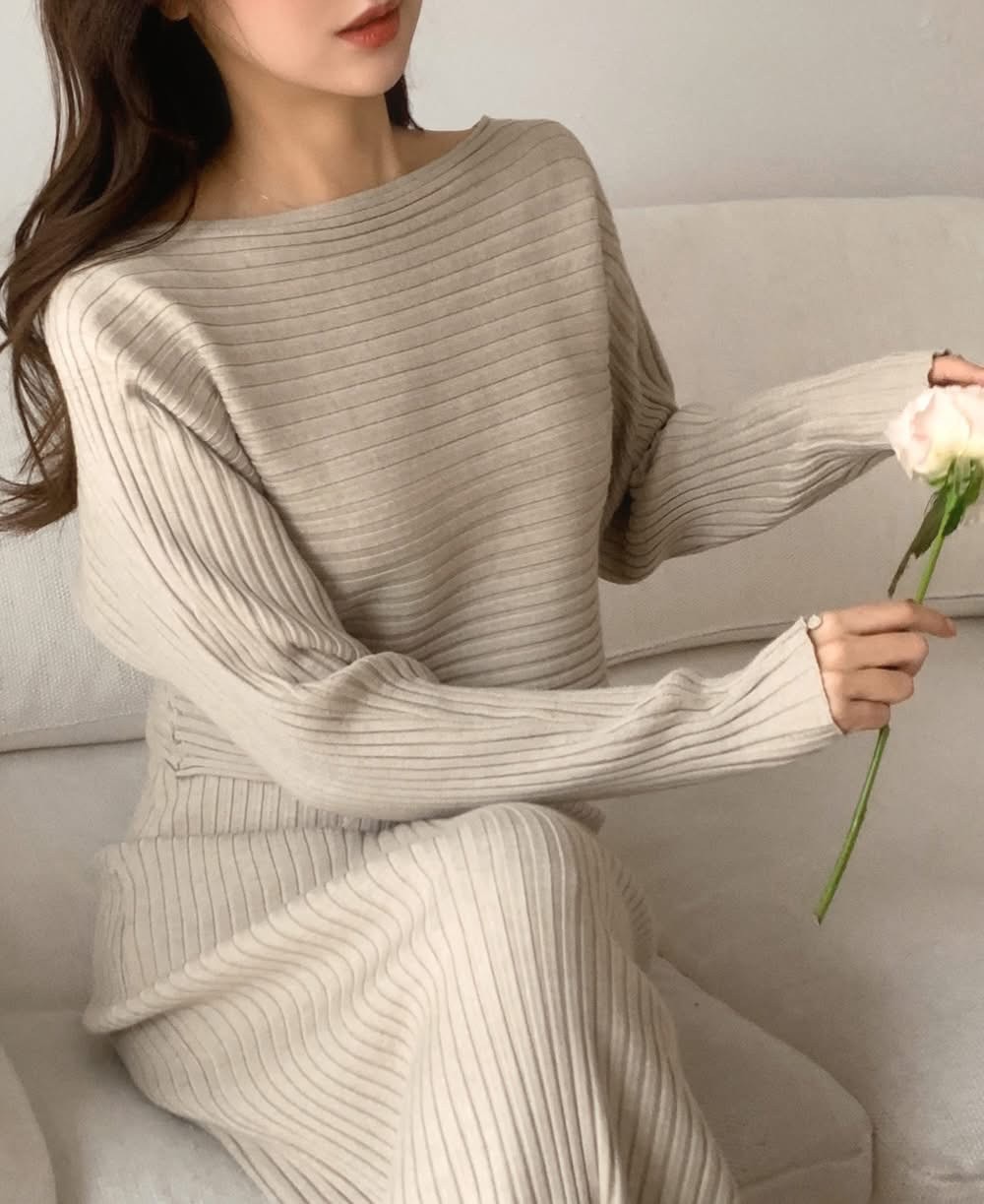 短板針織衫+坑紋針織背心長洋