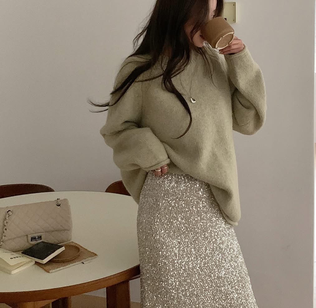 圓領針織上衣+連帽圍巾+長褲三件套SET