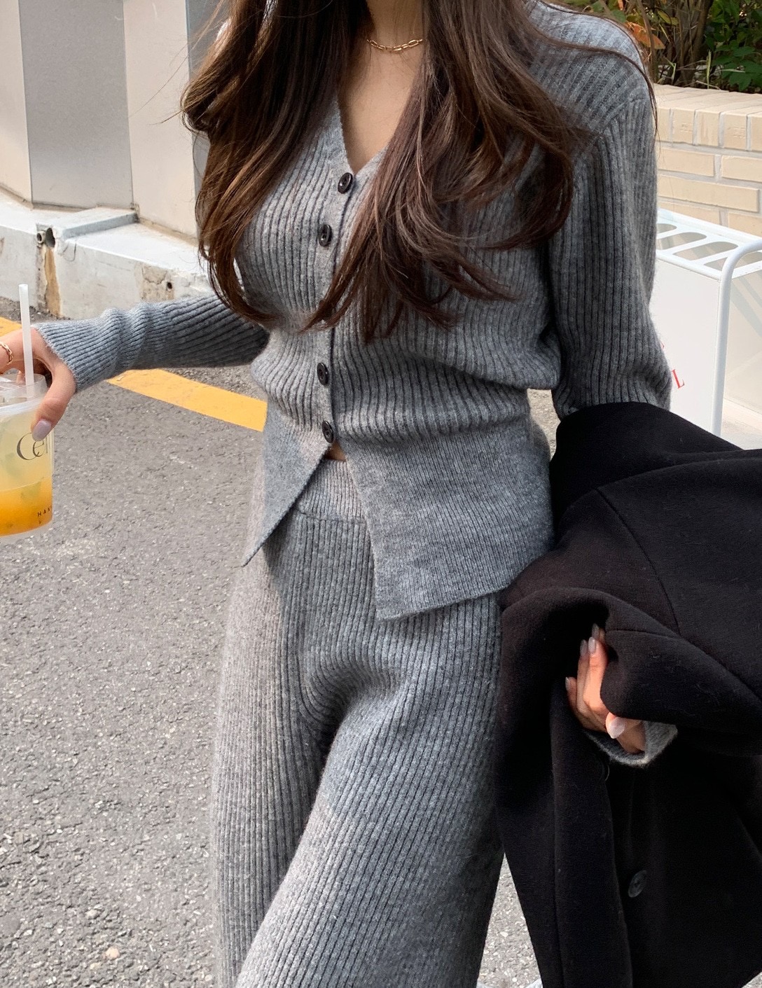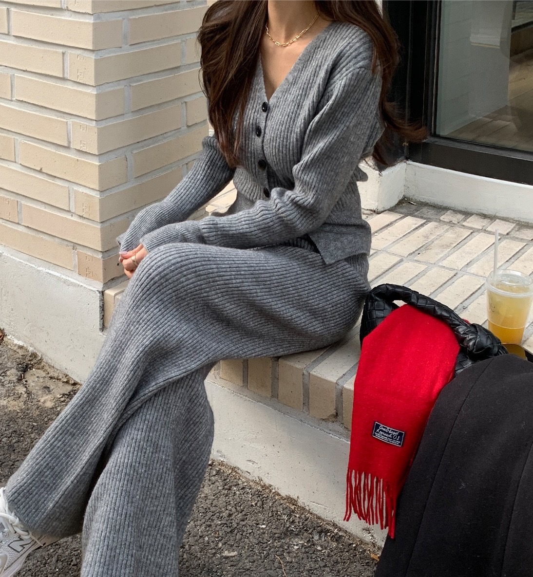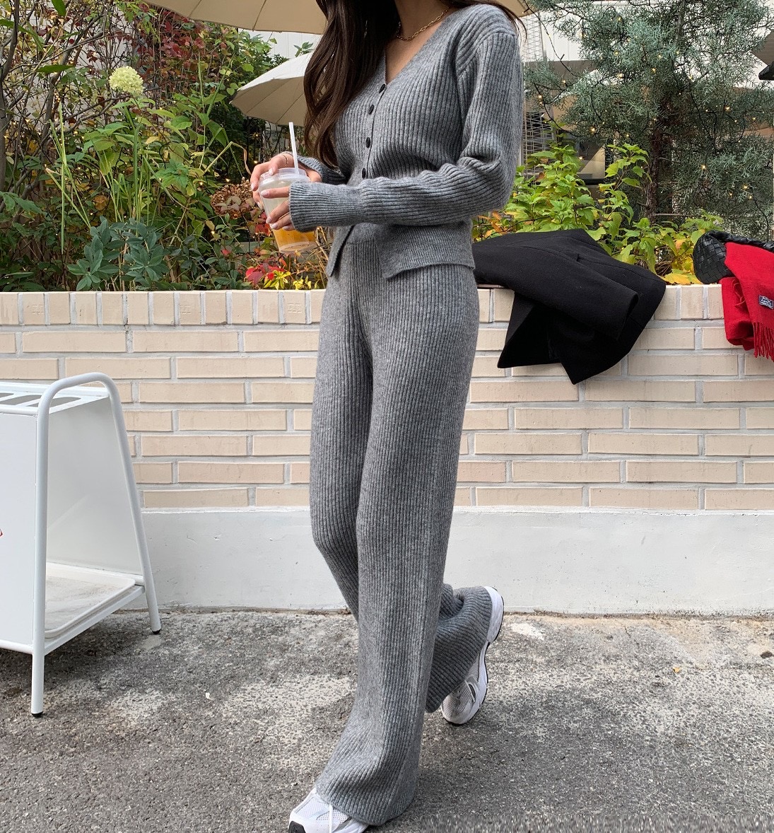 -2kg超顯瘦!V領坑紋針織衫+鬆緊長褲SET