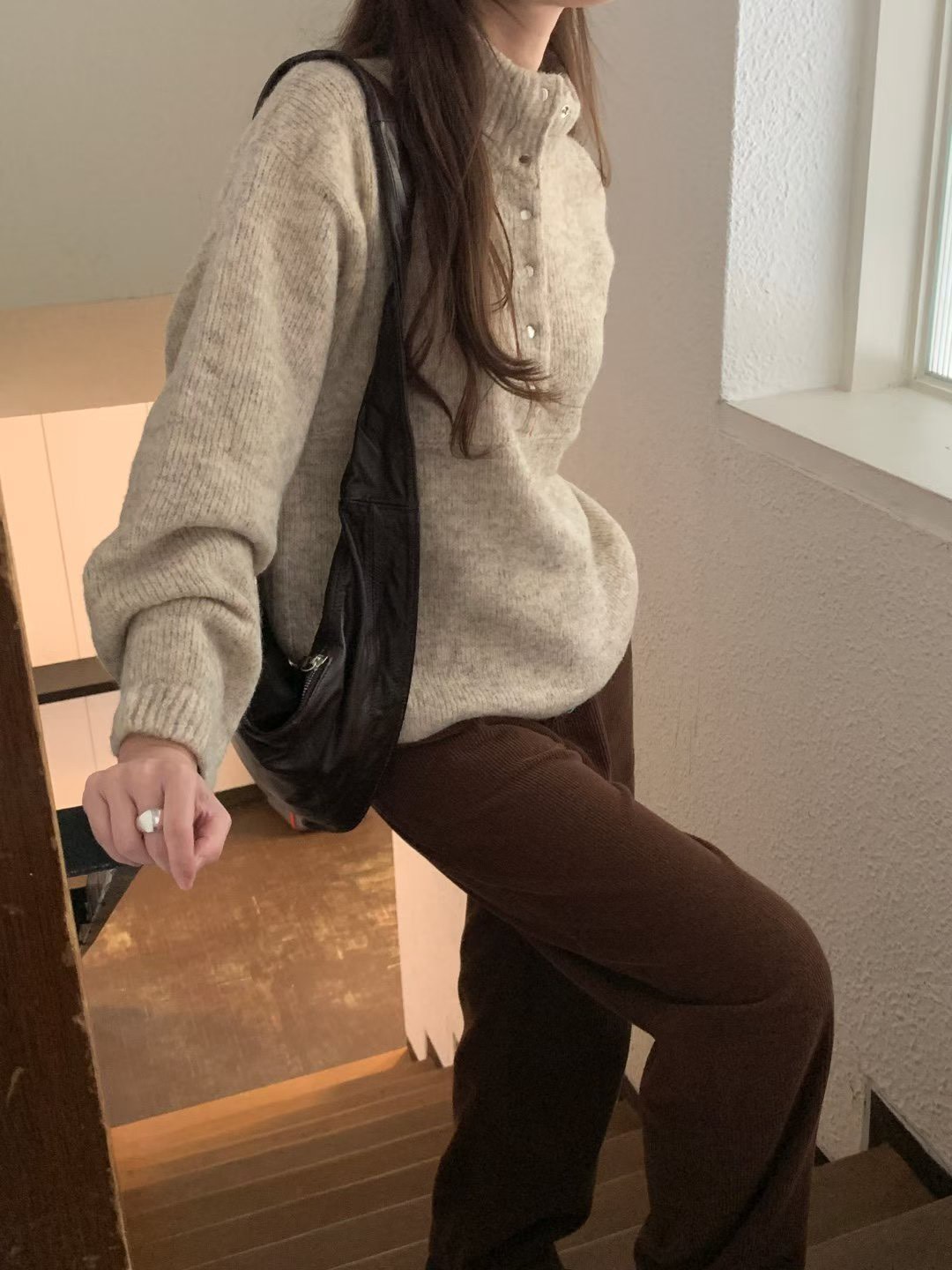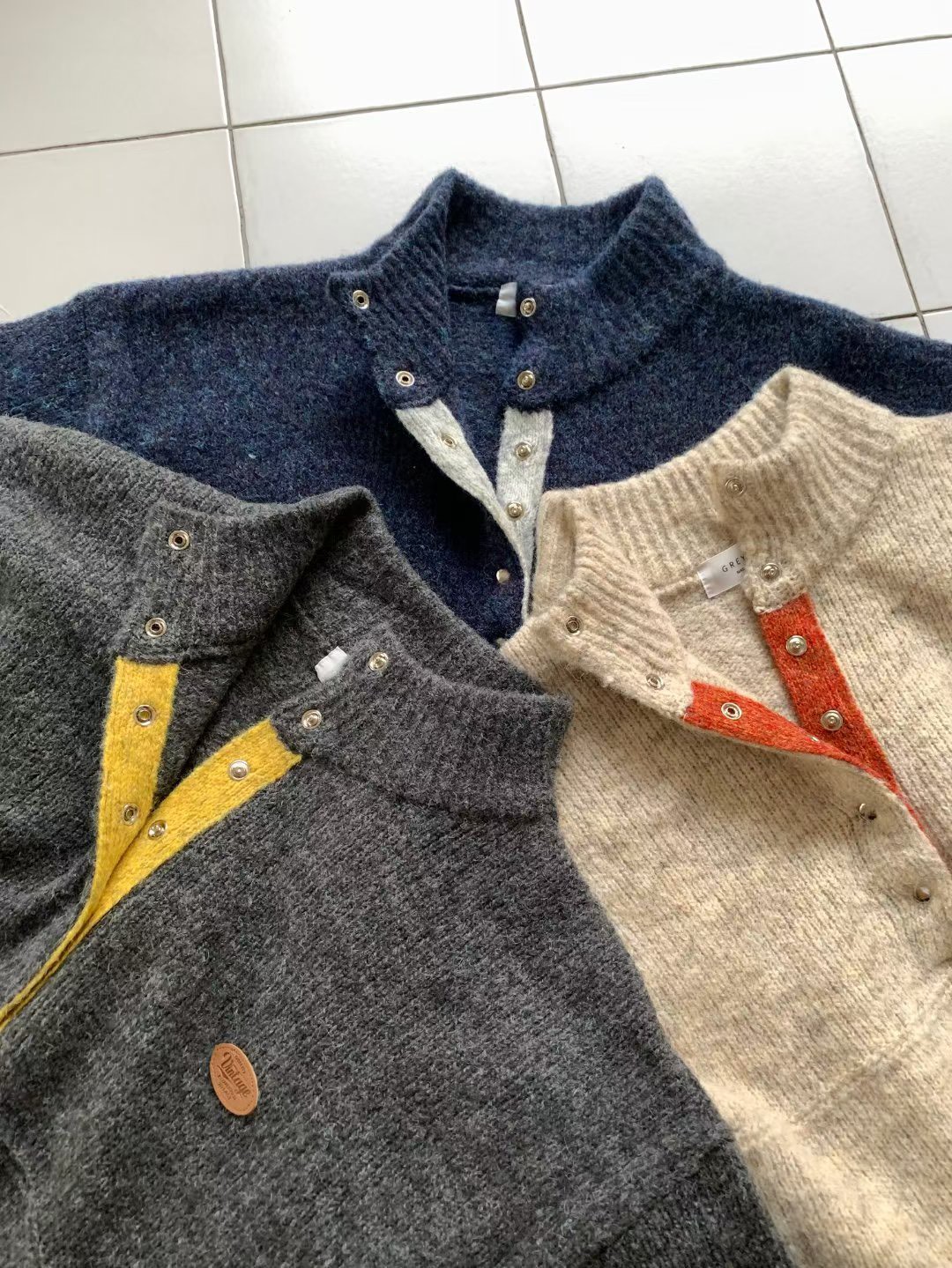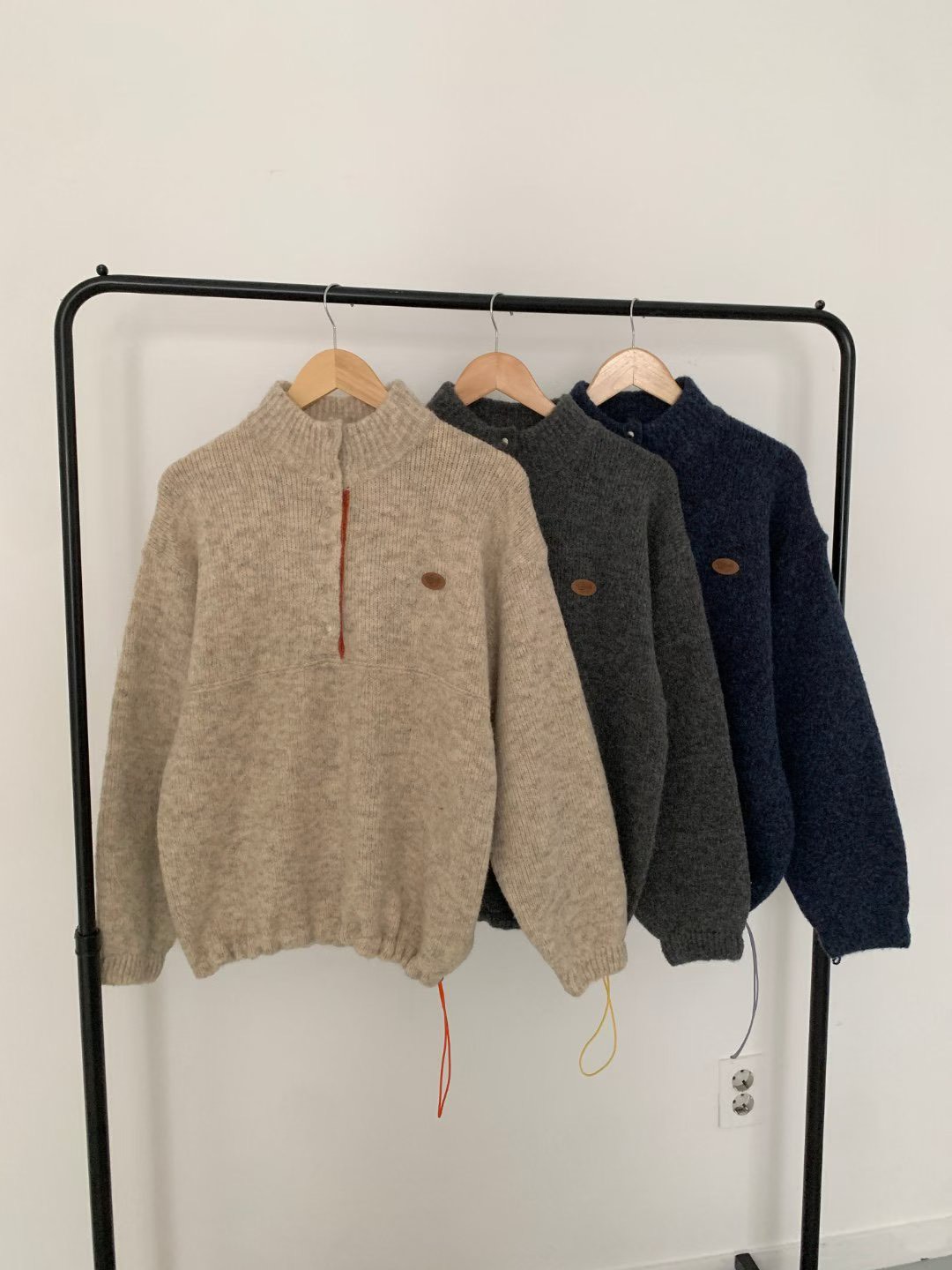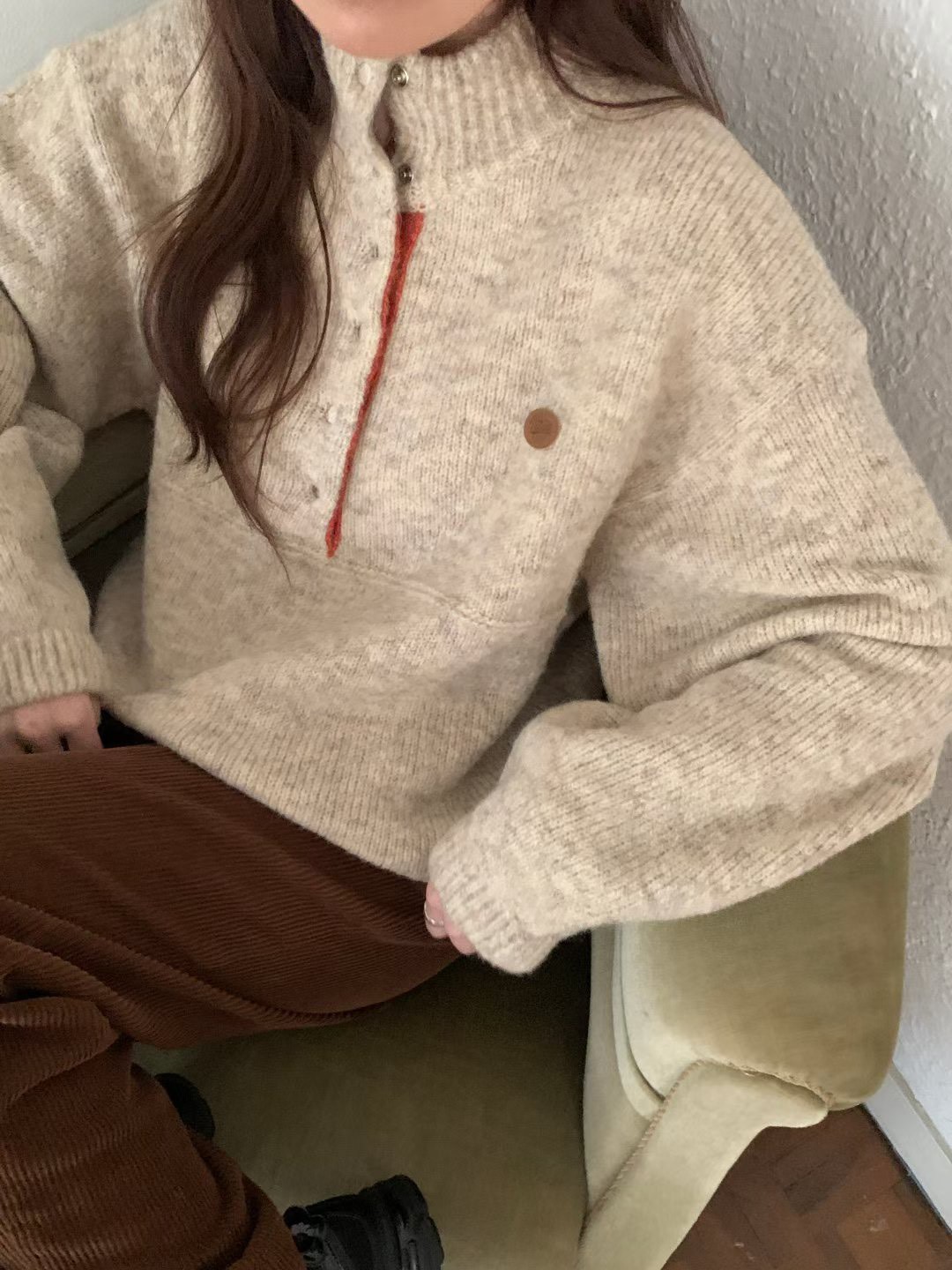 皮革logo撞色半釦領羊毛衣(60%)