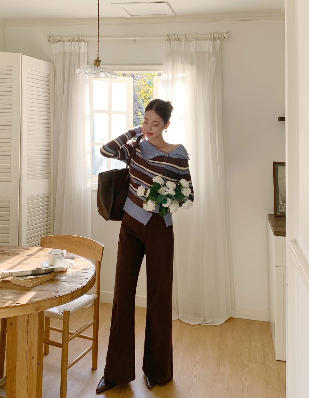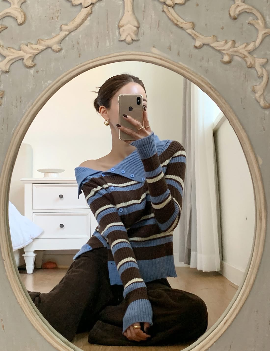 斜肩長版麻花針織衣+鬆緊落地長裙SET